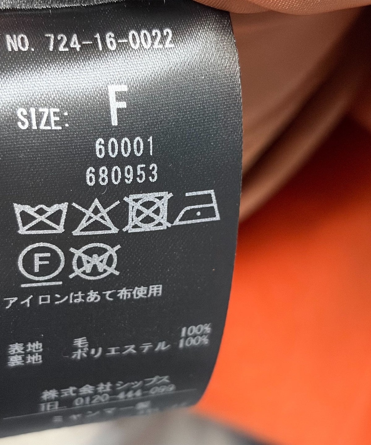素材:表地: 毛100%, 裏地: ポリエステル100%