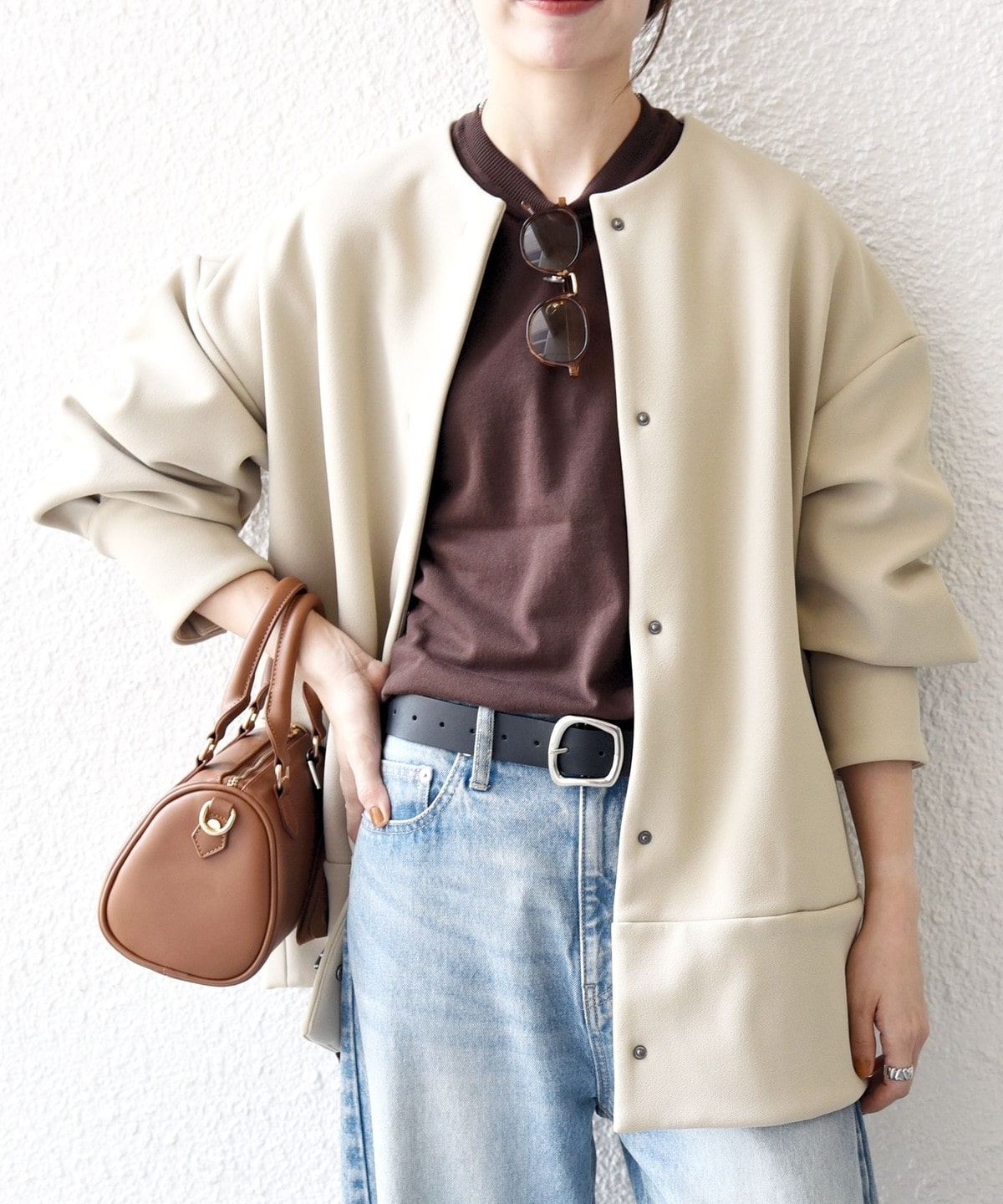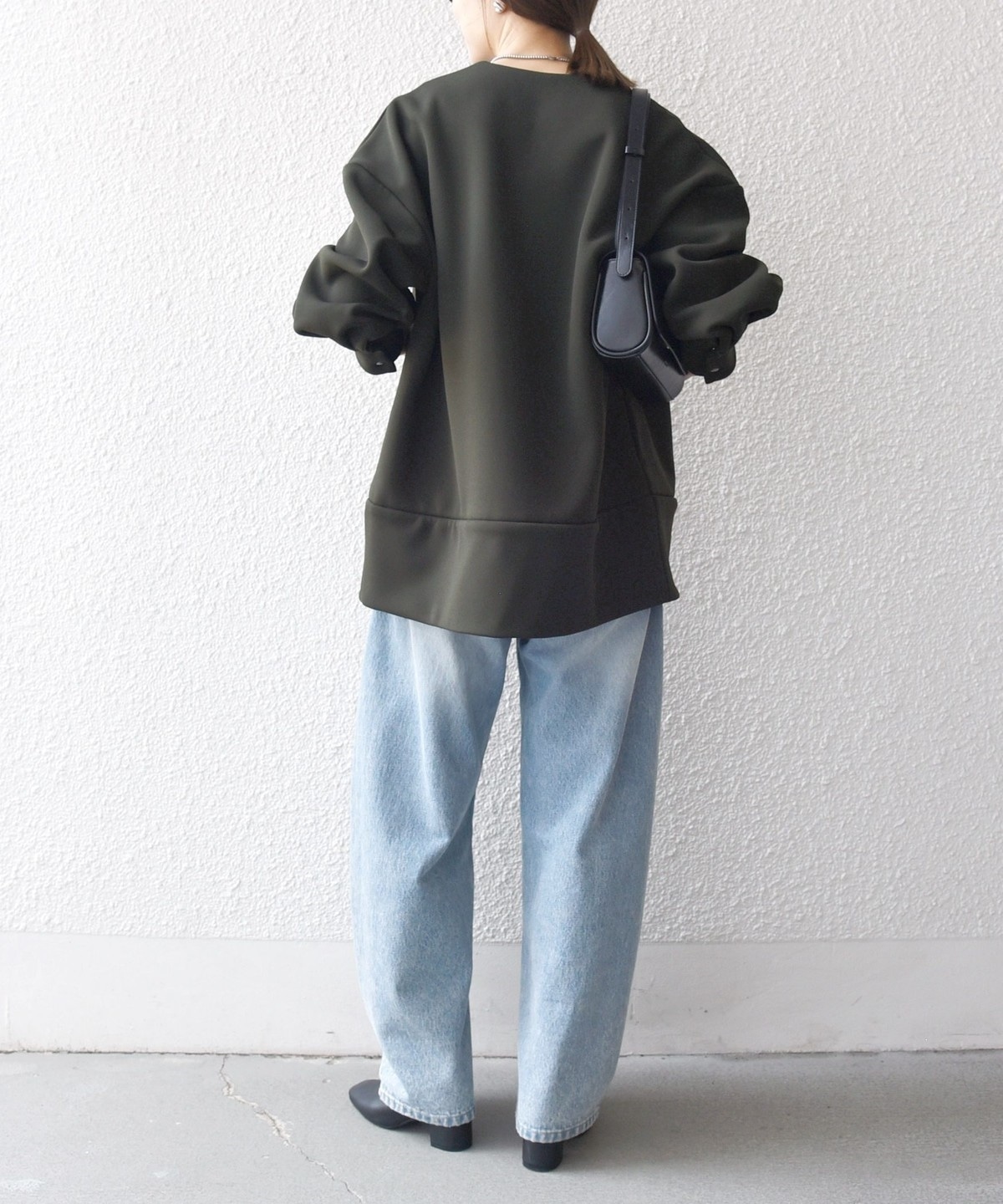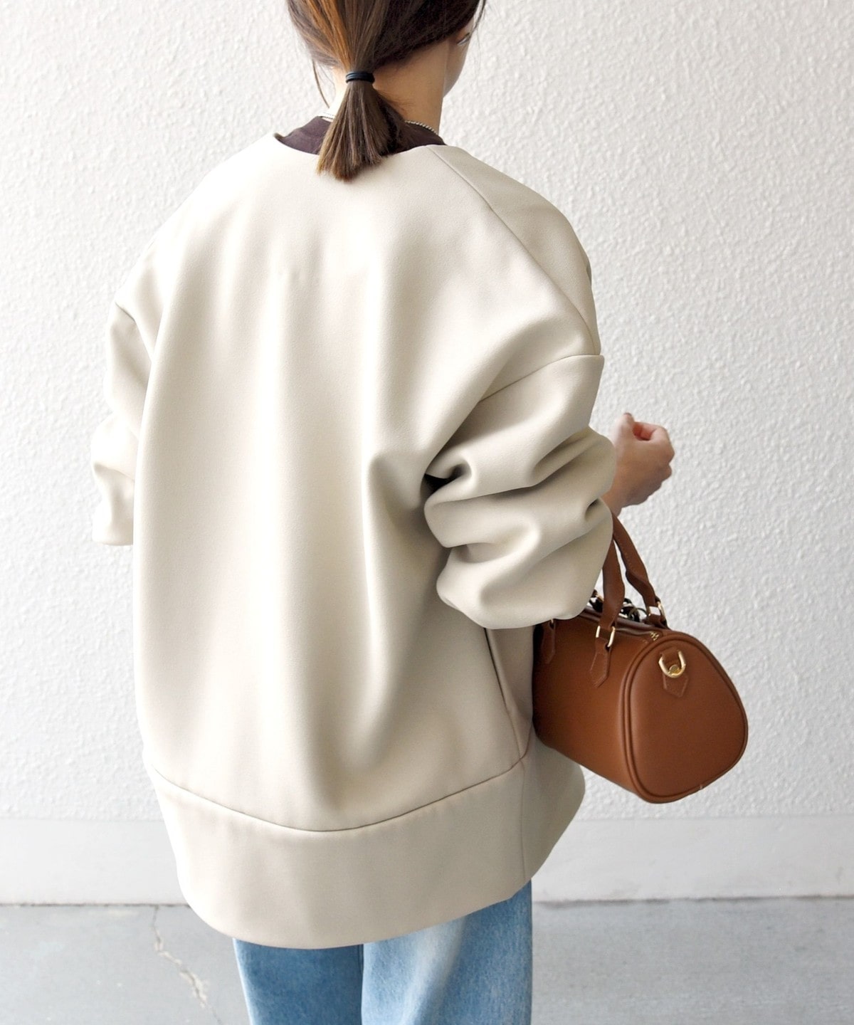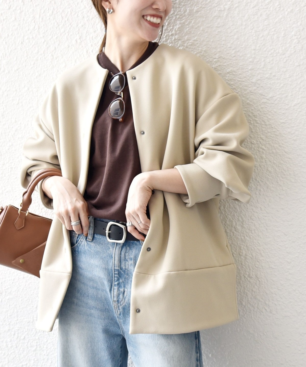 ゆったりとした程良いオーバーサイズなので、スウェットやニットの上にも羽織っていただけます。