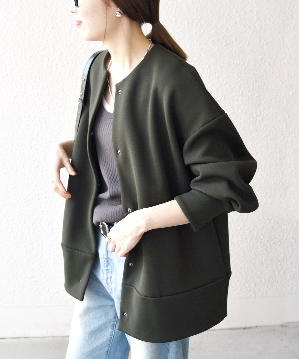 裾に入った切り替えで丸みのあるシルエットが際立ち、さっと羽織るだけで様になります。