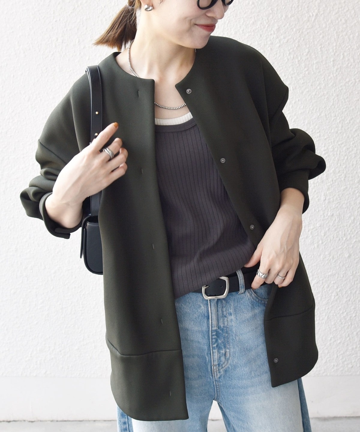 デニムやチノパンと合わせた大人カジュアルなスタイルにはもちろん、キレイ目なオフィスカジュアルの羽織としても◎