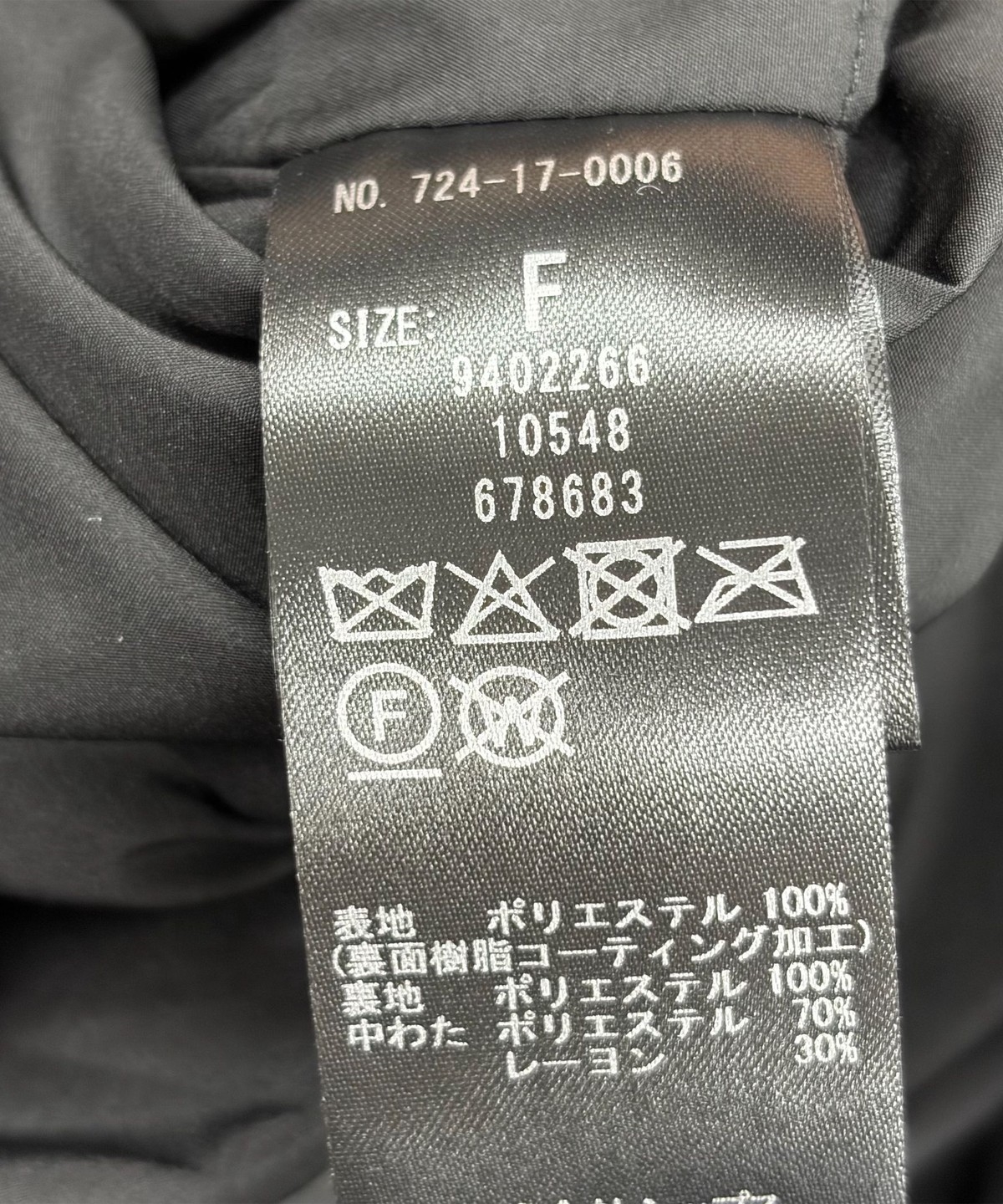 素材:表地: ポリエステル100%(裏面樹脂コーティング加工), 裏地: ポリエステル100%, 中わた: ポリエステル70%, レーヨン30%