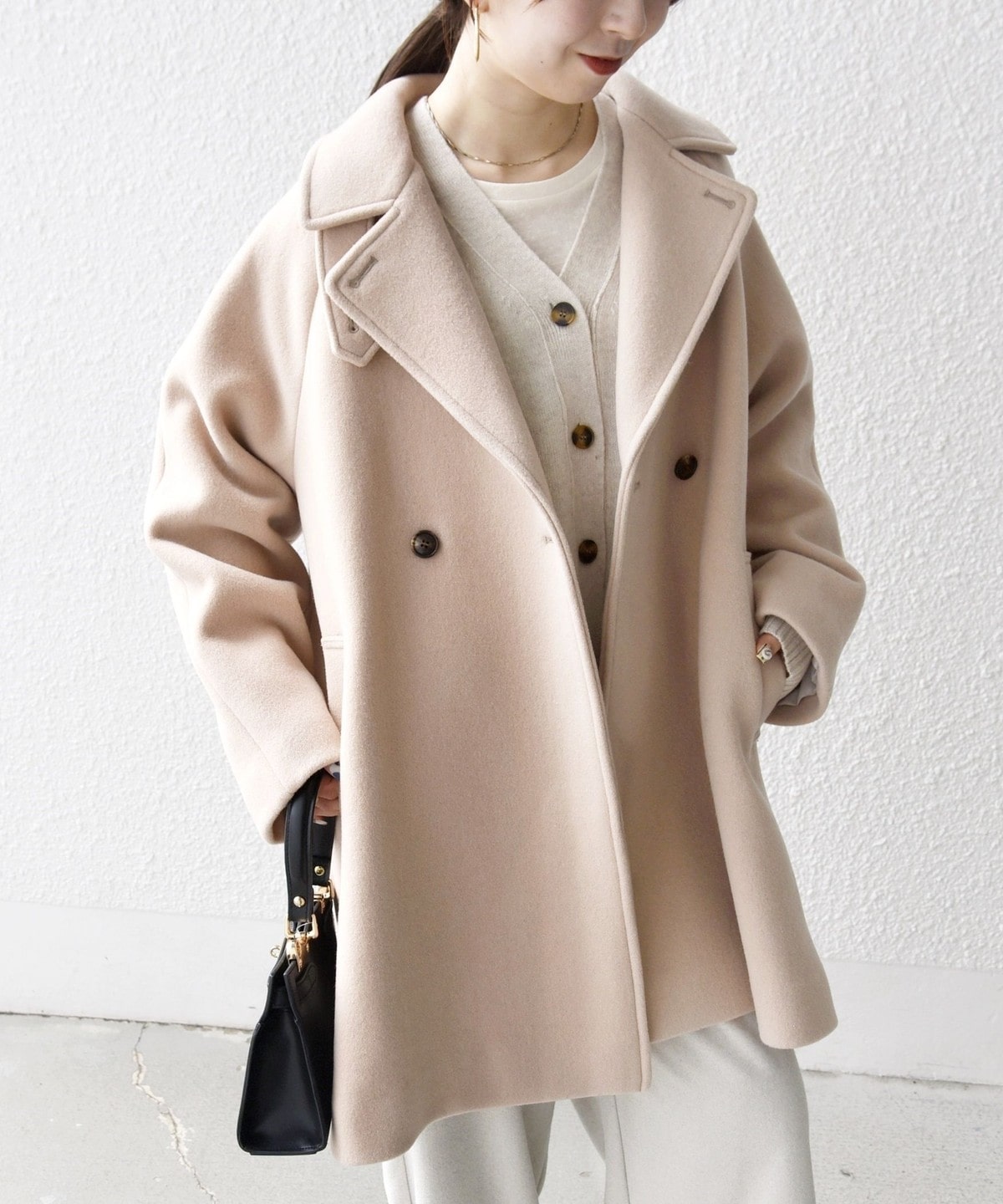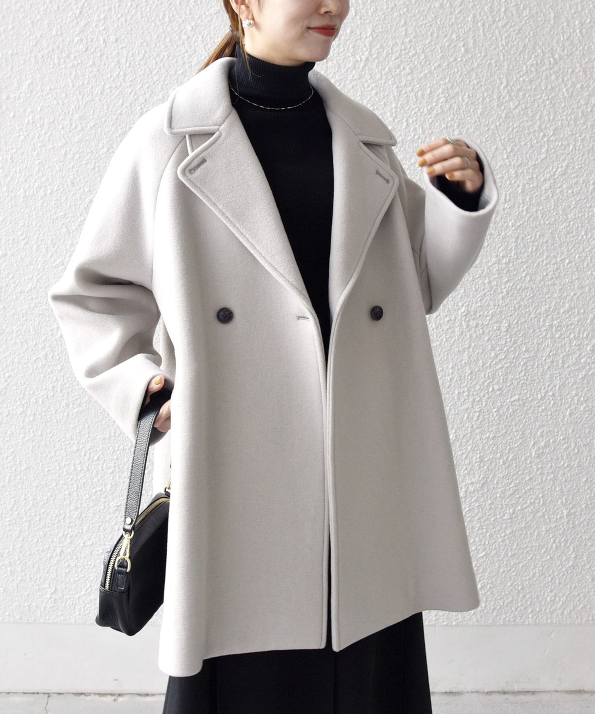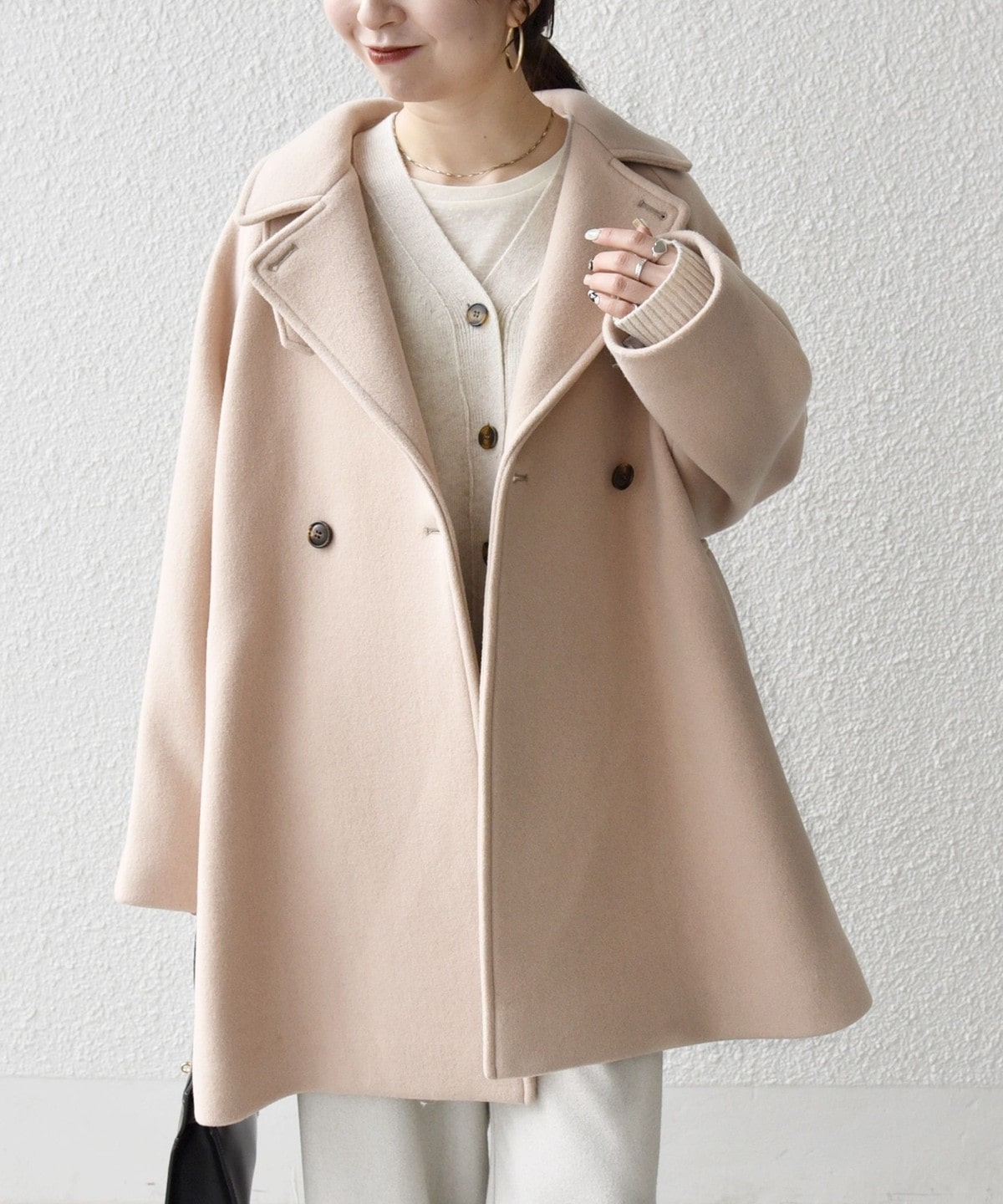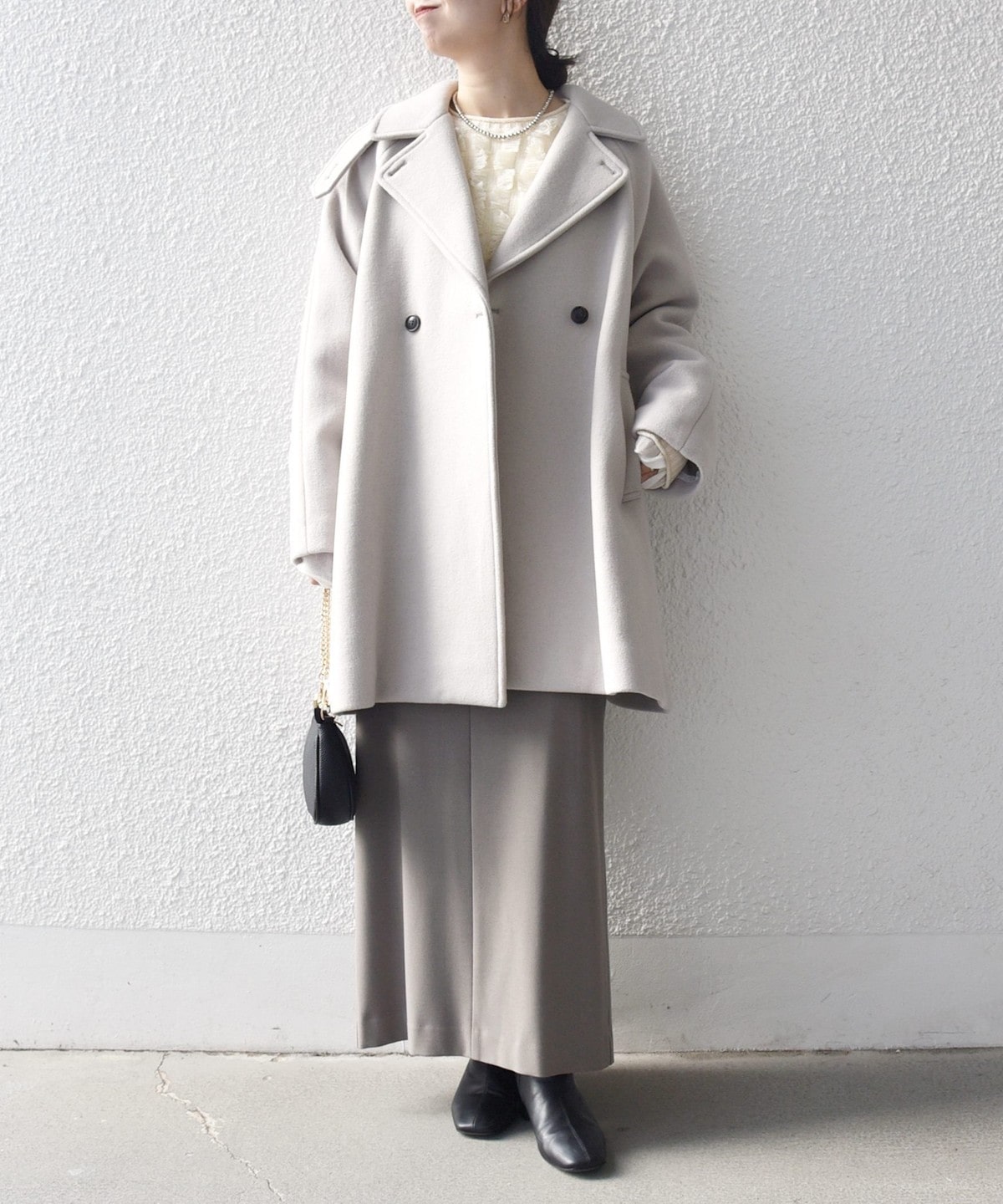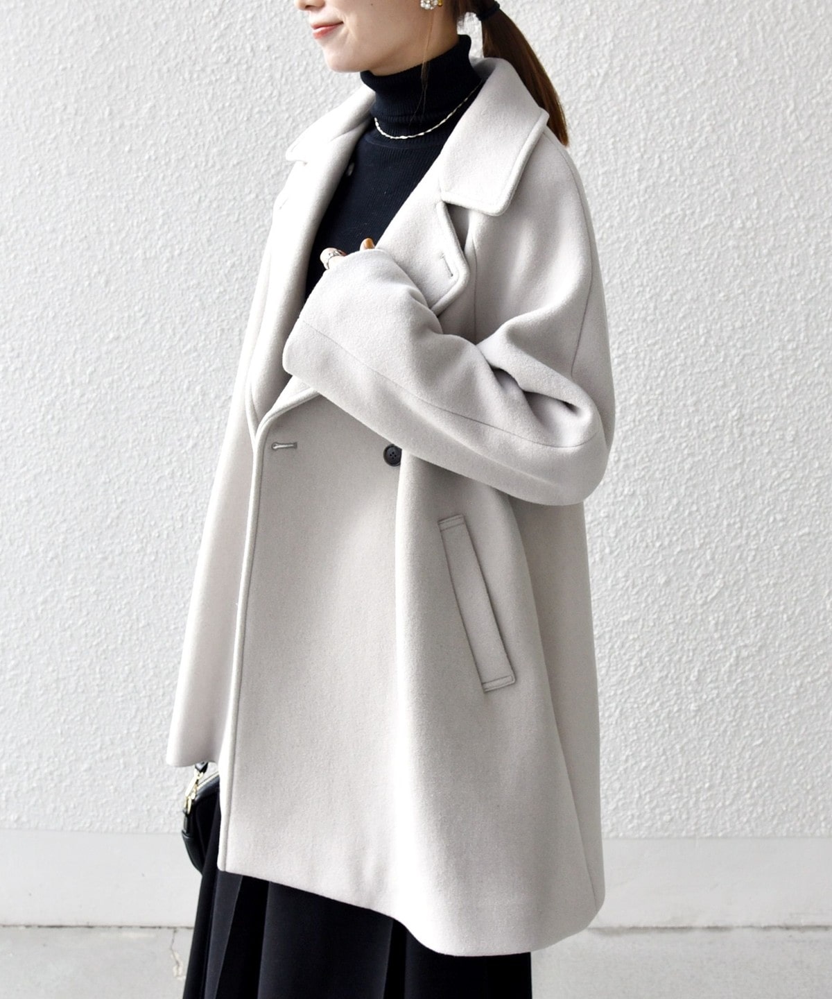 ゆったりとしたシルエットが魅力のハーフ丈コート。