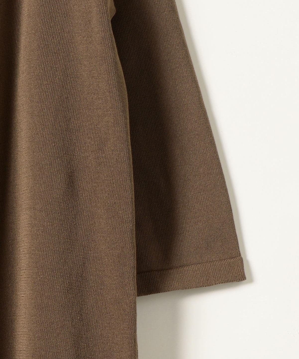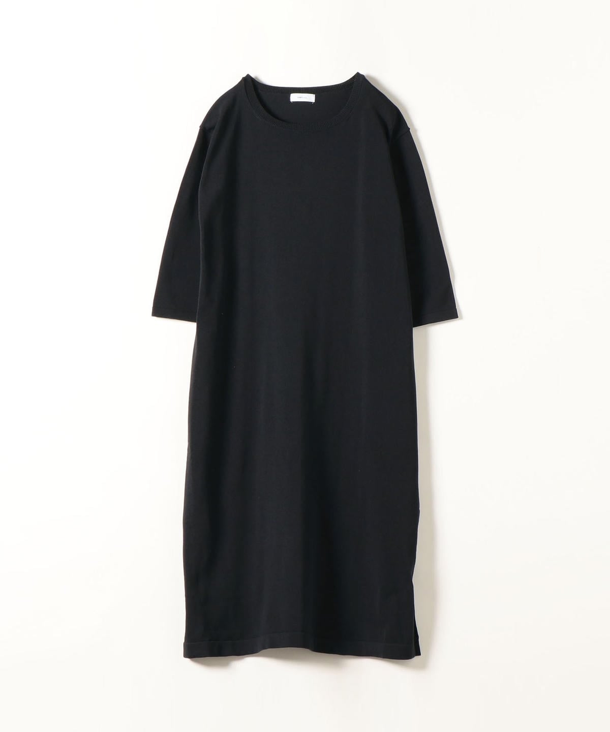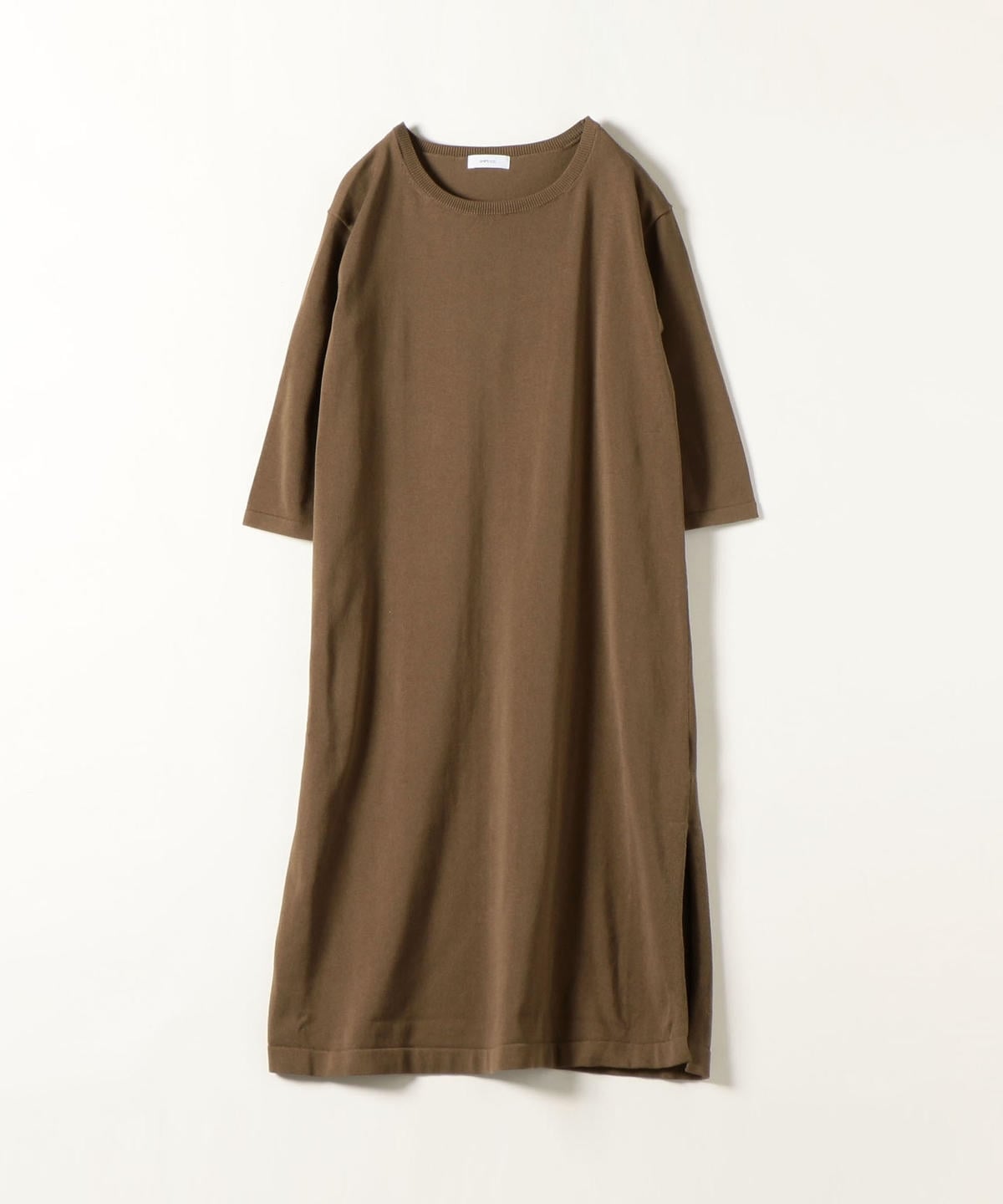 ストレッチが効いたコットンの強撚糸を使用したドライなニットシリーズ。ふくらはぎ下丈のAラインシルエットのニットワンピースです。1枚でももちろん、パンツとの重ね着もお勧めです。1枚で着たときにスリットから覗く脚のラインがきれいに見えるシルエットにしています。