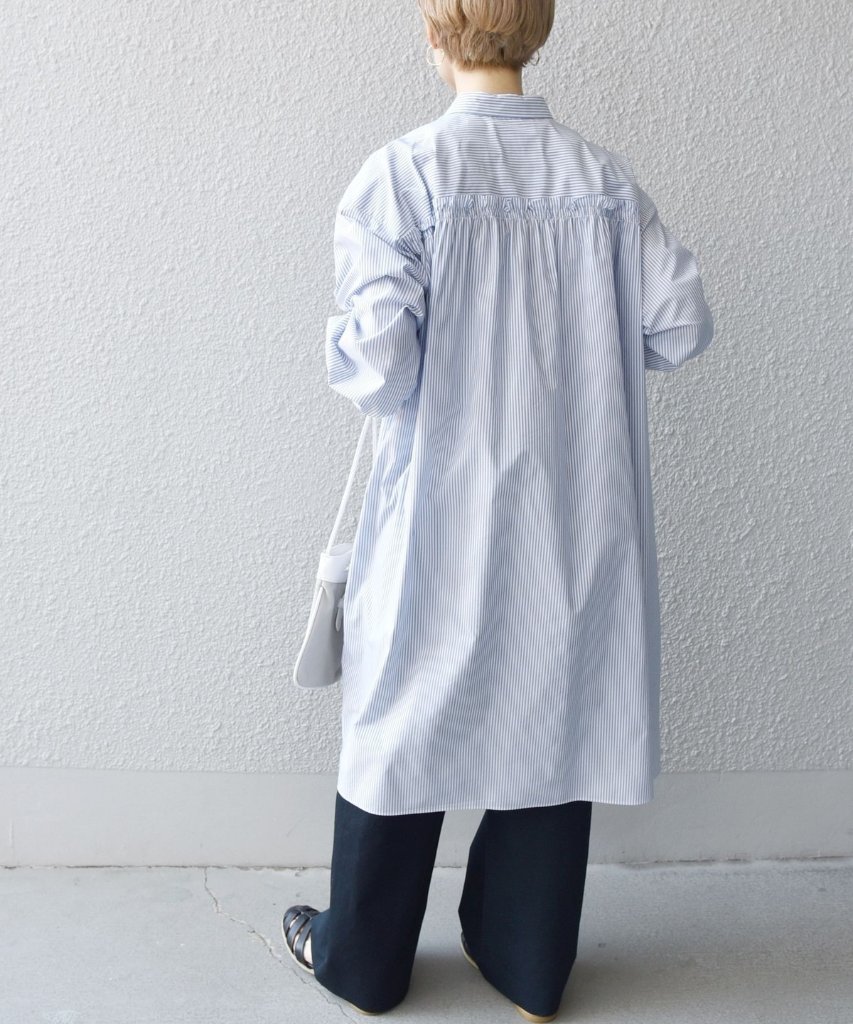 ◆後ろ姿も抜かりないチュニック丈のシャツワンピース。