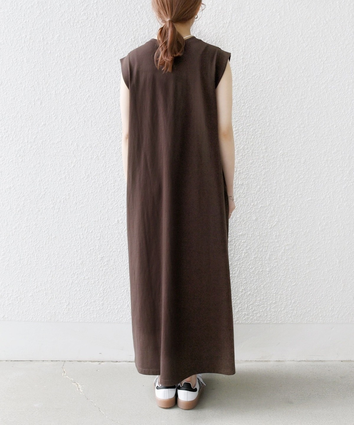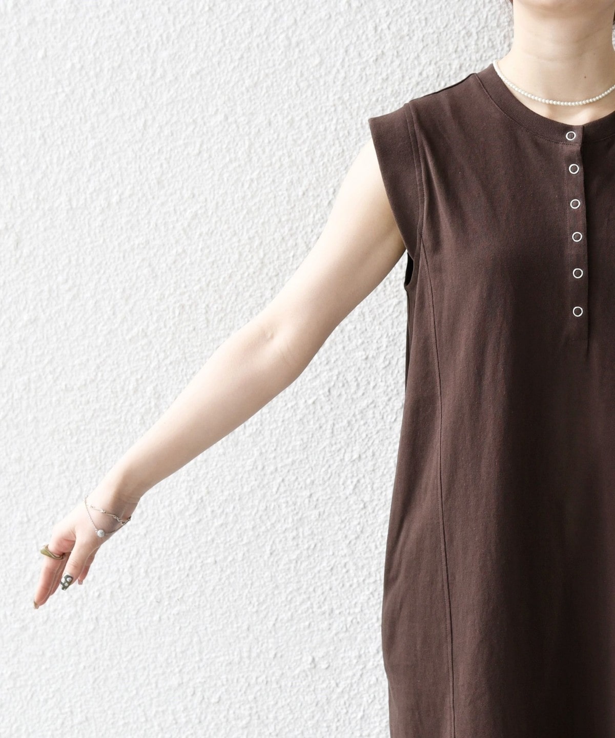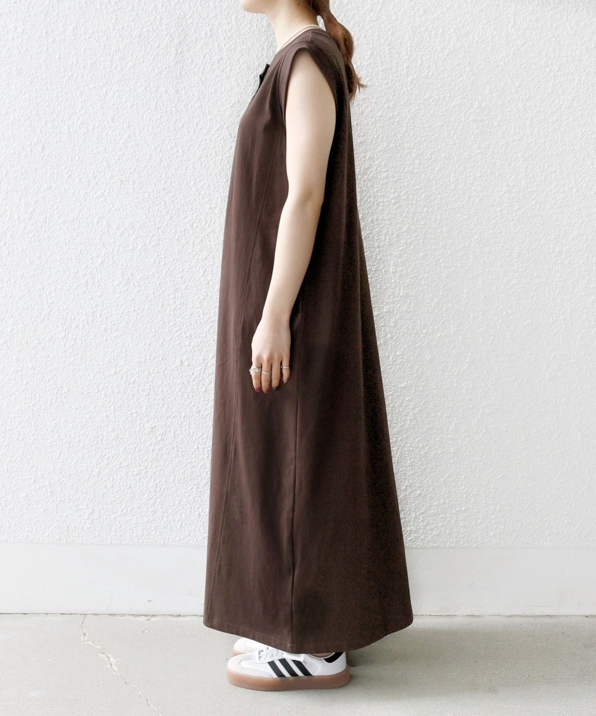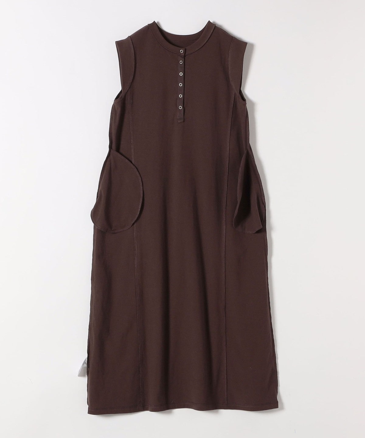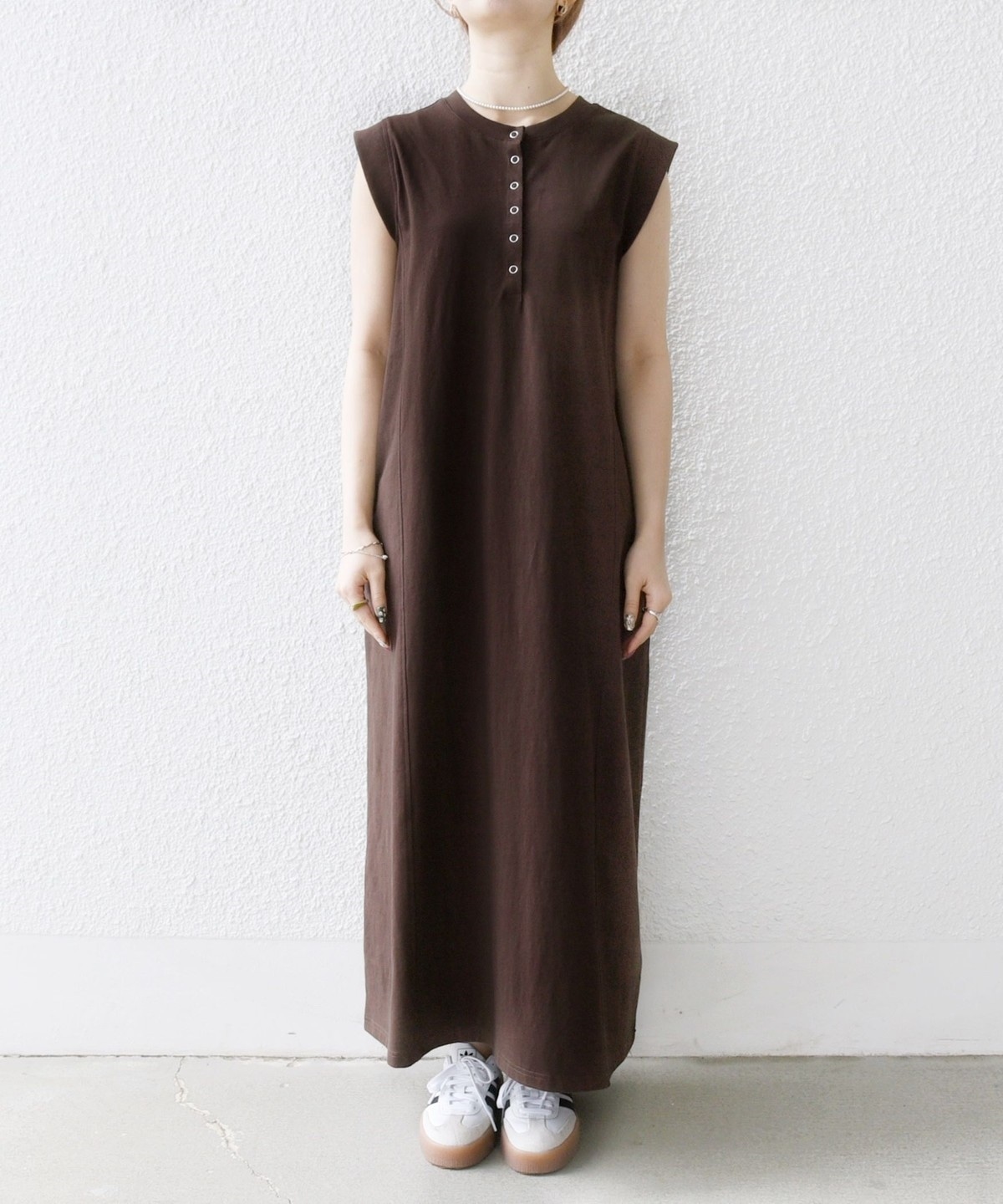 1. SHIPS any:〈洗濯機可能〉USAコットン ヘンリーネック Aライン ワンピース ブラウン