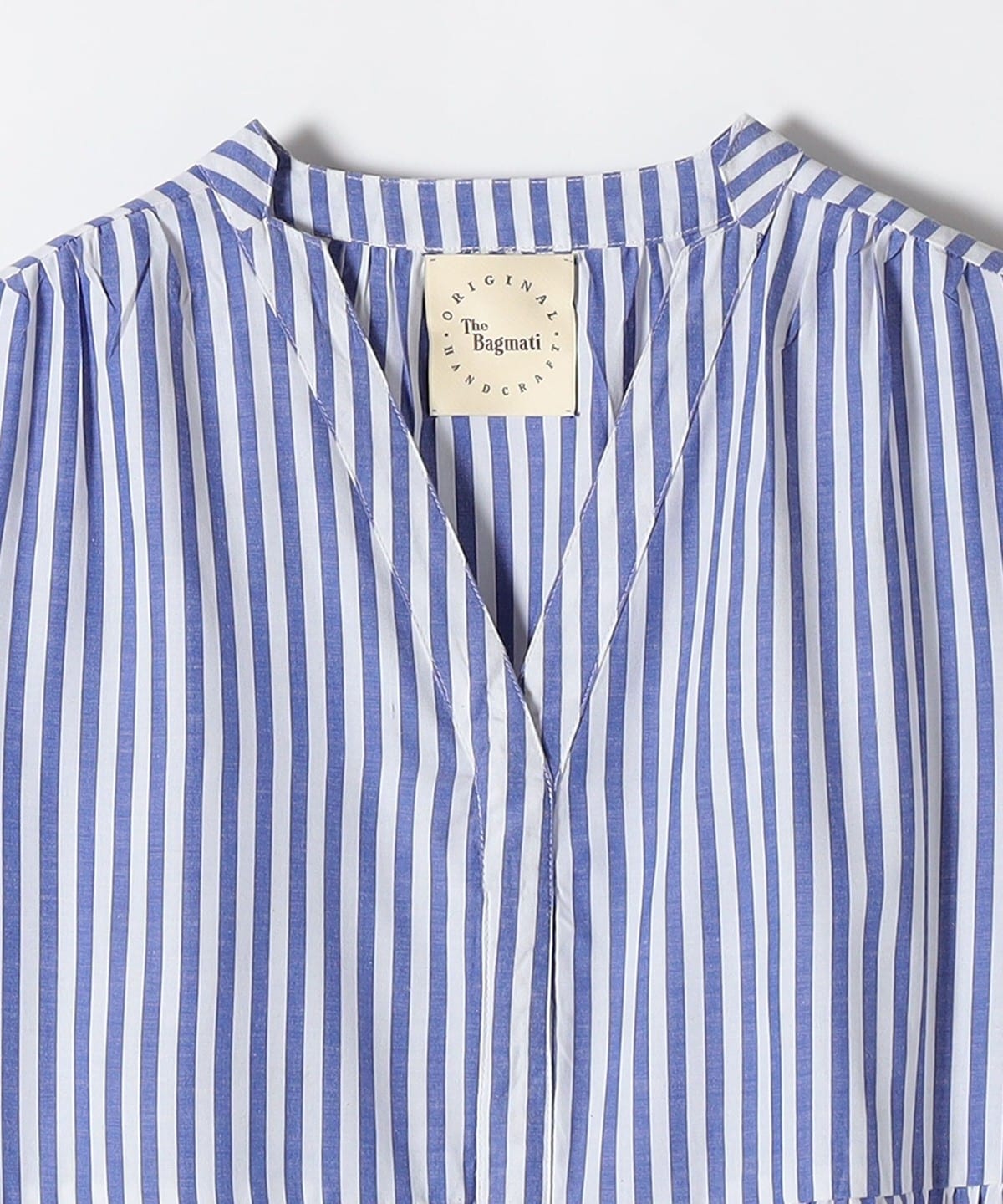 1. The Bagmati:〈手洗い可能〉ギャザー ストライプ ワンピース ブルー