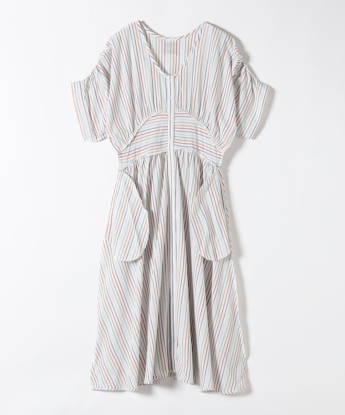 6. The Bagmati:〈手洗い可能〉ウエスト ギャザー マルチ ストライプ ワンピース