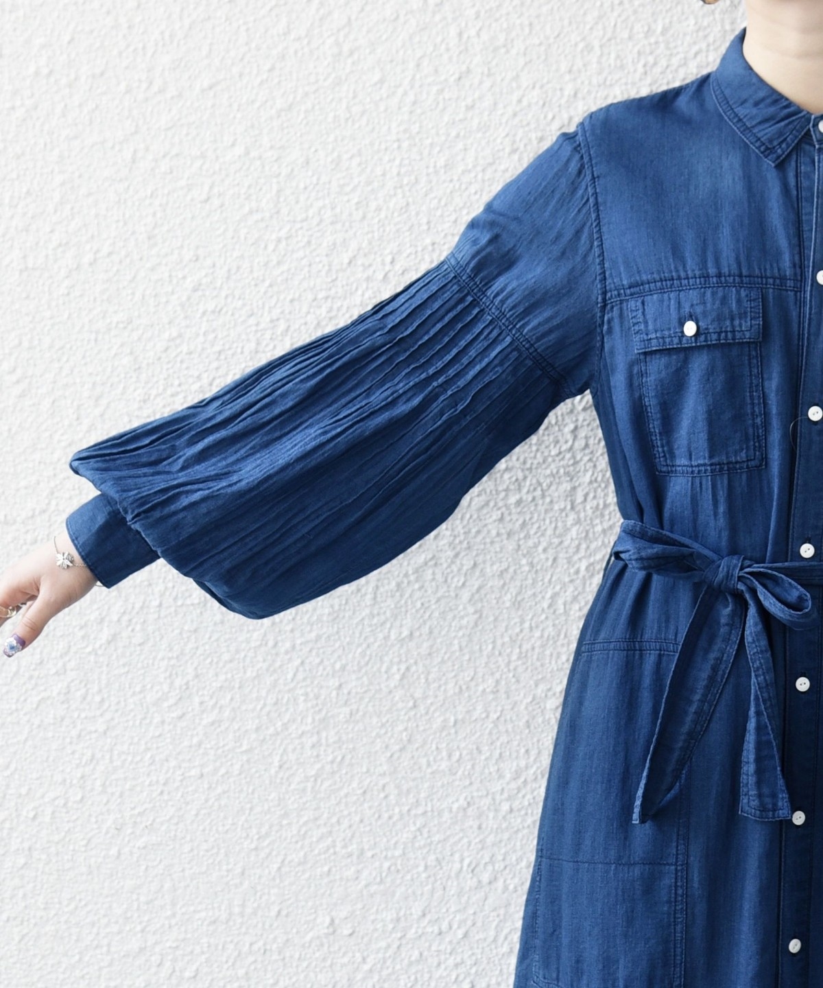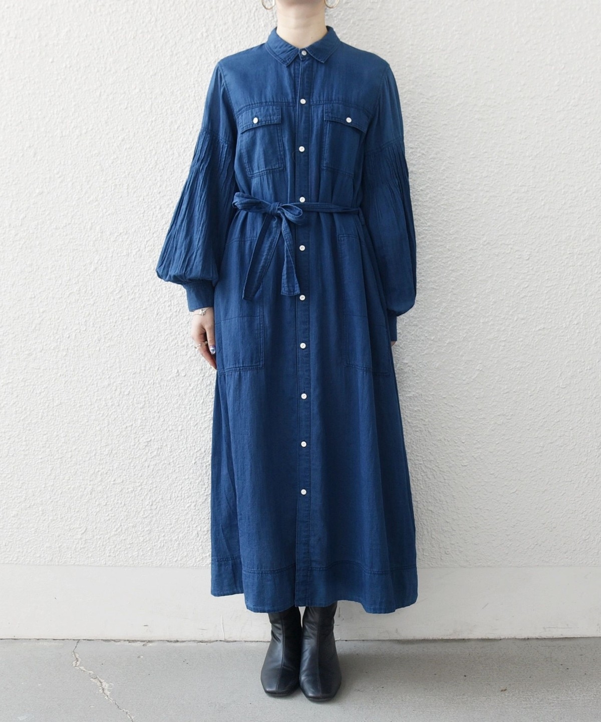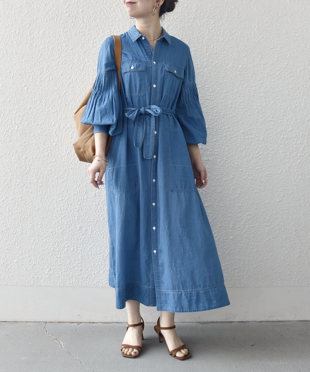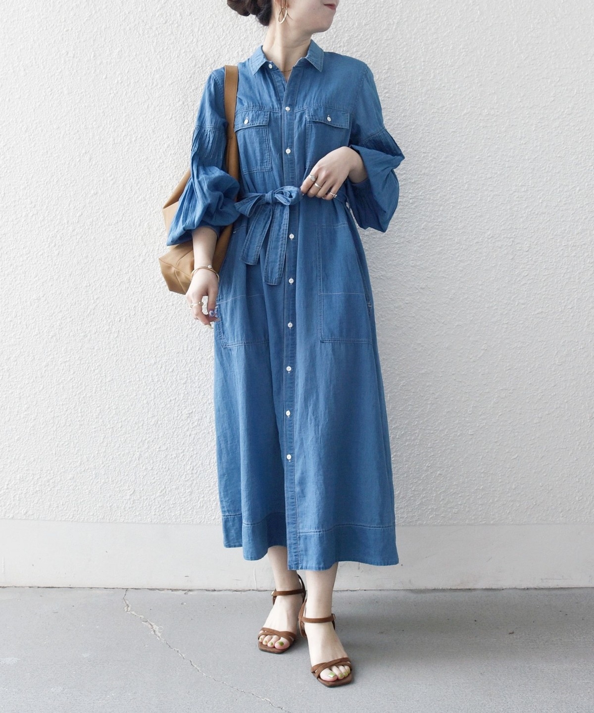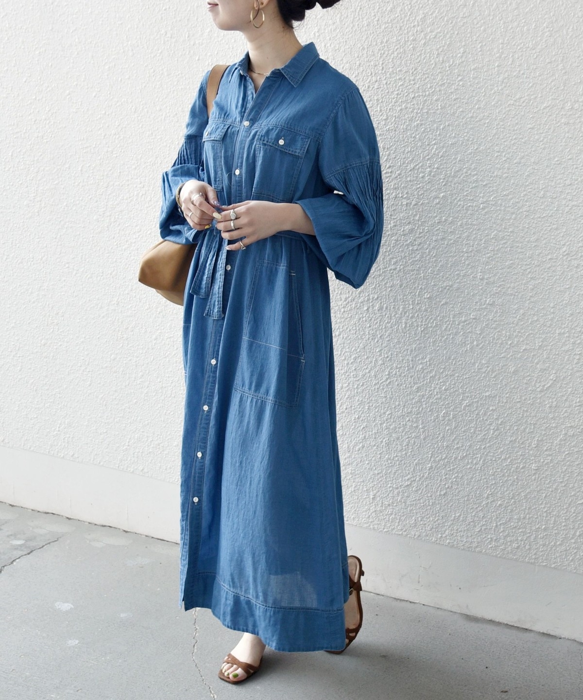 シアー感のあるデニムが軽やかに揺れる、ロングシャツワンピース。