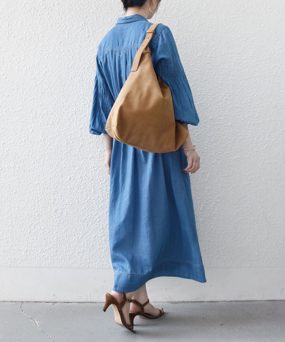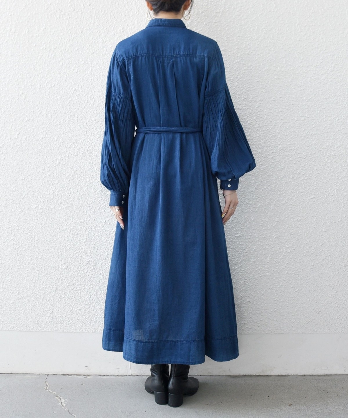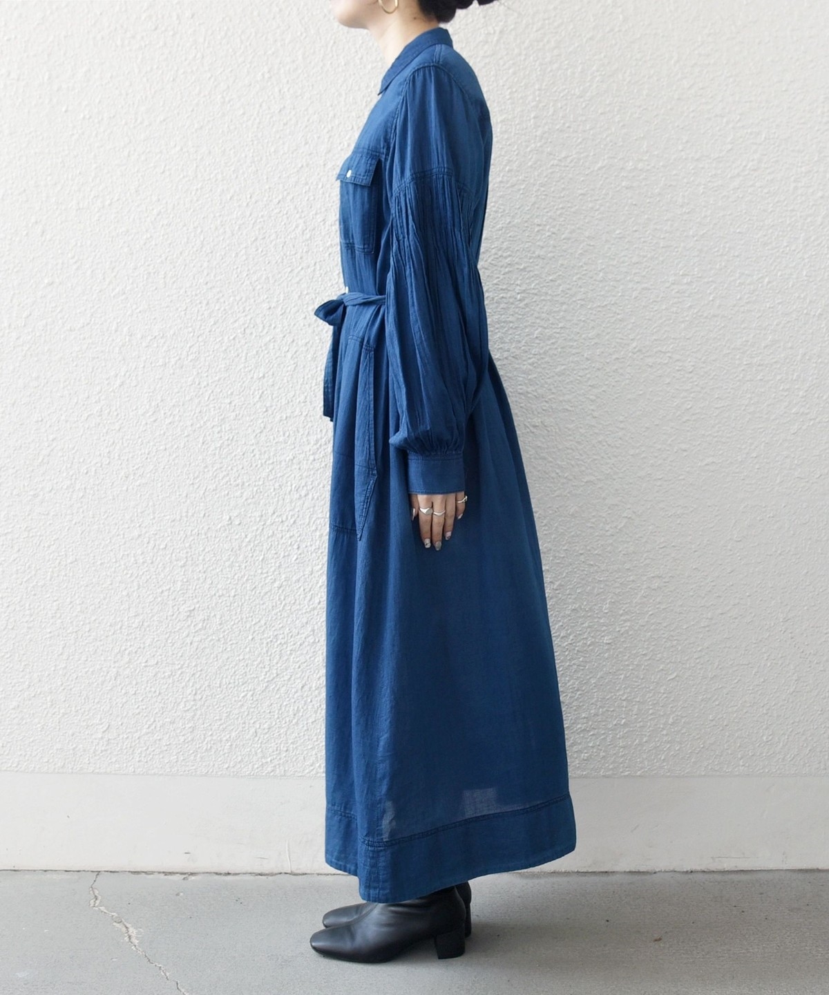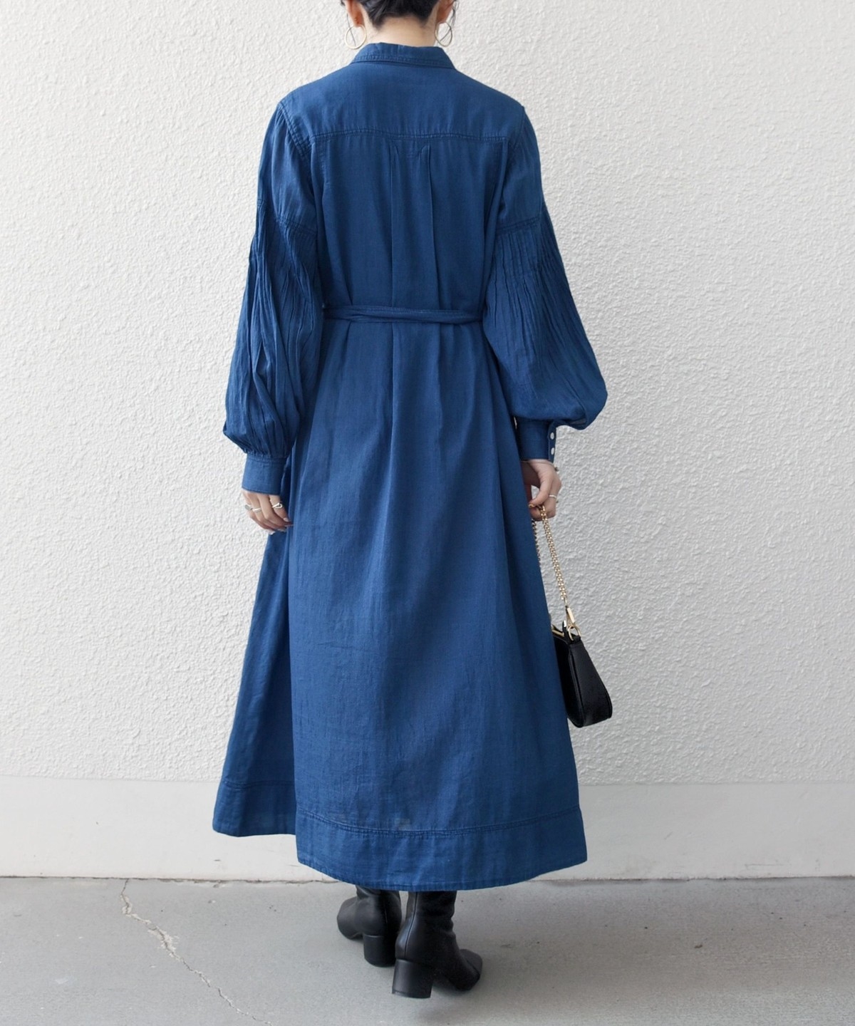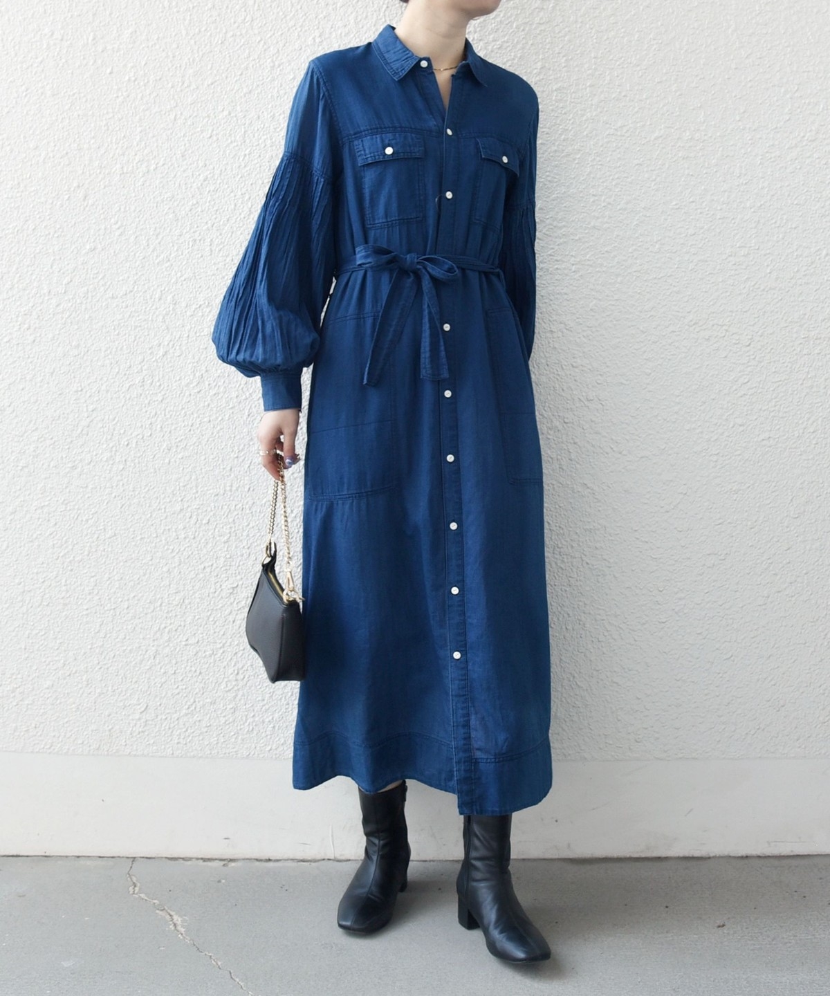 シアー感のあるデニムが軽やかに揺れる、ロングシャツワンピース。