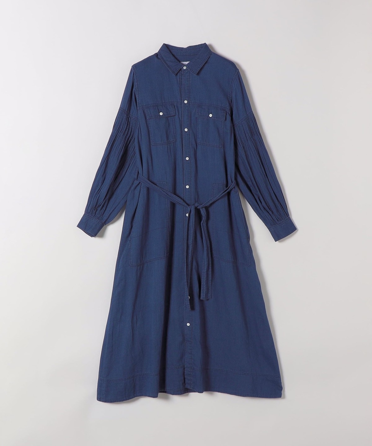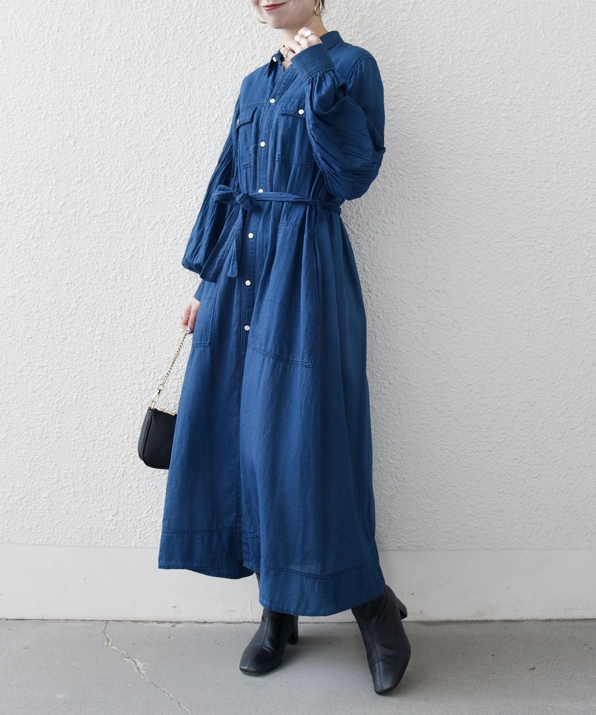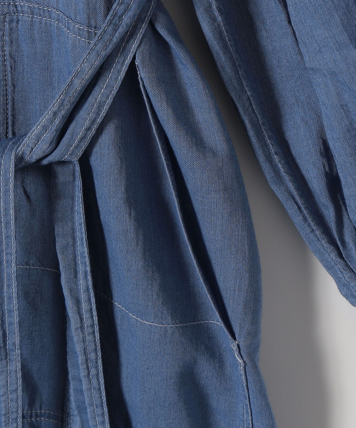 34. 《予約》SHIPS any:〈手洗い可能〉シアー デニム ポケット ロング シャツ ワンピース