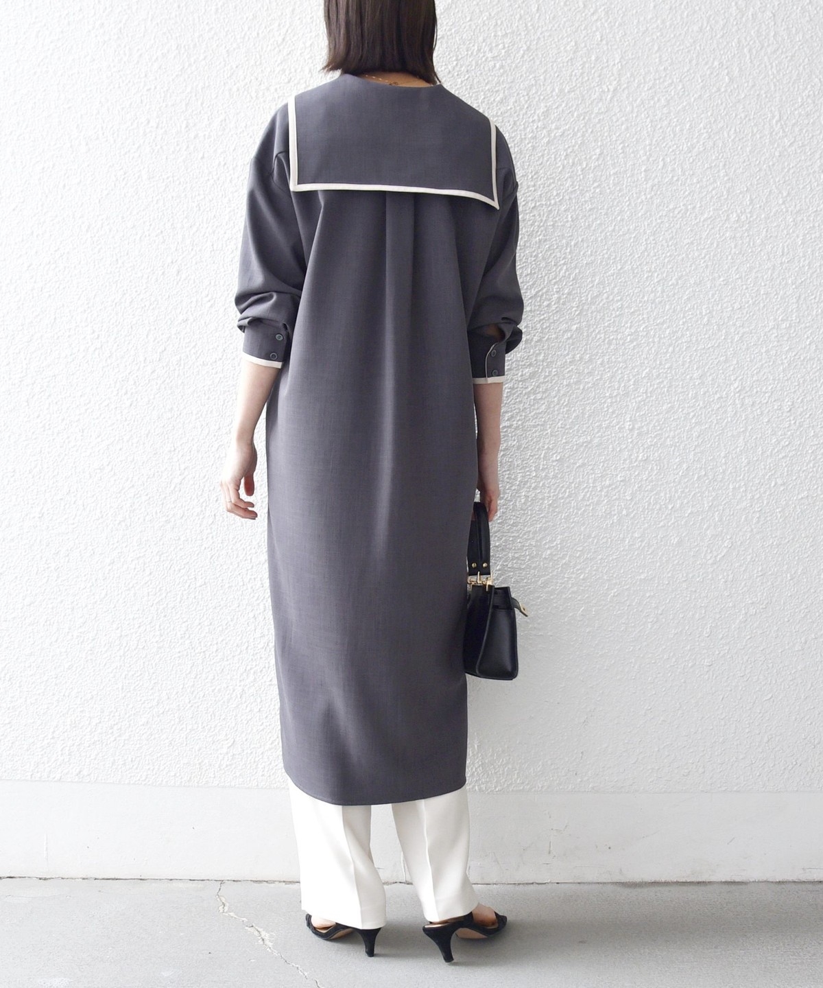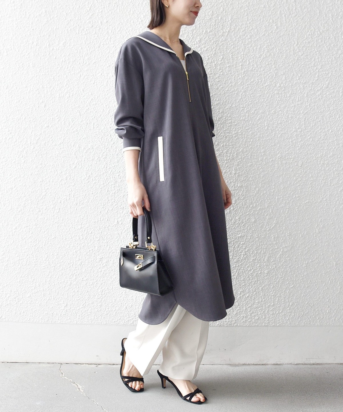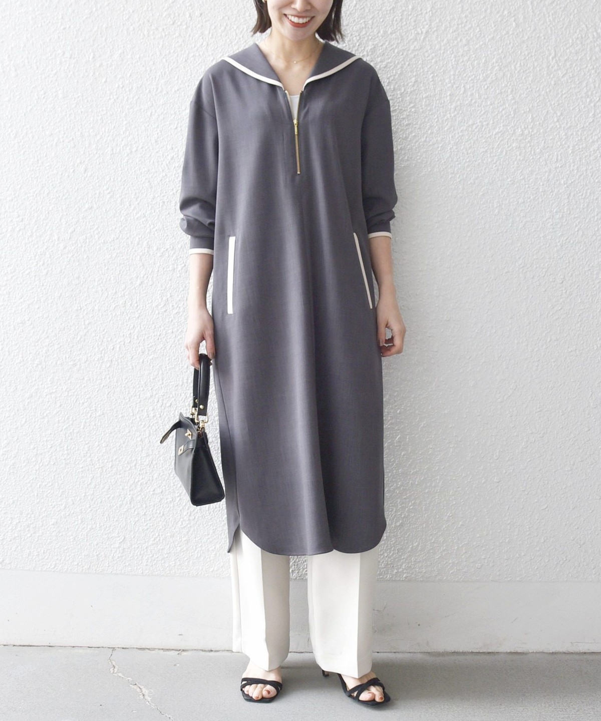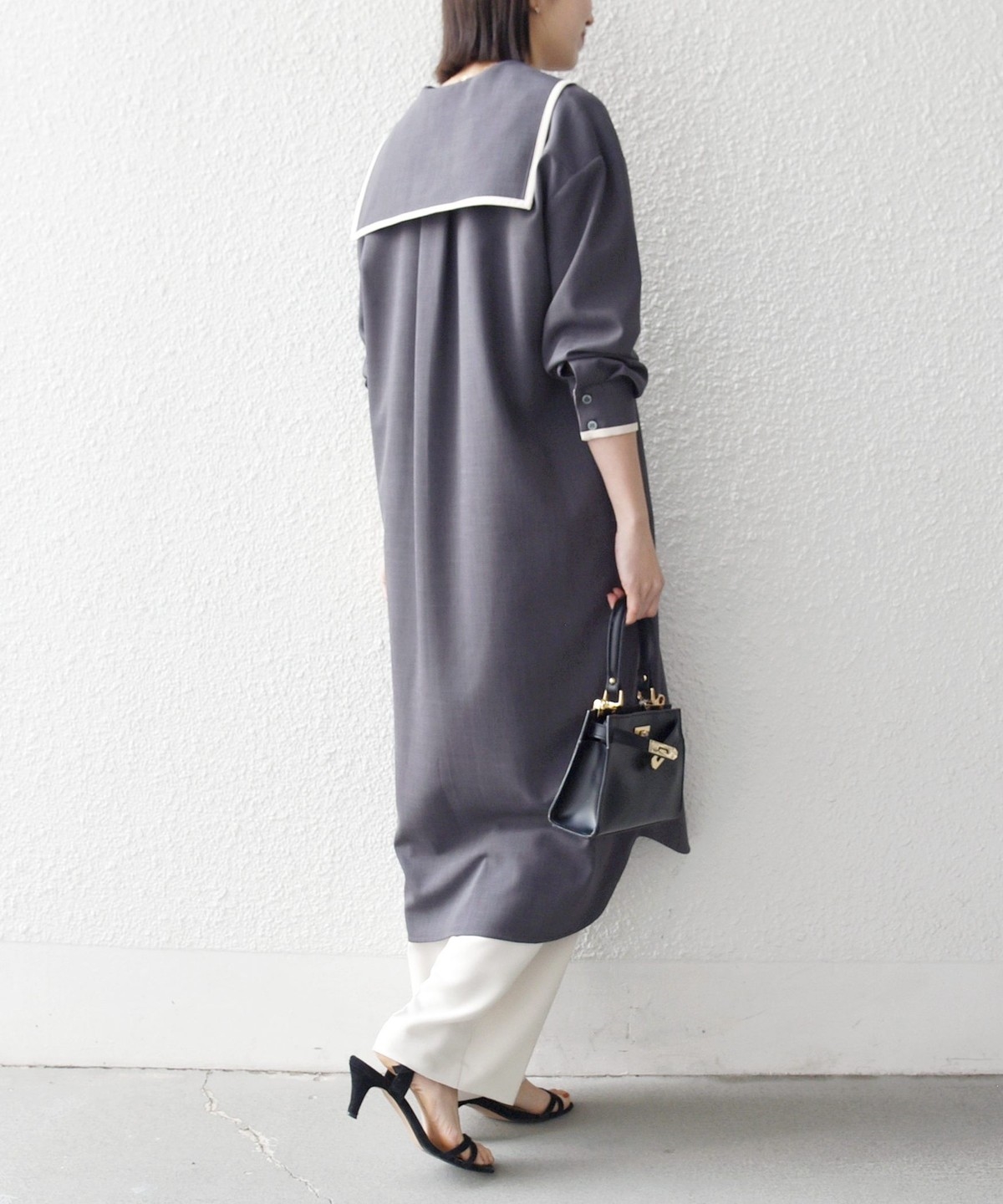 フレンチムード漂う、ミドル丈のセーラーカラーワンピース。