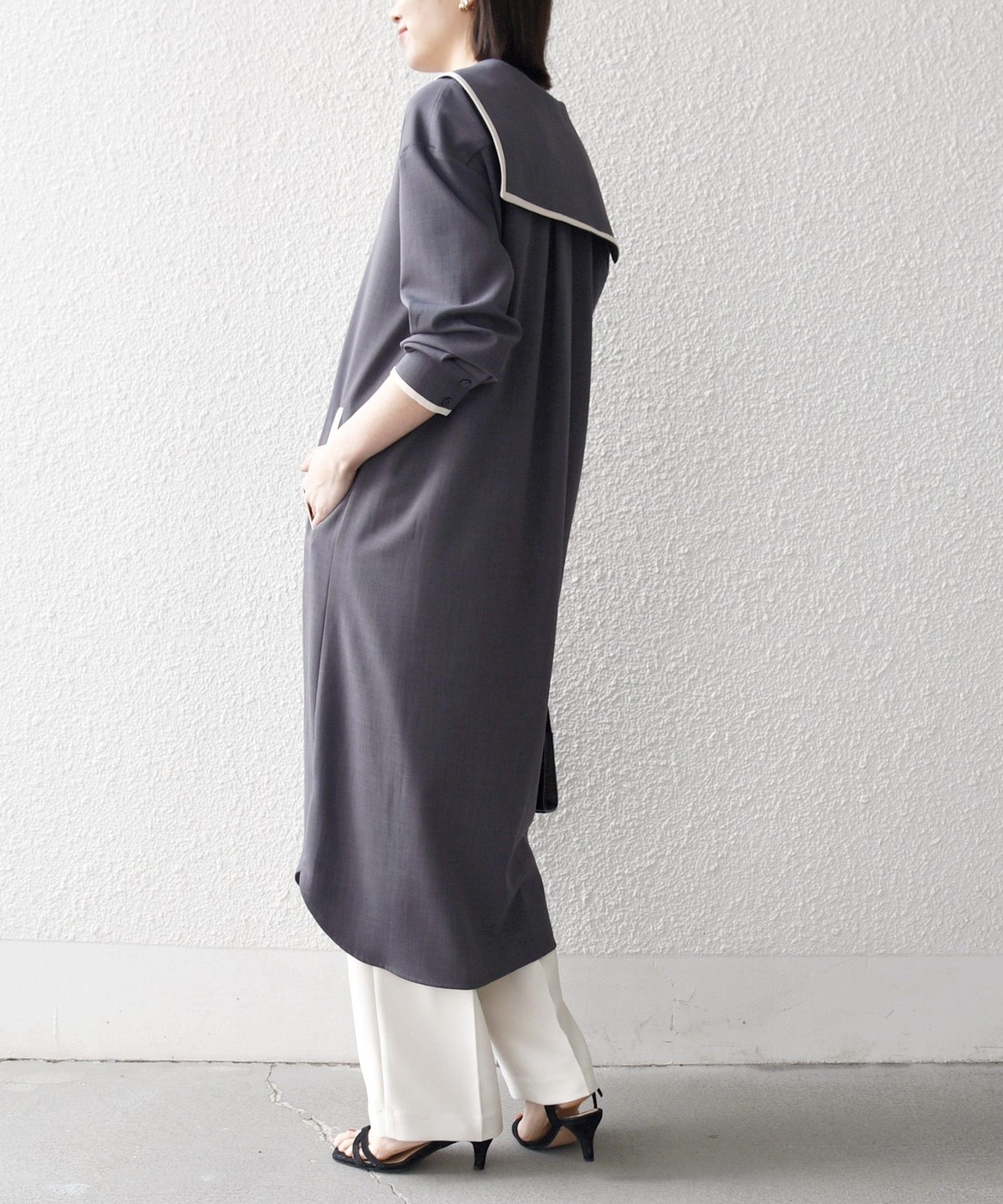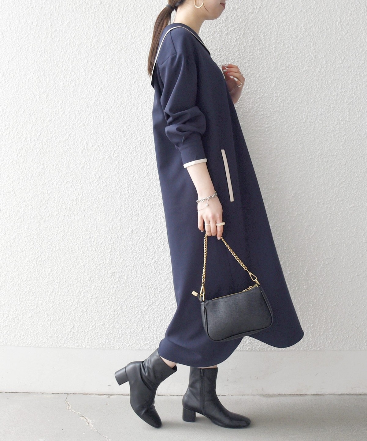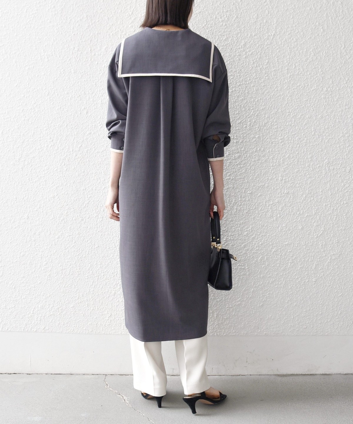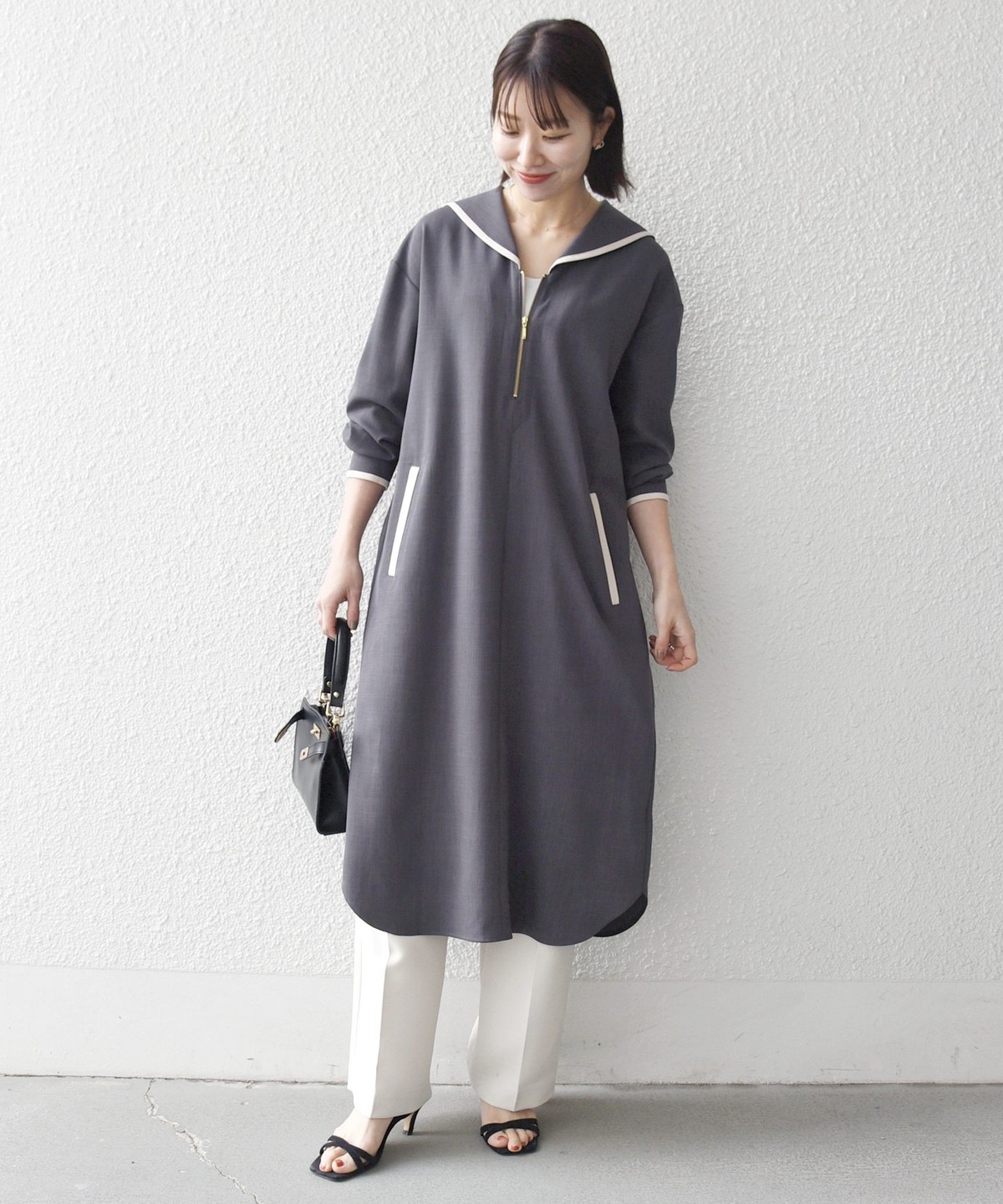 フレンチムード漂う、ミドル丈のセーラーカラーワンピース。