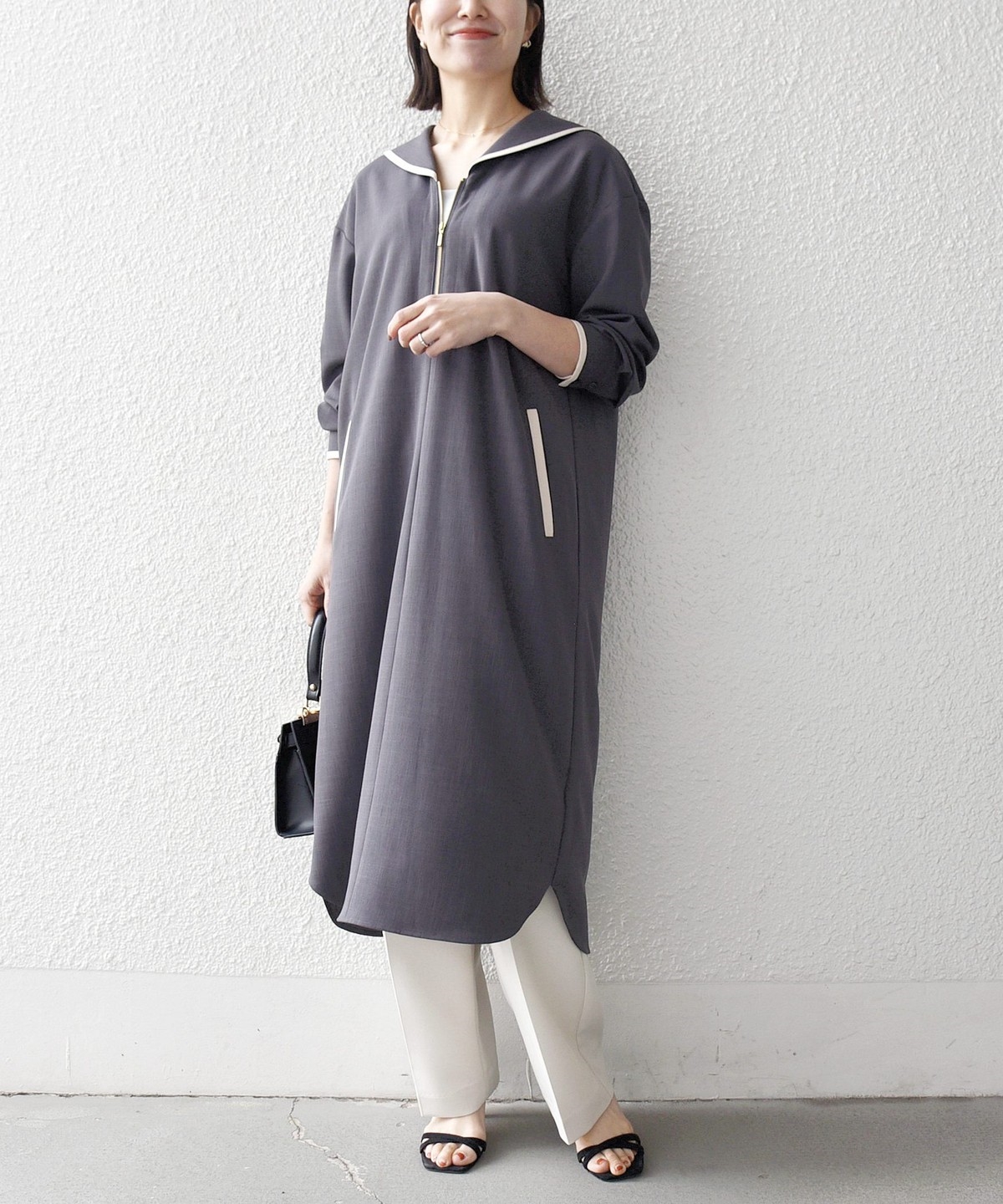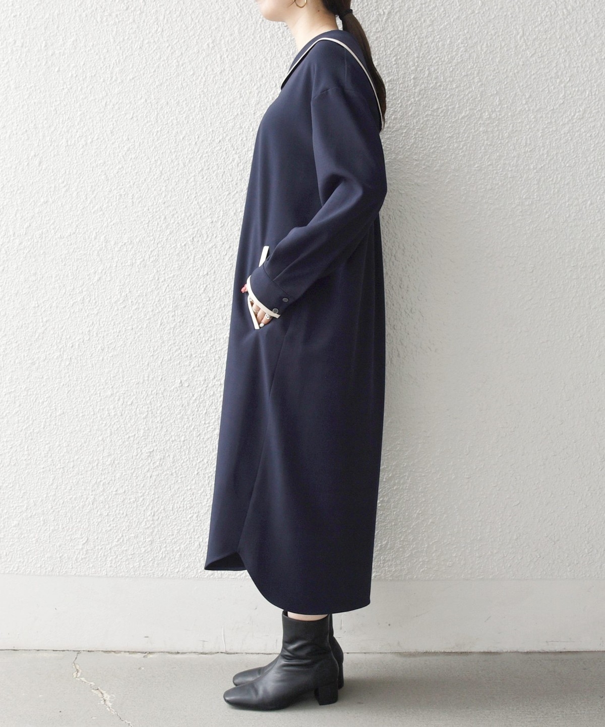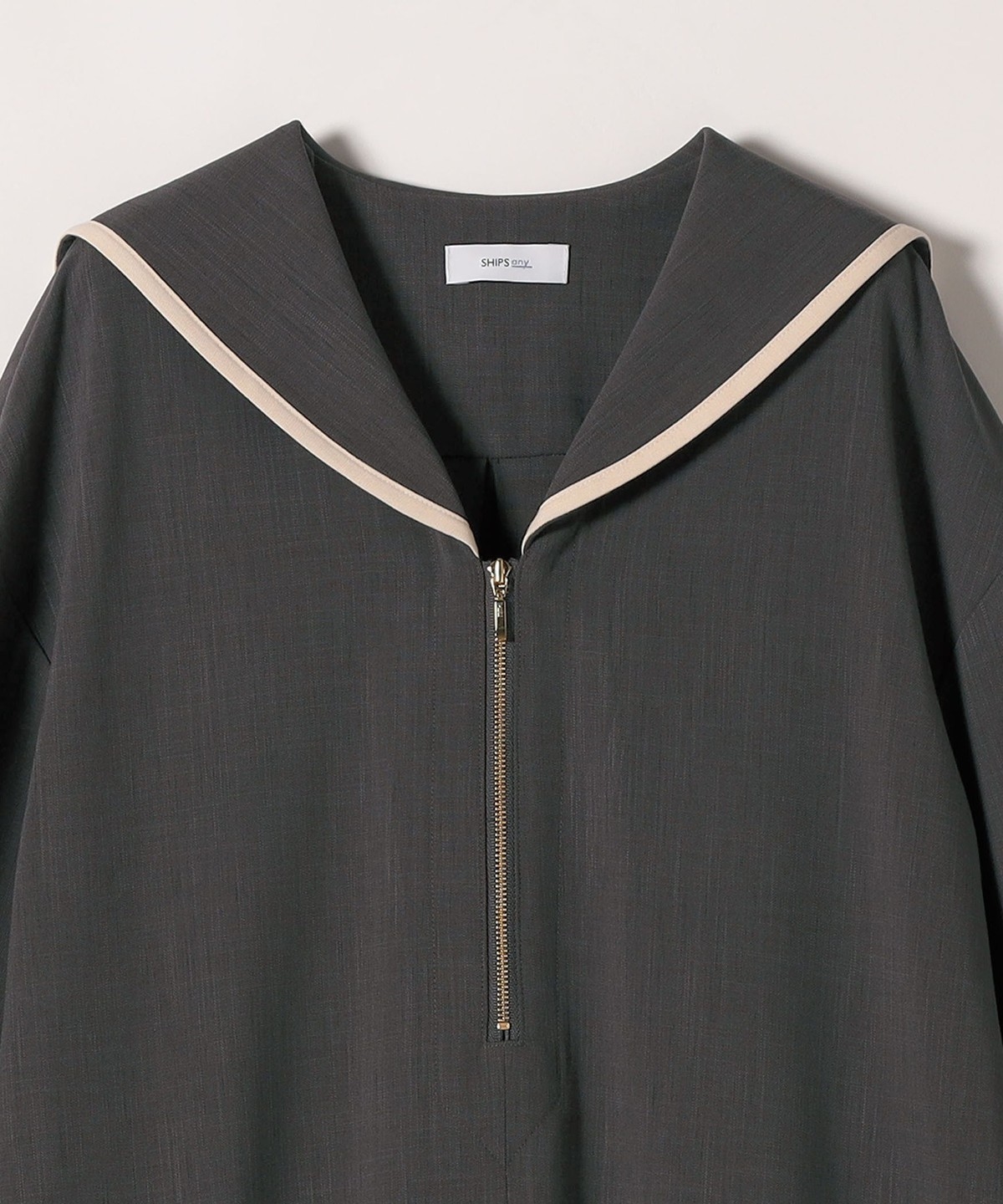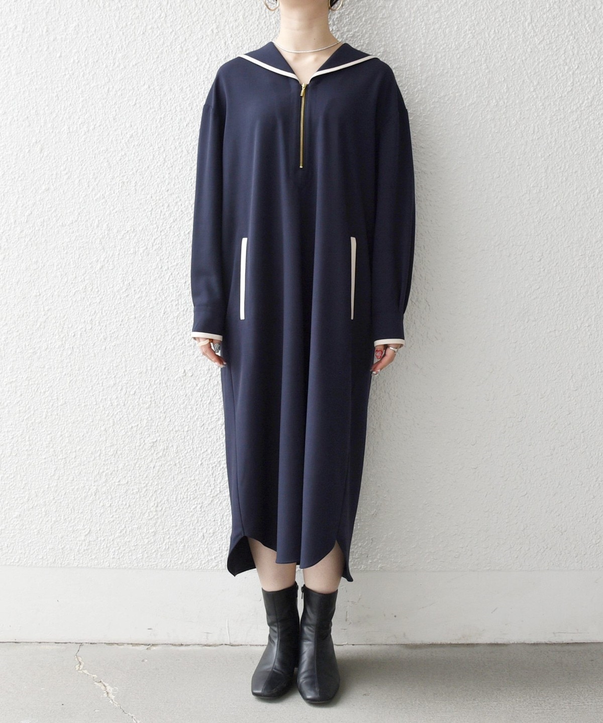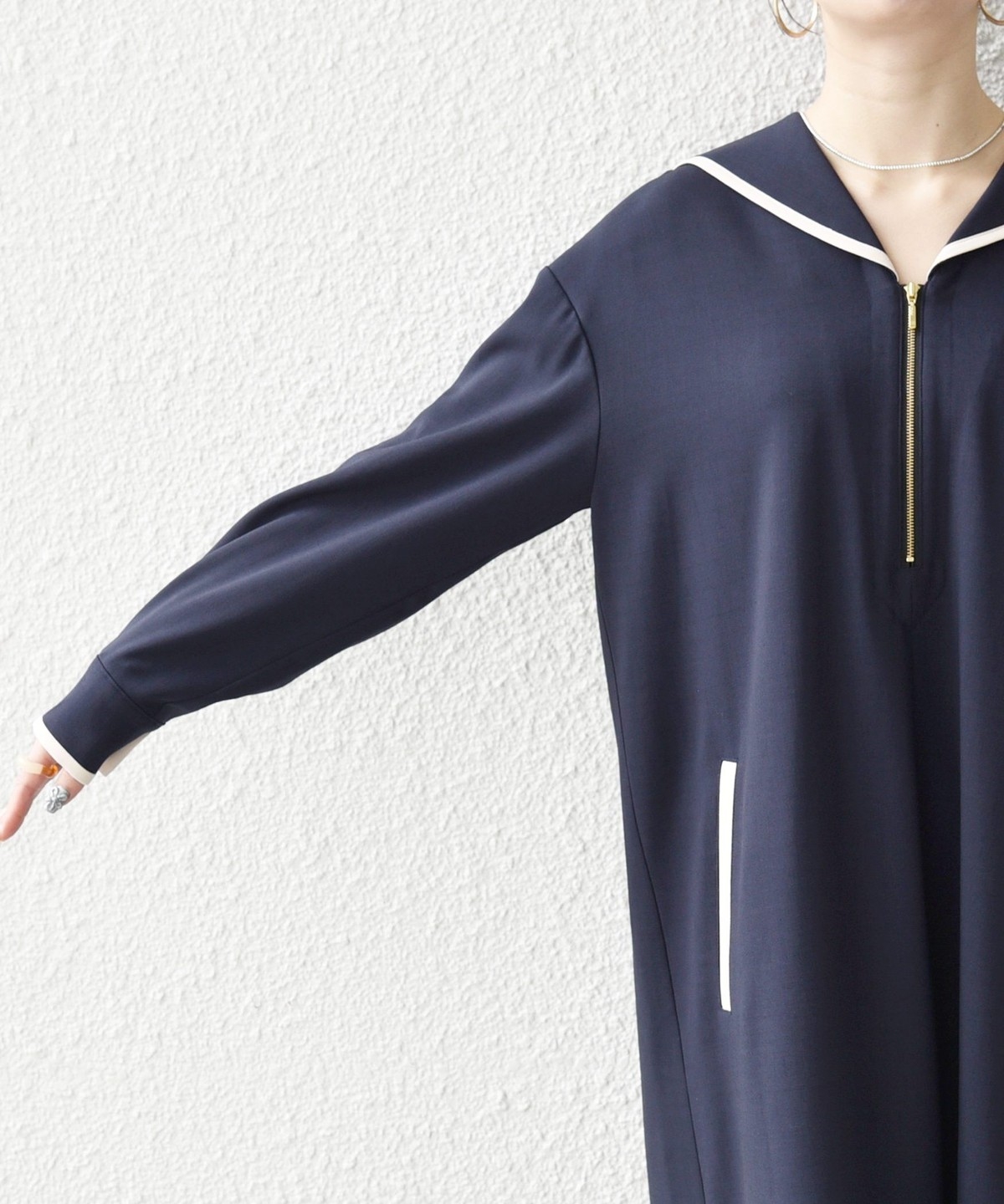 《予約》SHIPS any:〈洗濯機可能〉セーラーカラー 配色 ジップ ワンピース
