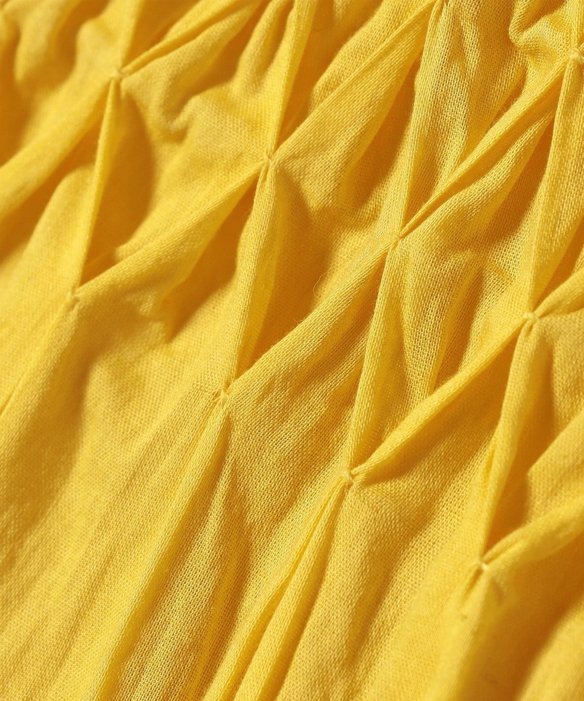 衿ぐりとウエスト周りにぐるりとハンドスモッキングを施した高級感のある一枚。