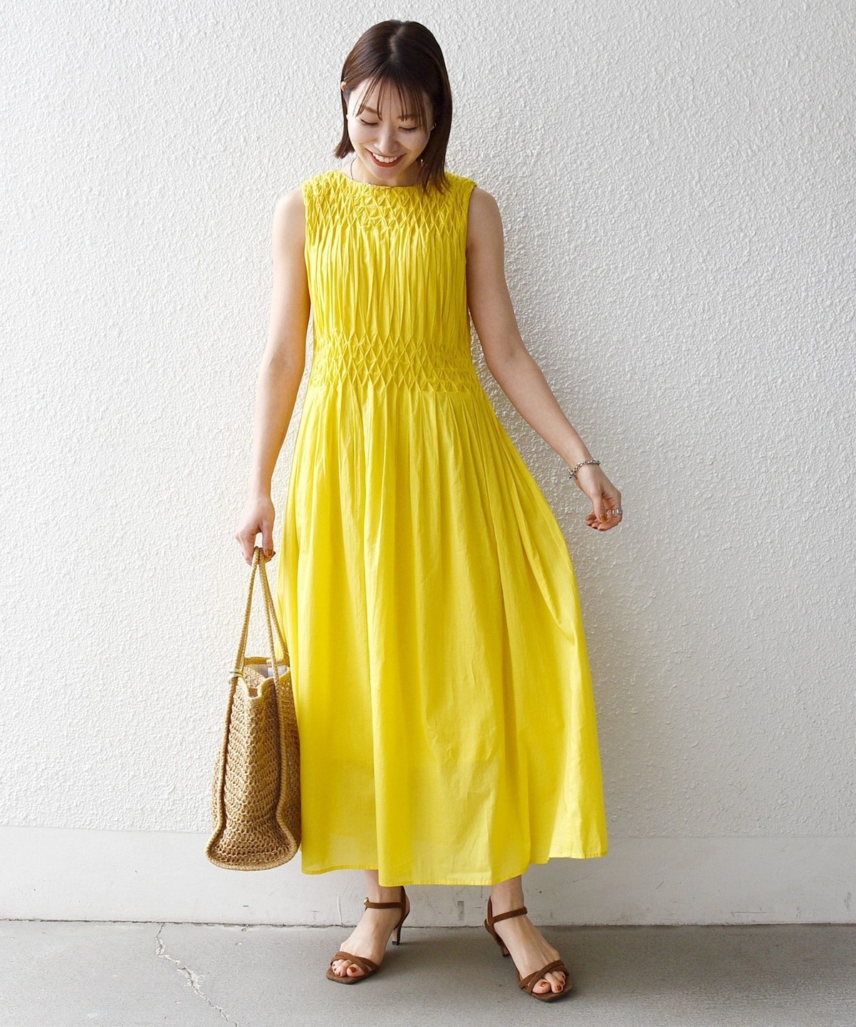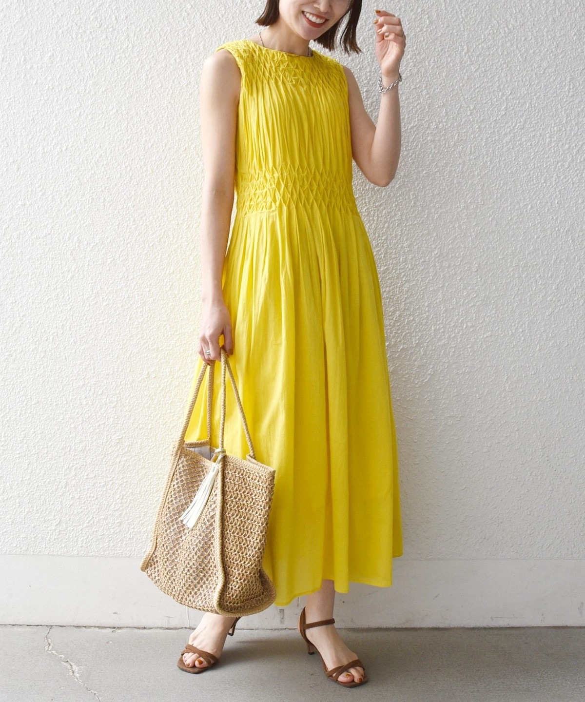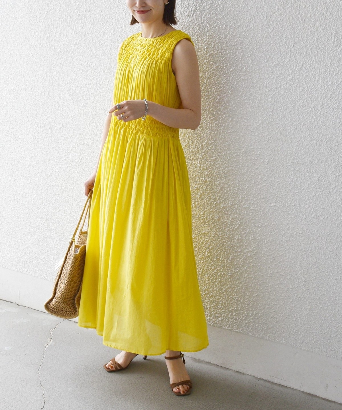 一枚でもサマになるワンピースは普段は勿論、リゾートスタイルまで小物合わせを変えて楽しめます。