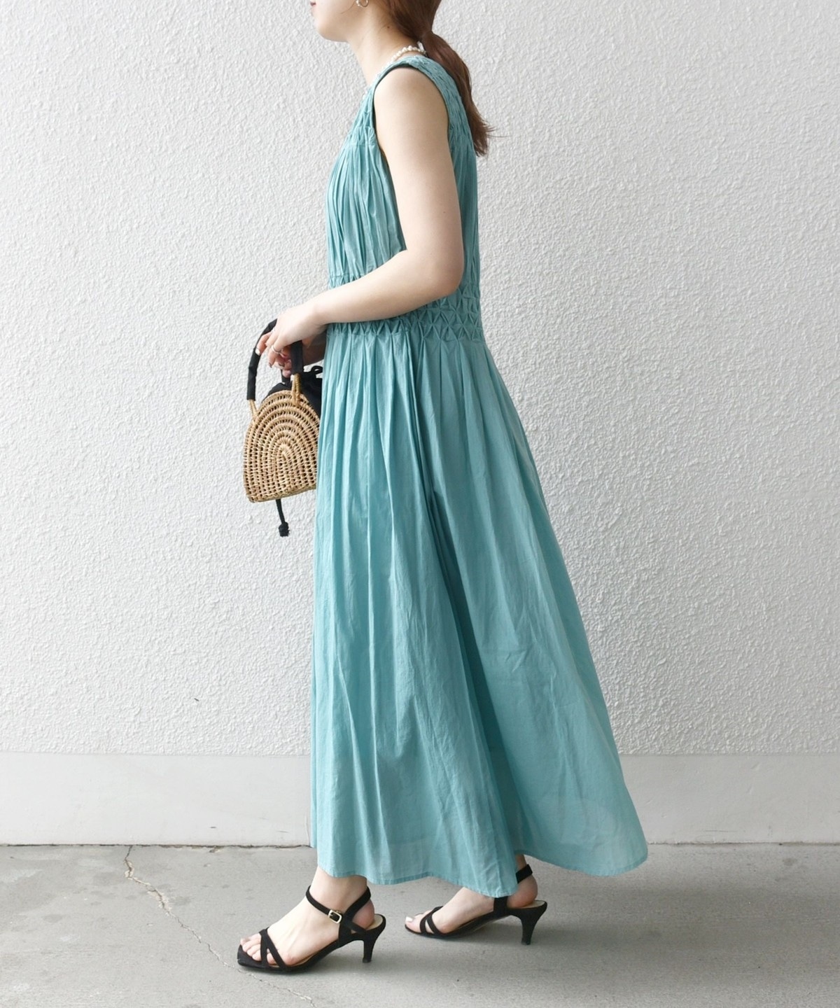 一見重たく見えがちなロングワンピースですが、透け感があって涼しく見えるので、夏に着るのにぴったりな一枚です。