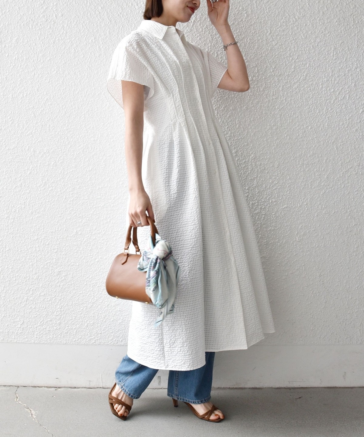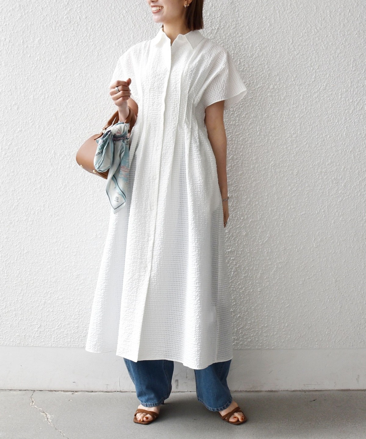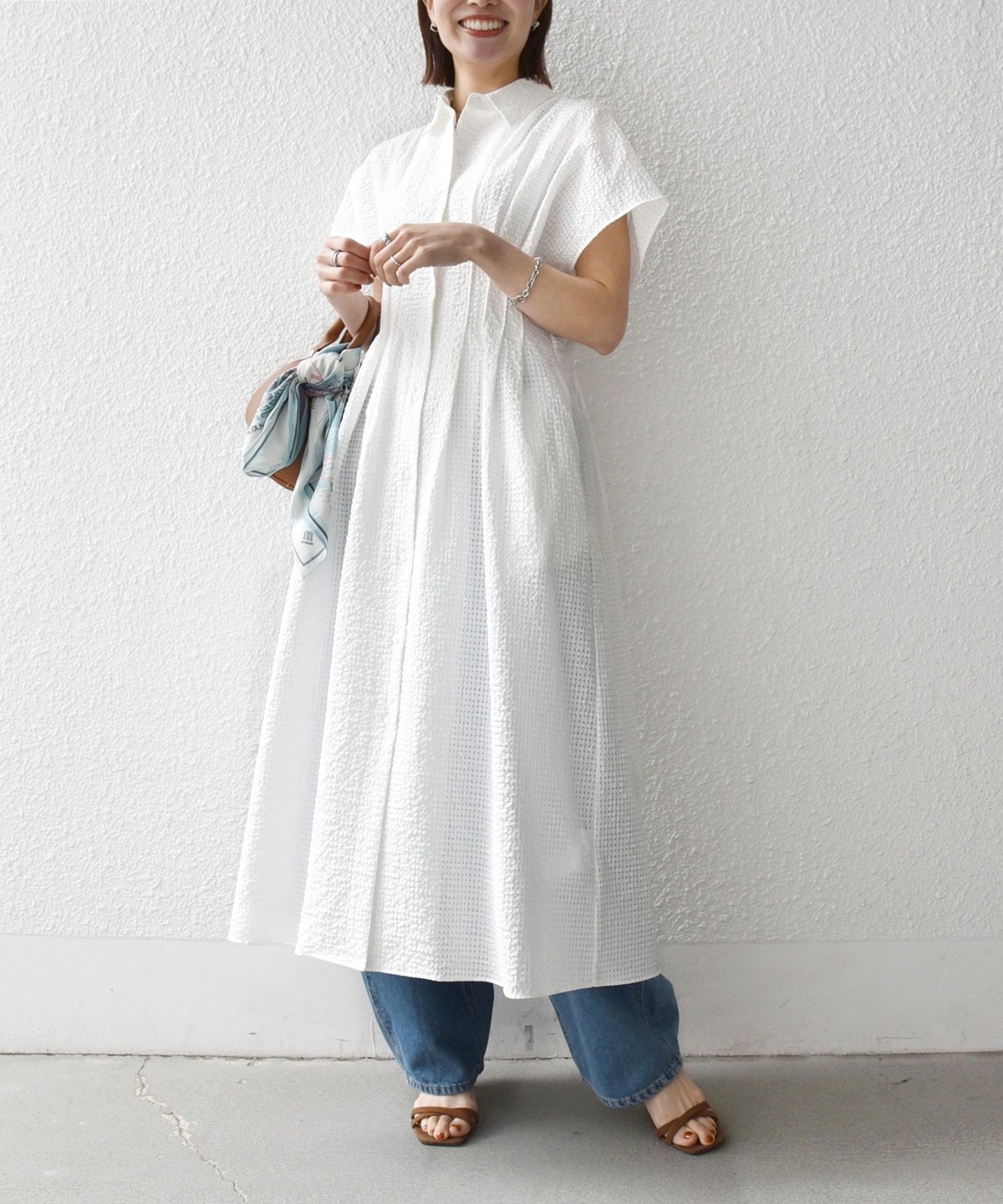 一枚はもちろん、デニムと合わせたレイヤードスタイルも◎