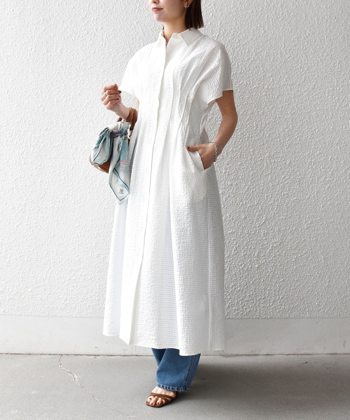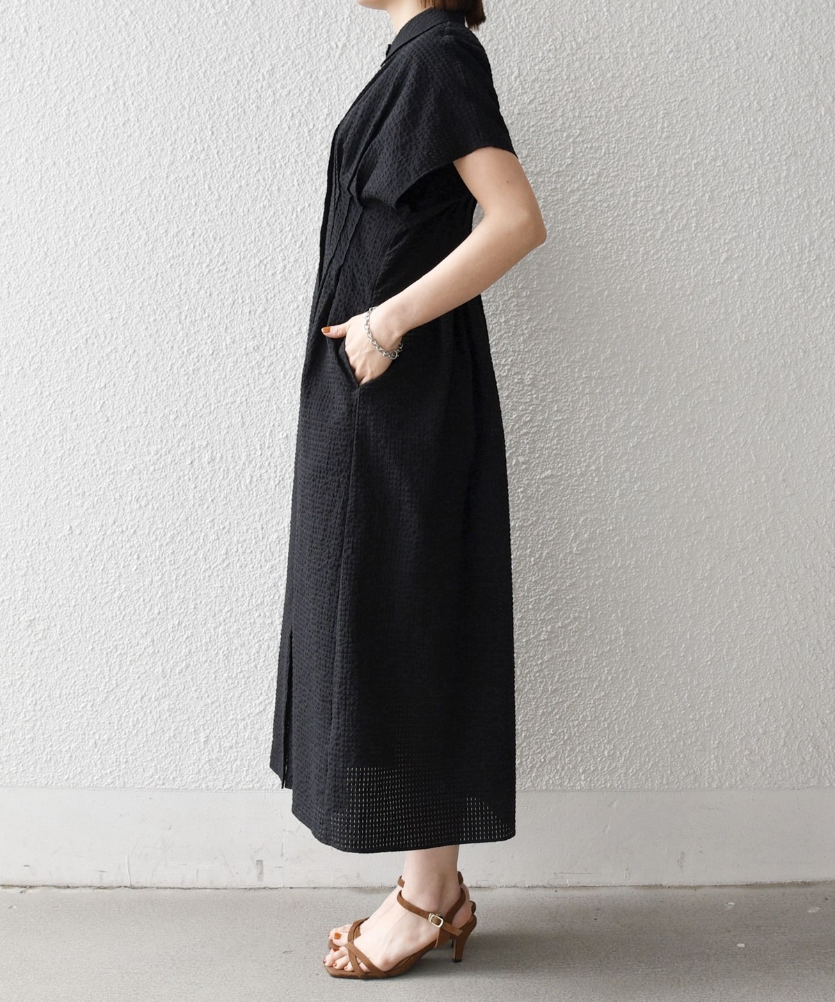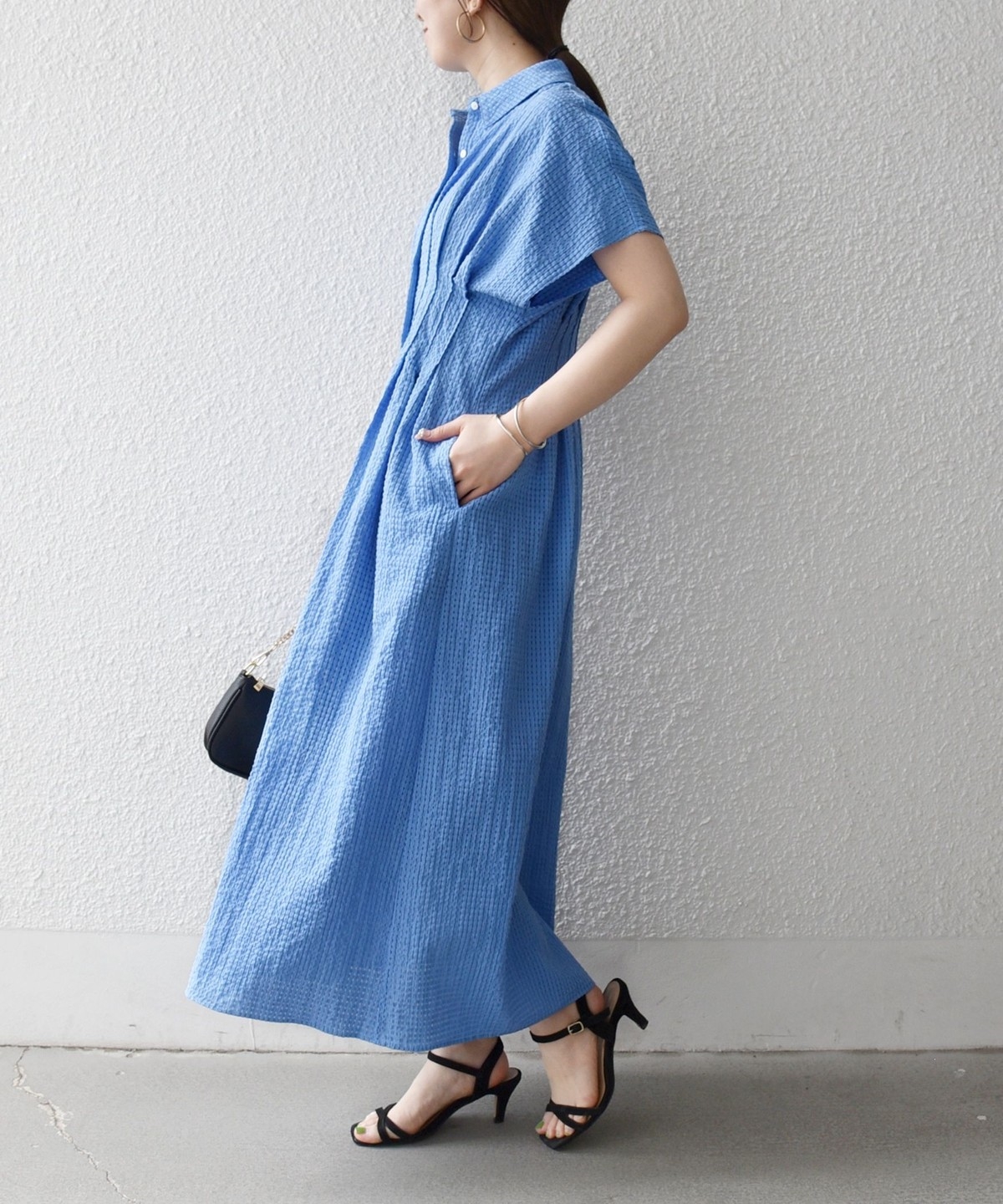 シャツ衿なのできちんと感もあり、オンオフ問わず活躍する着映えワンピースです。