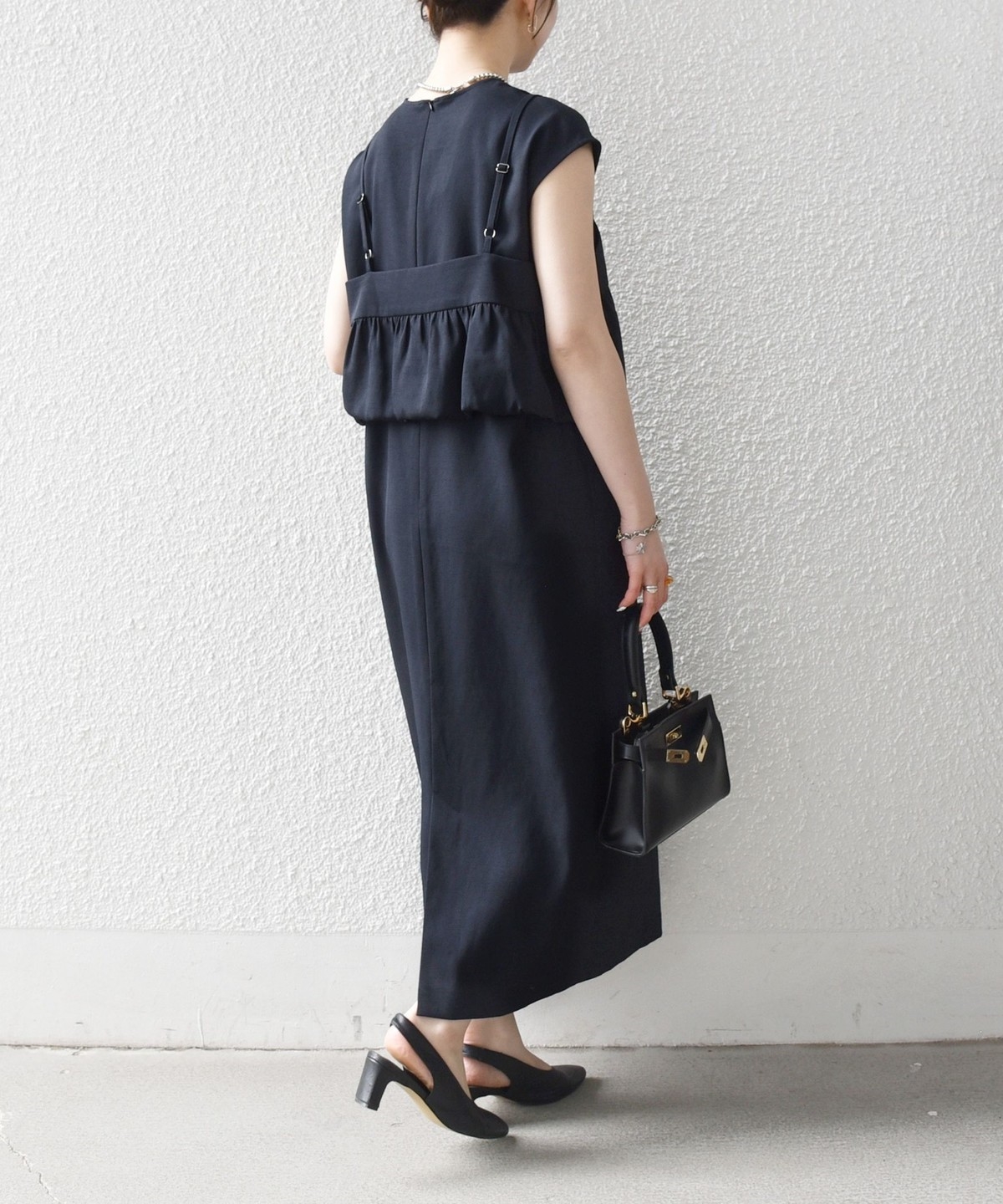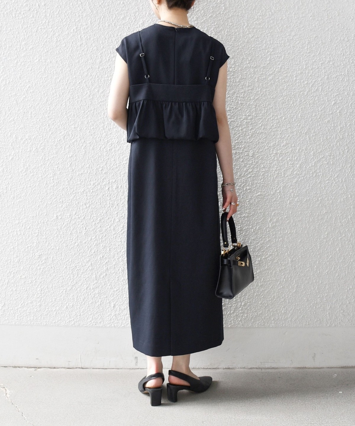 2. 《予約》SHIPS any:〈洗濯機可能〉リネン ライク ビスチェ × Iライン ワンピース セット ブラック