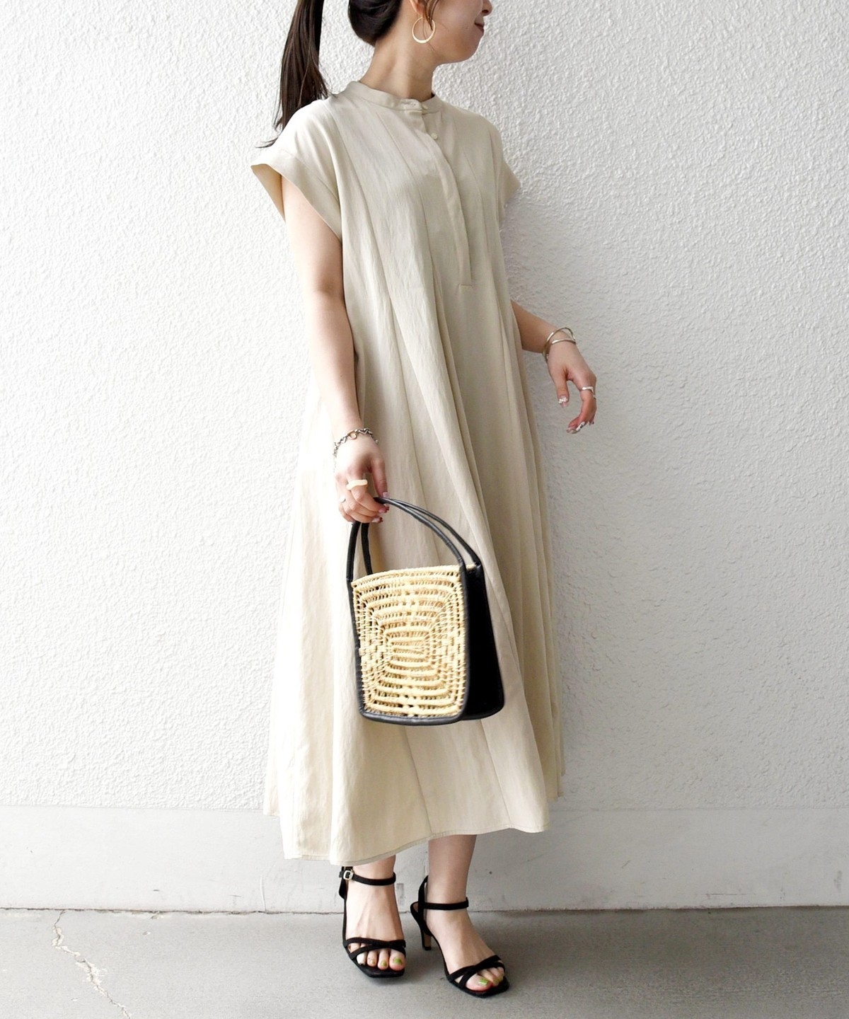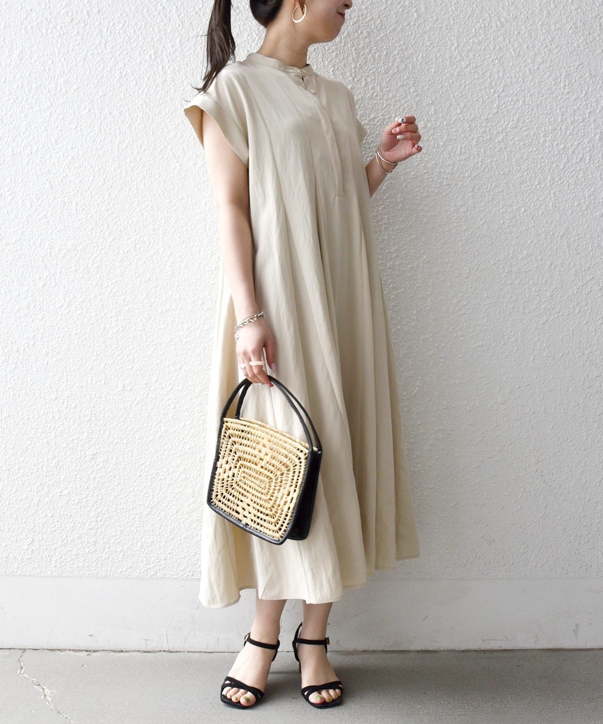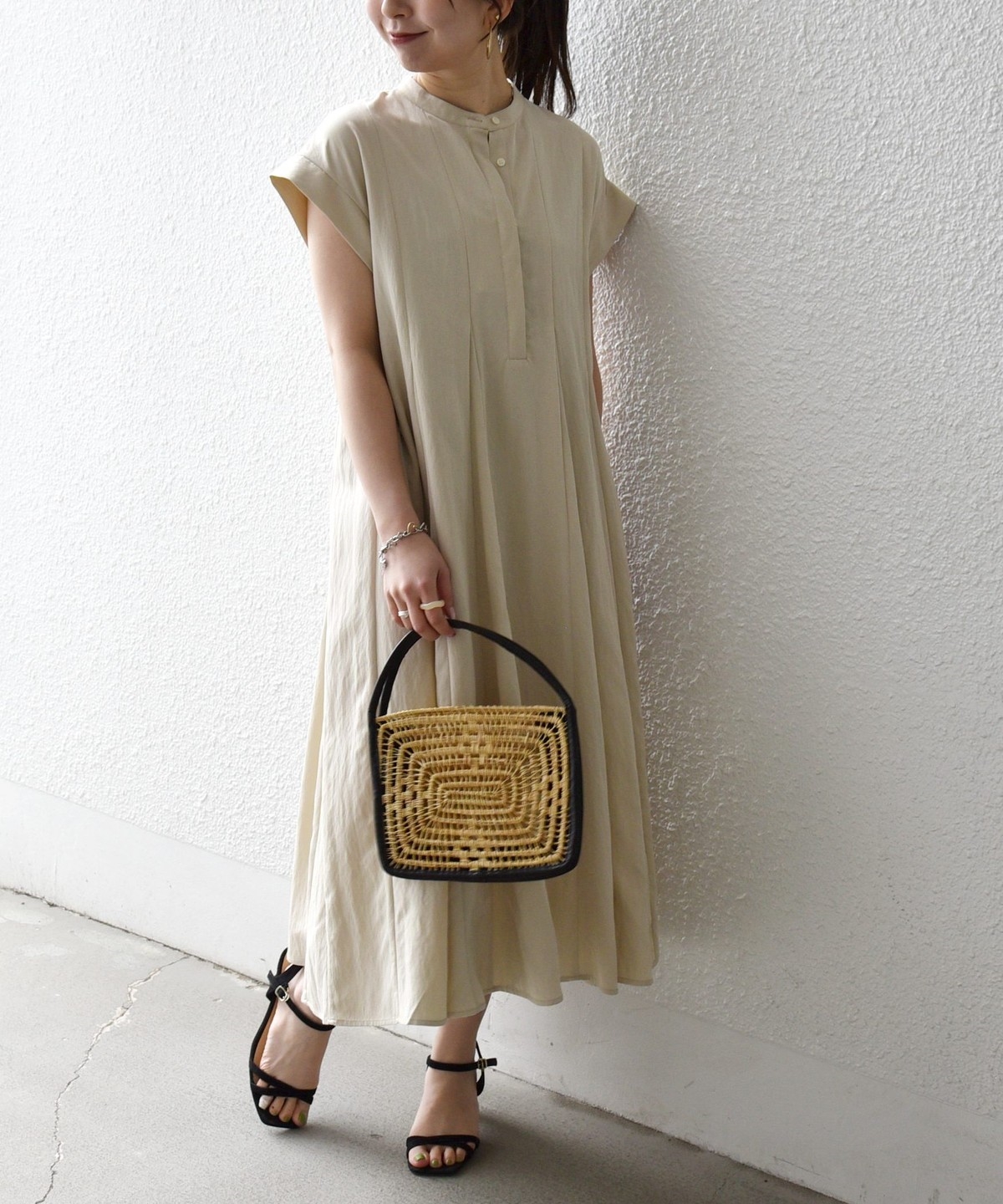 1. 《予約》SHIPS any:〈洗濯機可能〉ツイル バンドカラー フレンチ シャツ ワンピース ベージュ