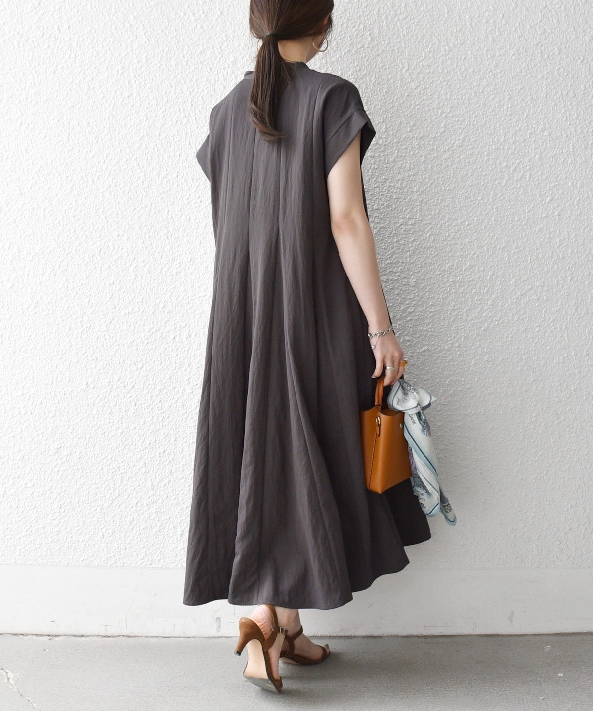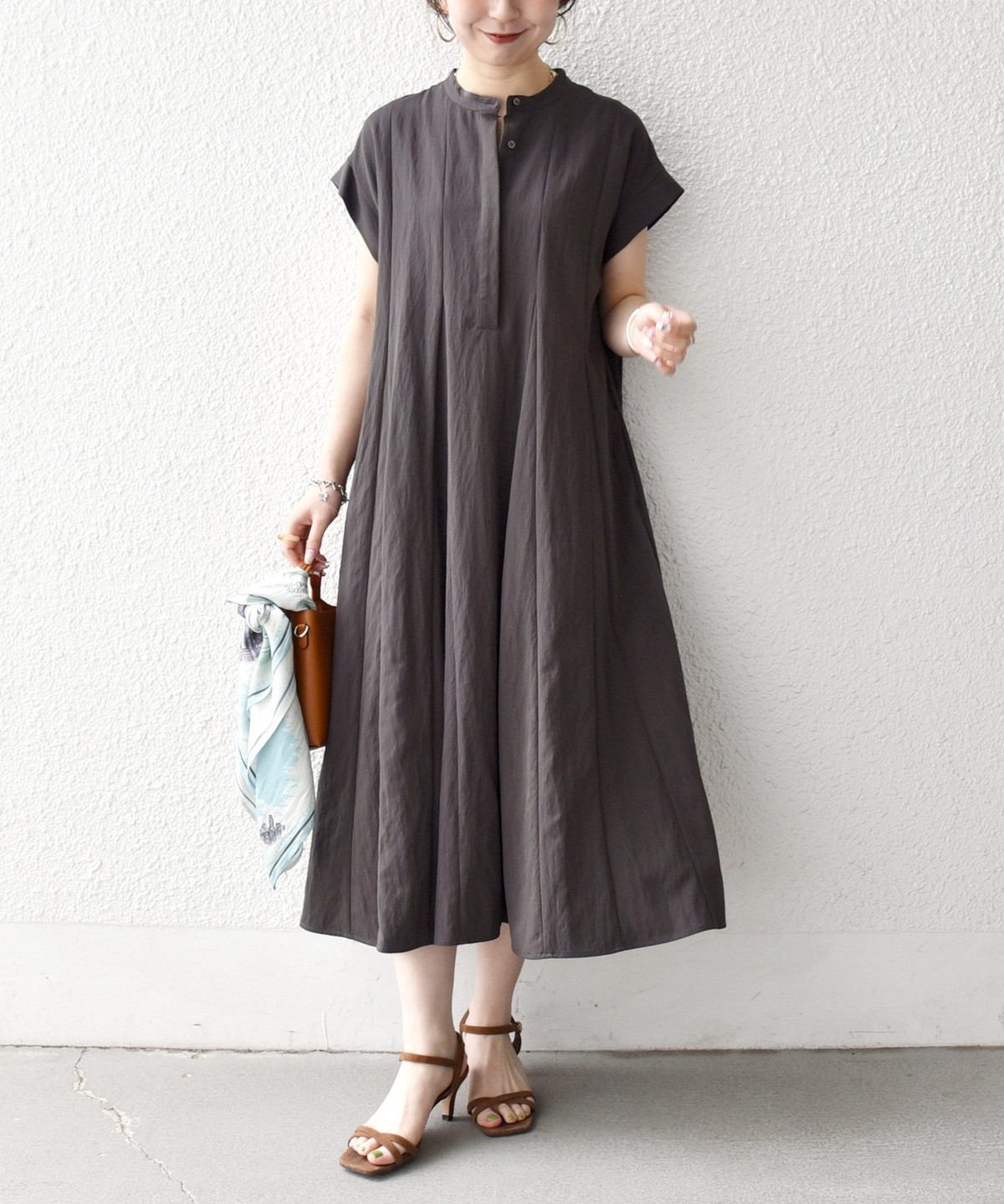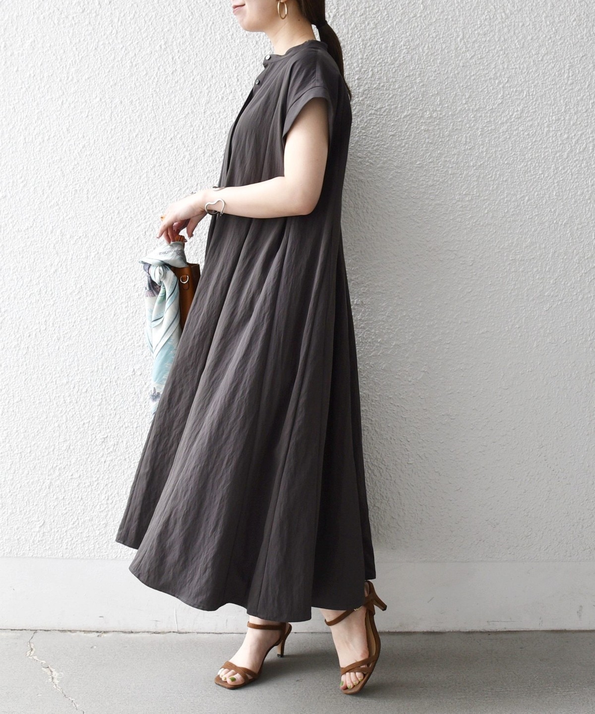 2. 《予約》SHIPS any:〈洗濯機可能〉ツイル バンドカラー フレンチ シャツ ワンピース チャコールグレー