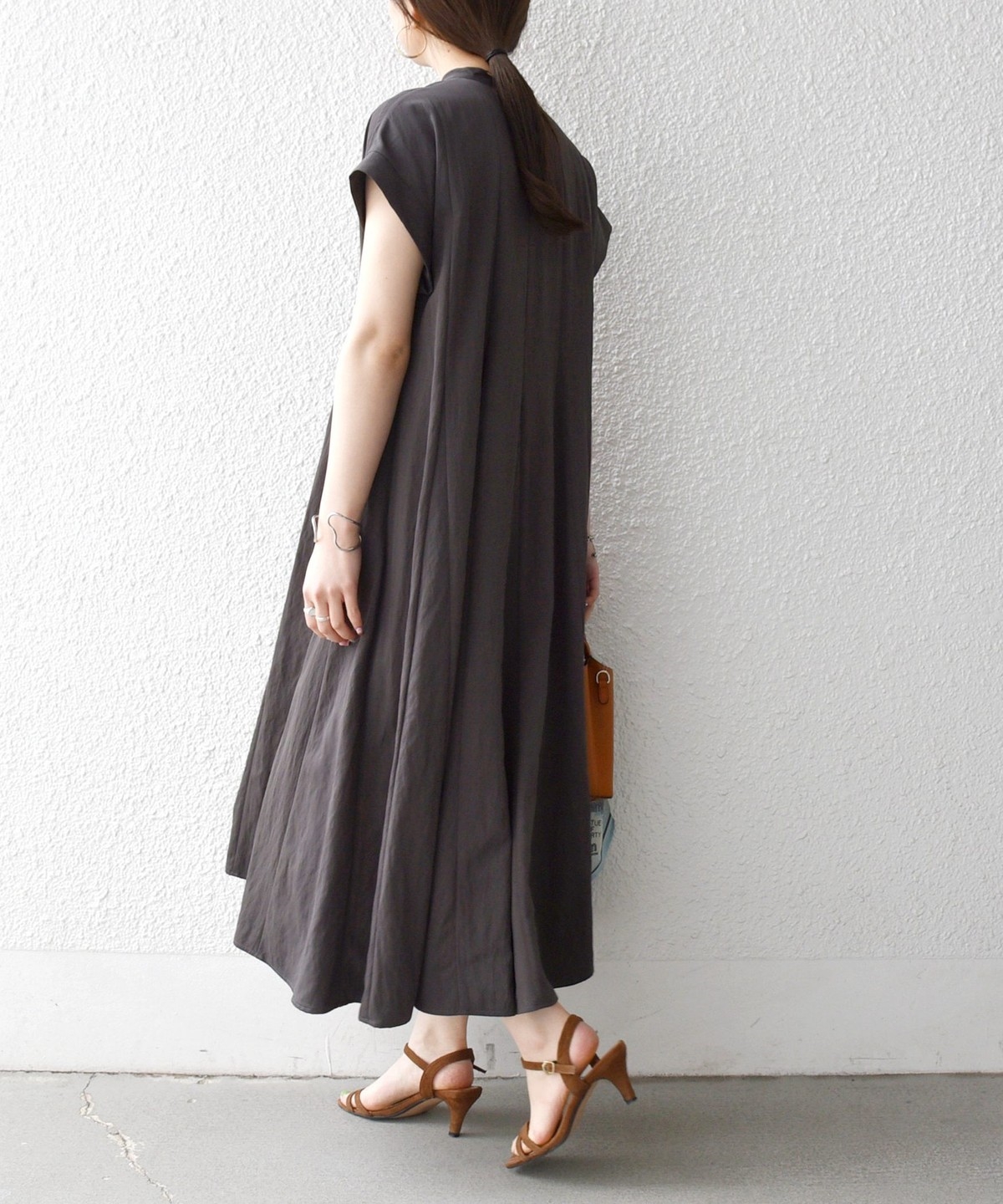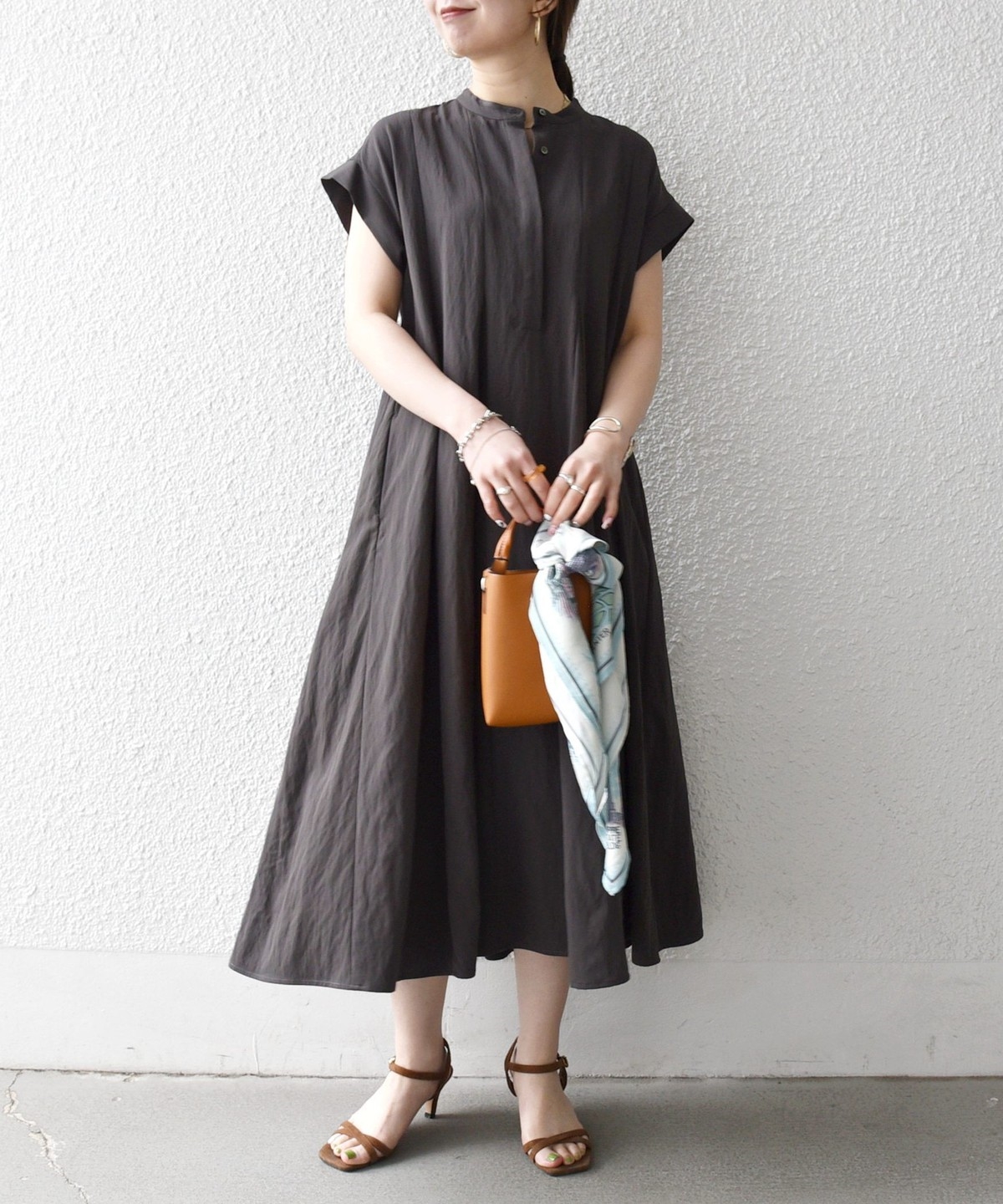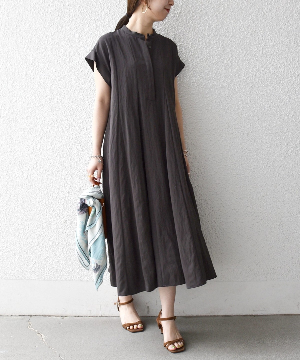 2. 《予約》SHIPS any:〈洗濯機可能〉ツイル バンドカラー フレンチ シャツ ワンピース チャコールグレー