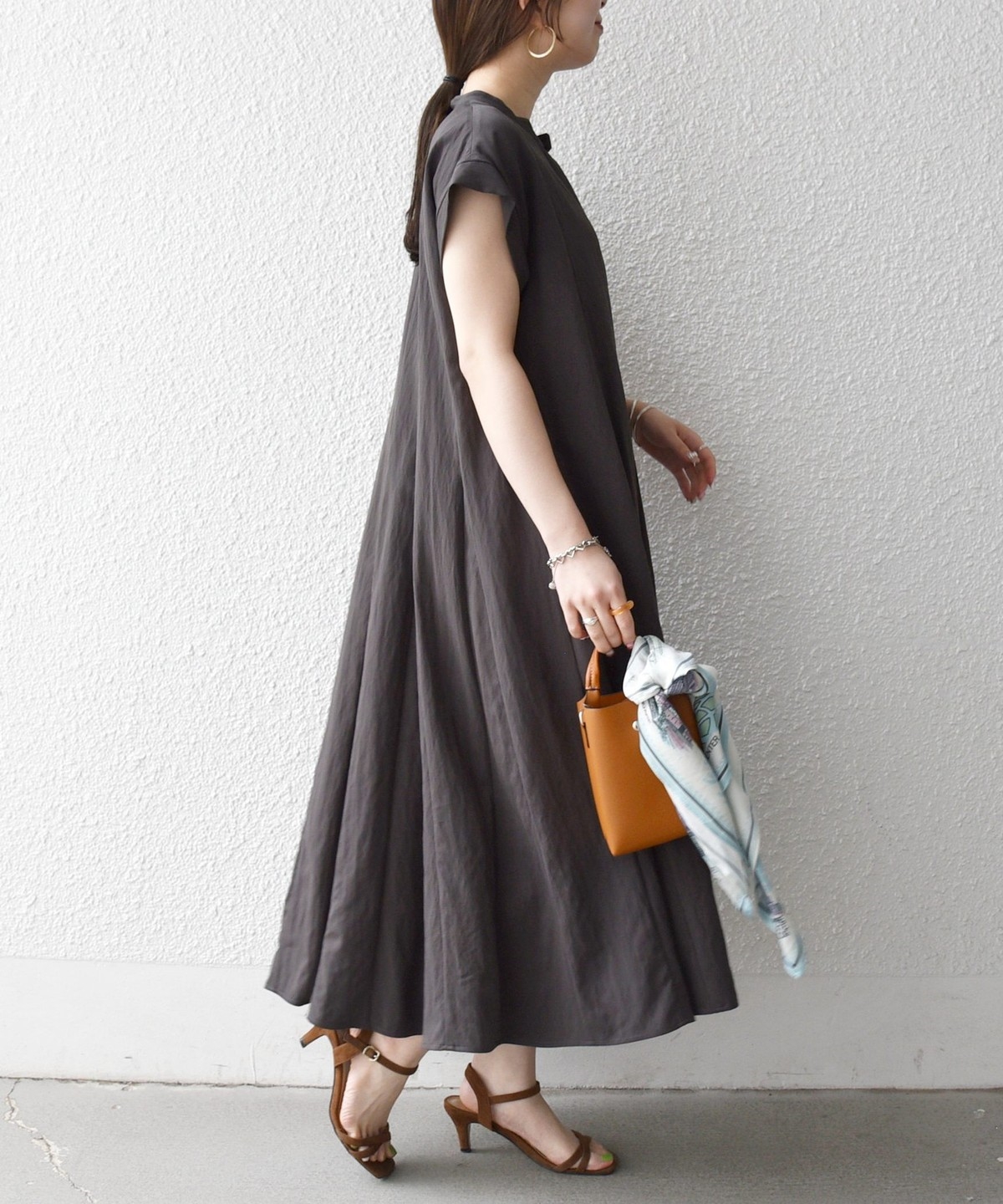 自然なフレアシルエットが女性らしい印象のロングワンピース。