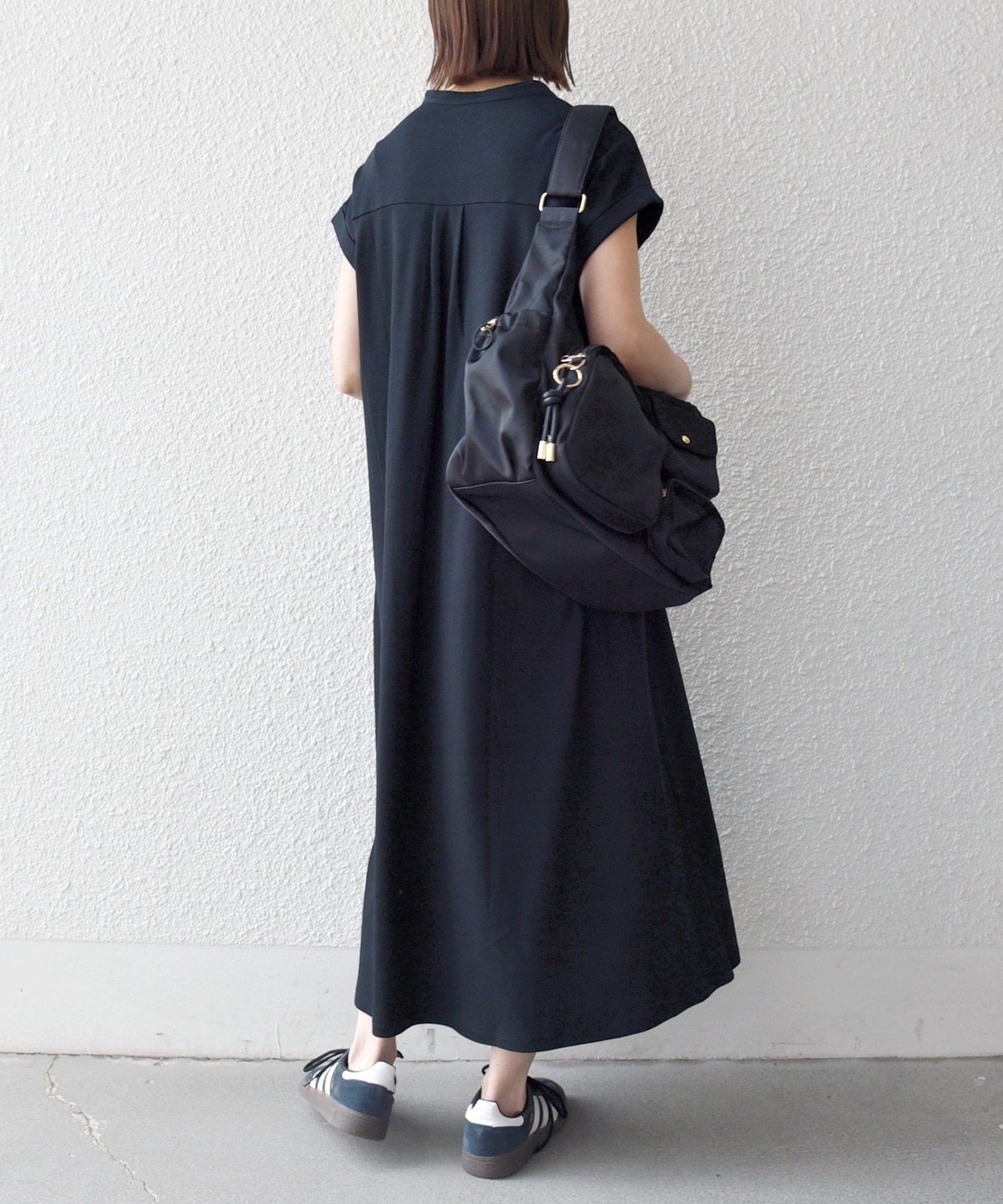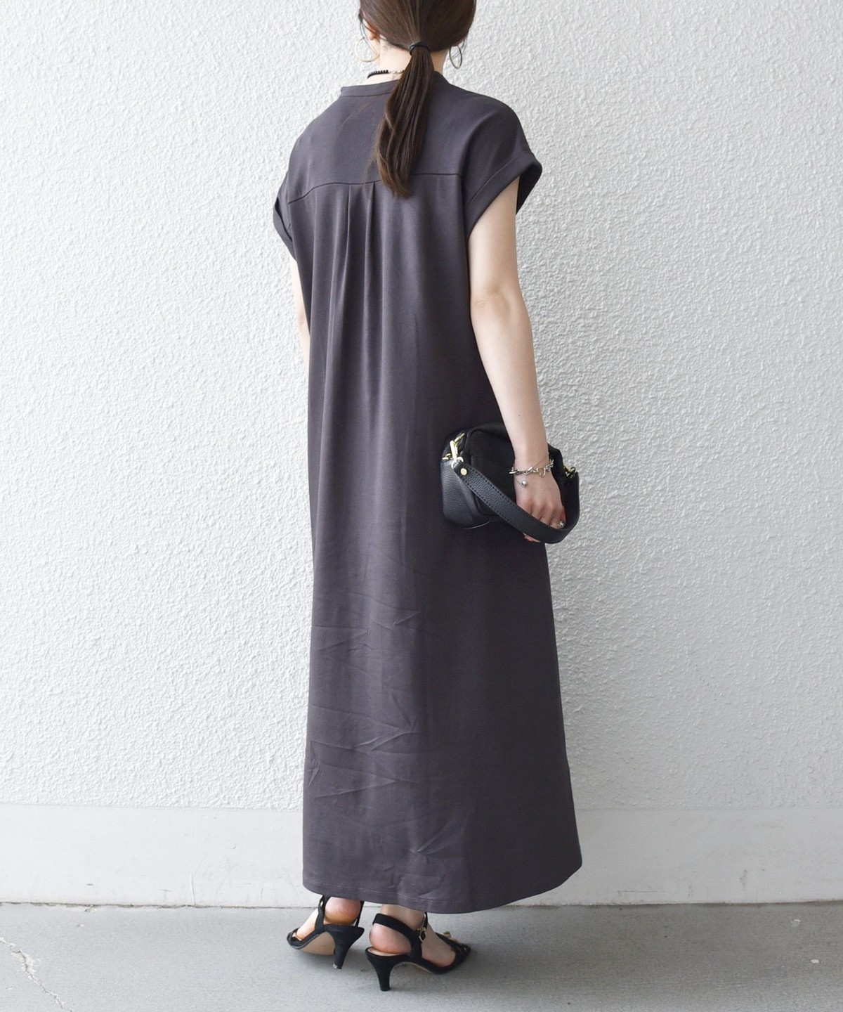バックスタイルはタックが入っているので立体感があり、ふんわり風をはらんで涼やかな印象に。