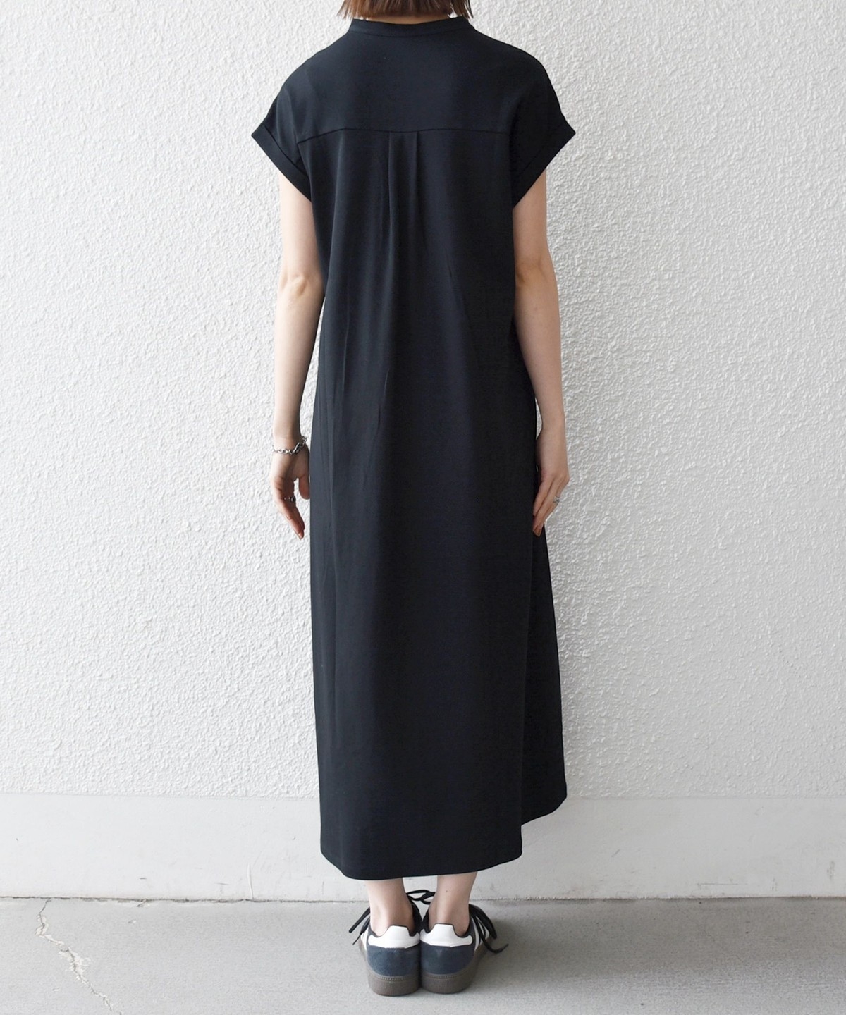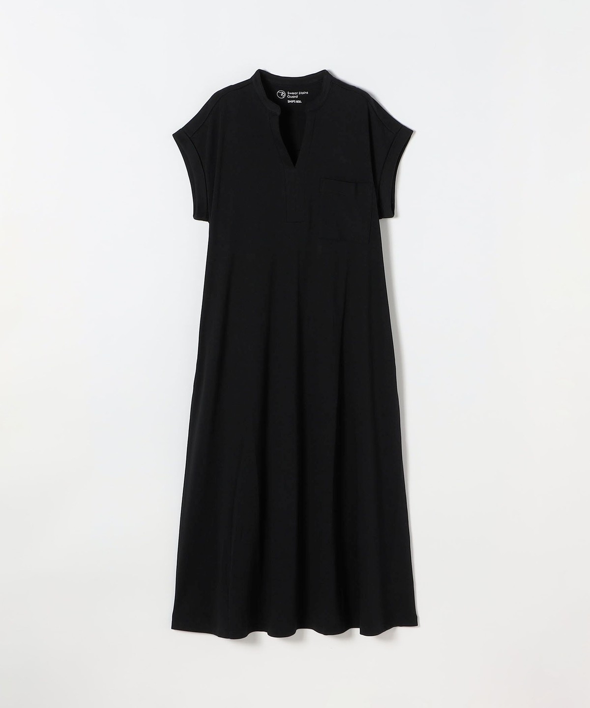 1. 《予約》SHIPS any:〈接触冷感/汗染み防止加工/洗濯機可能〉スキッパー Aライン ワンピース ブラック