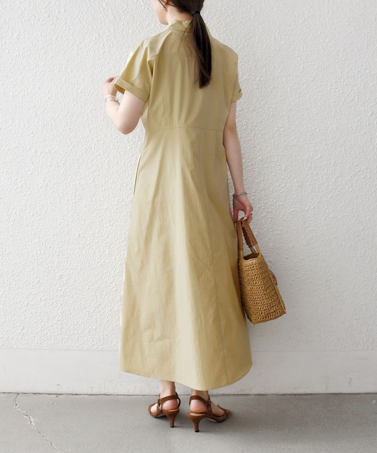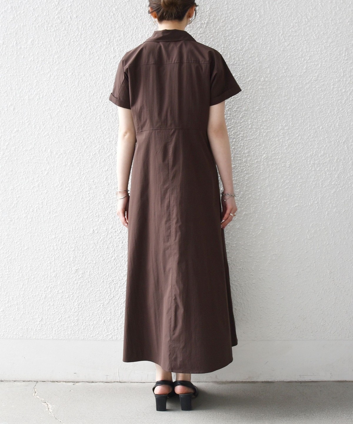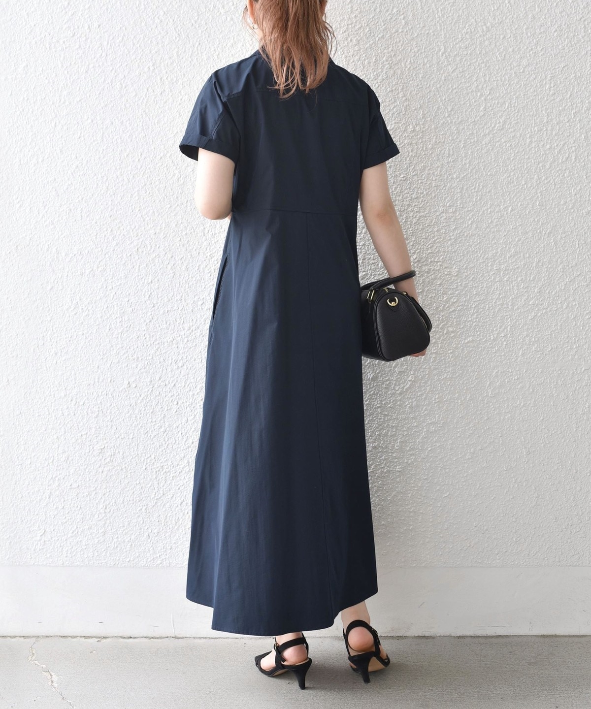 《予約》SHIPS any:〈洗濯機可能〉フラットカラー Vネック フレア ワンピース 2