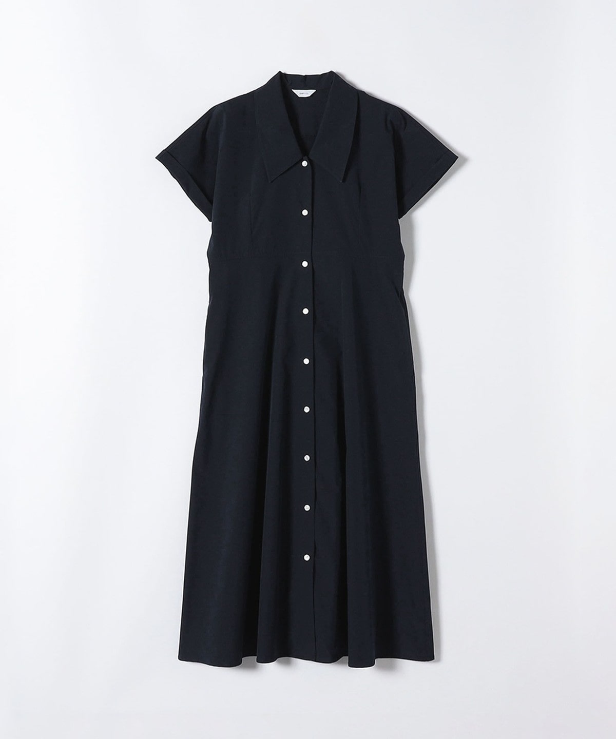 やや深めに開いたフラットカラーがクラシックな印象のAラインフレアワンピース。