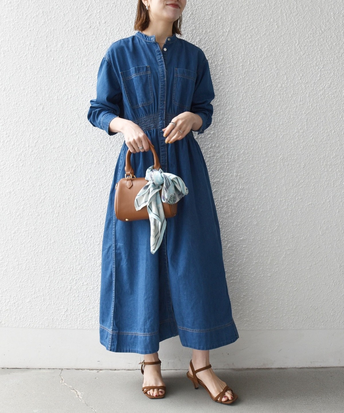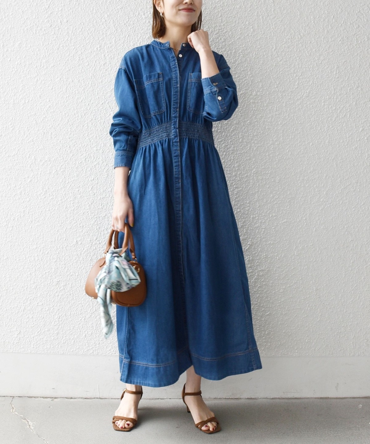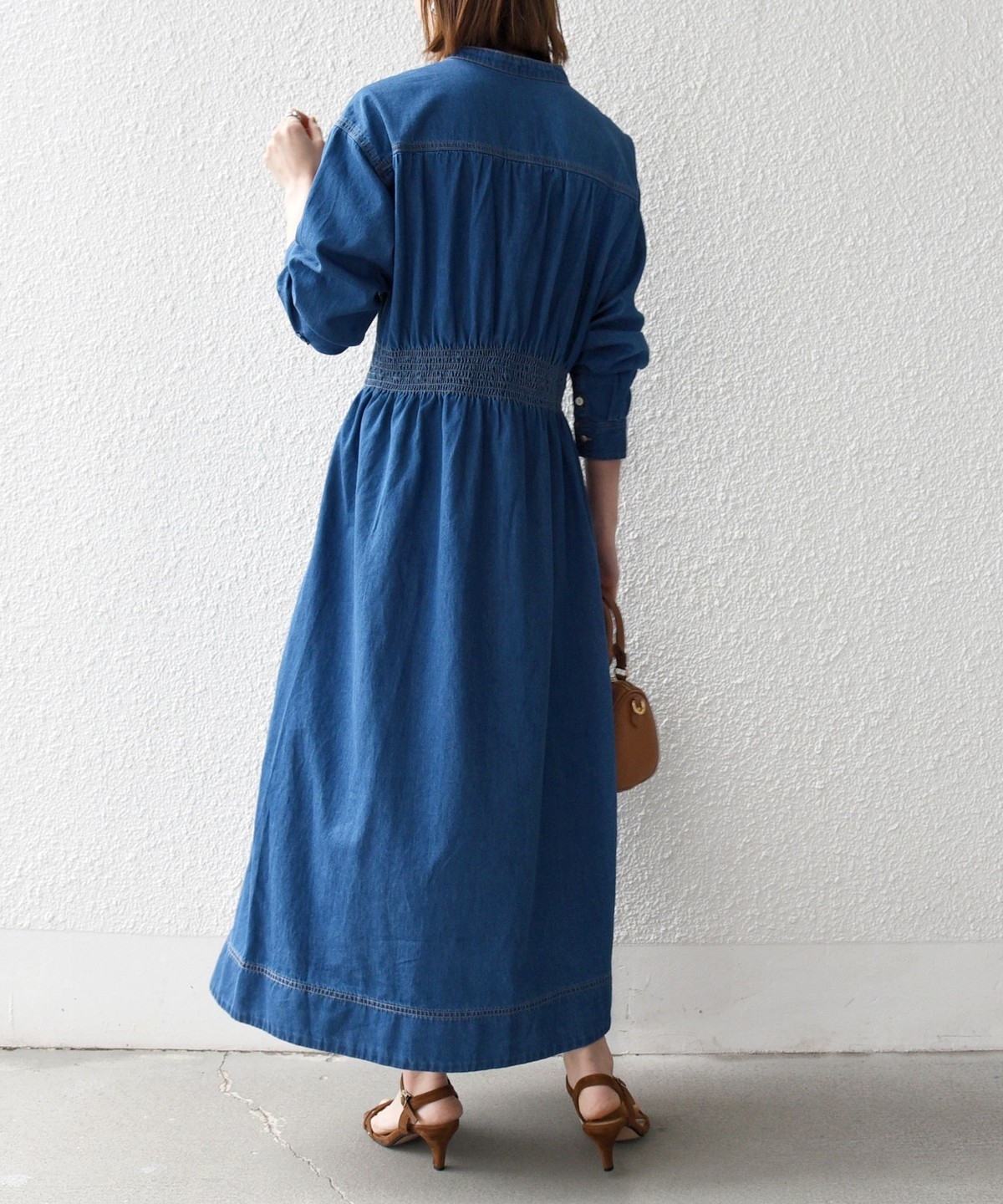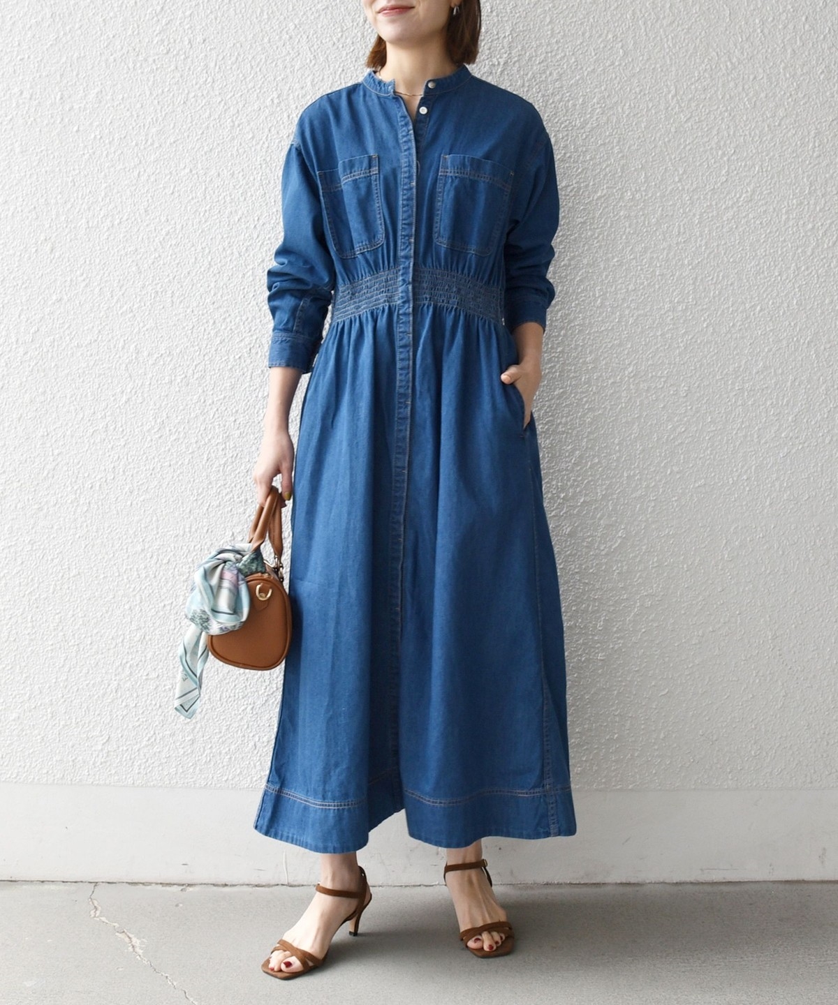 5. 《一部予約》SHIPS any: シャーリング デニム ポケット ワンピース [SHIPS any DENIM]