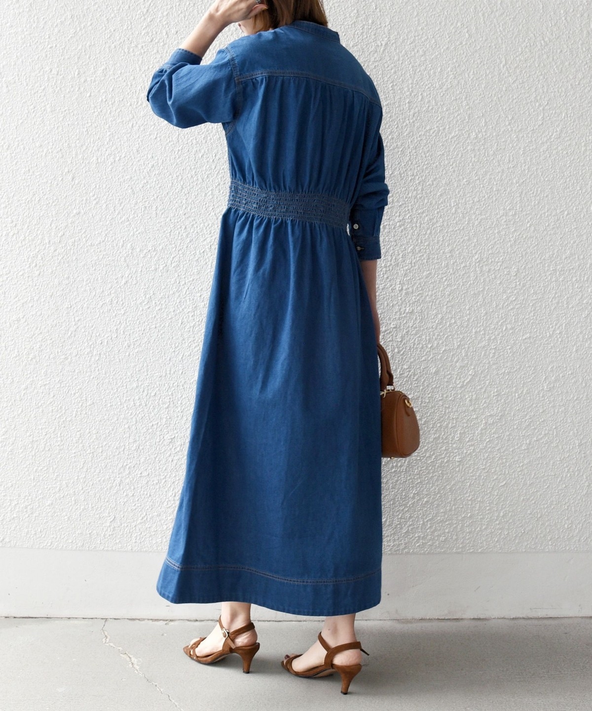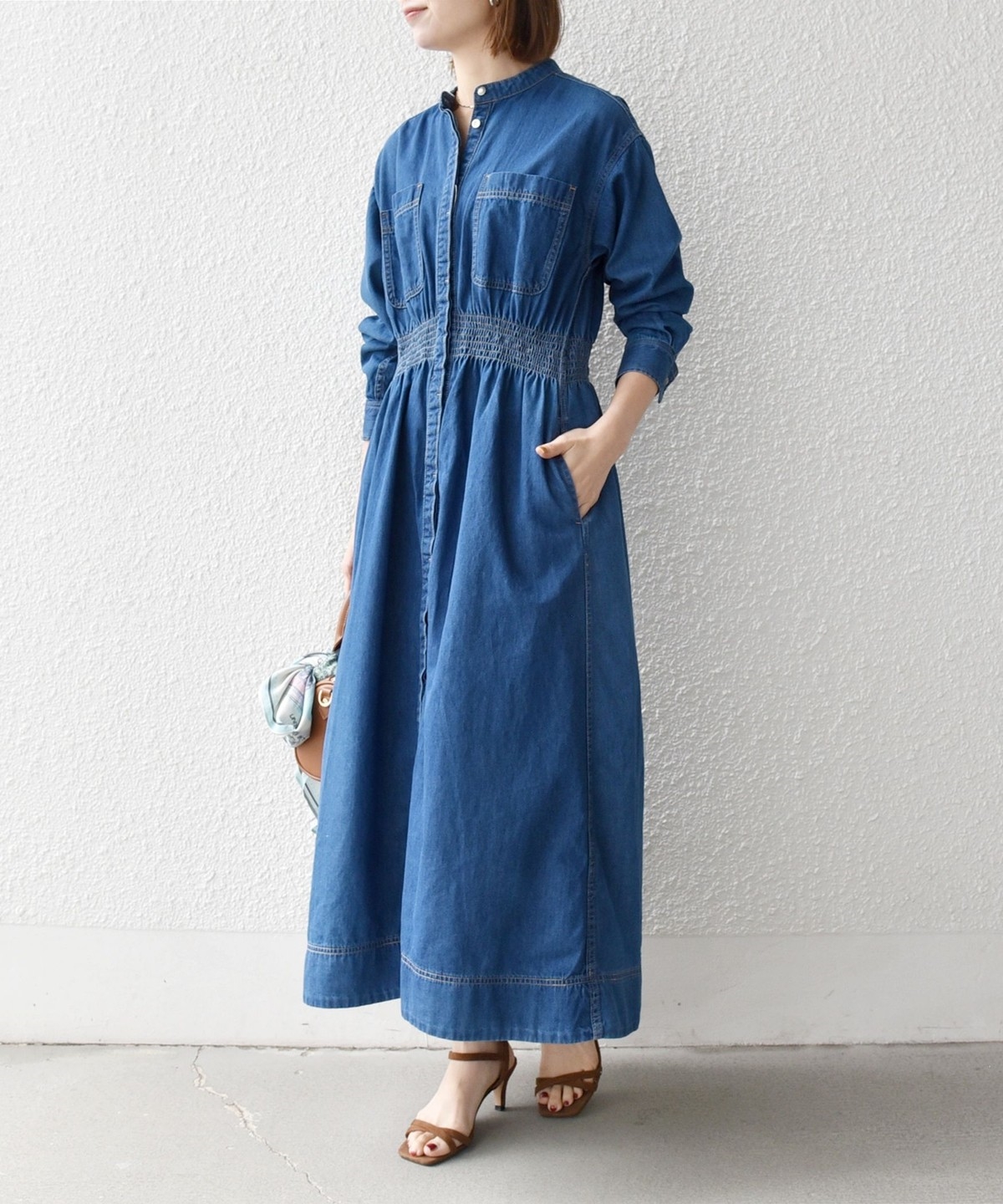 23. 《一部予約》SHIPS any: シャーリング デニム ポケット ワンピース [SHIPS any DENIM]