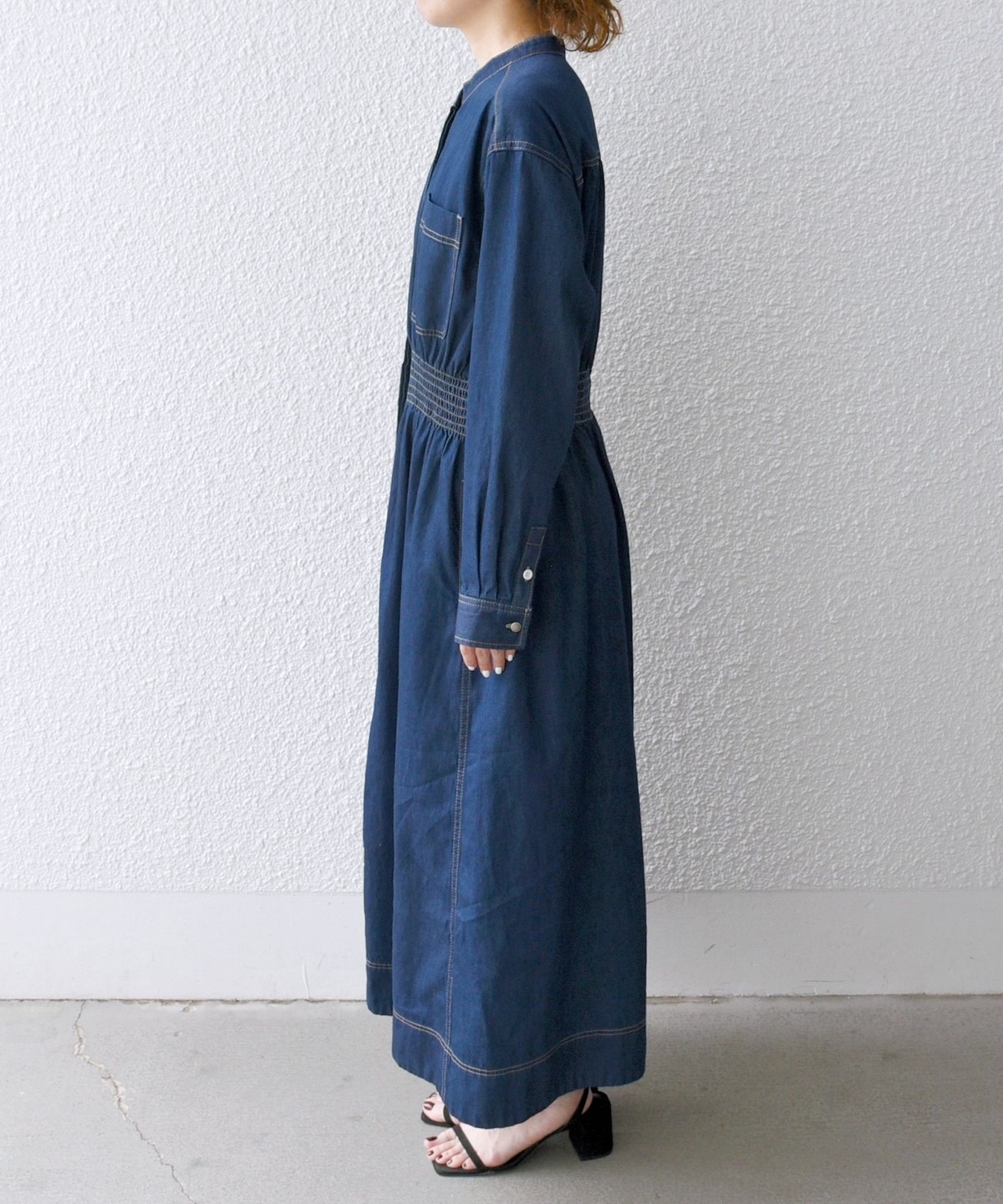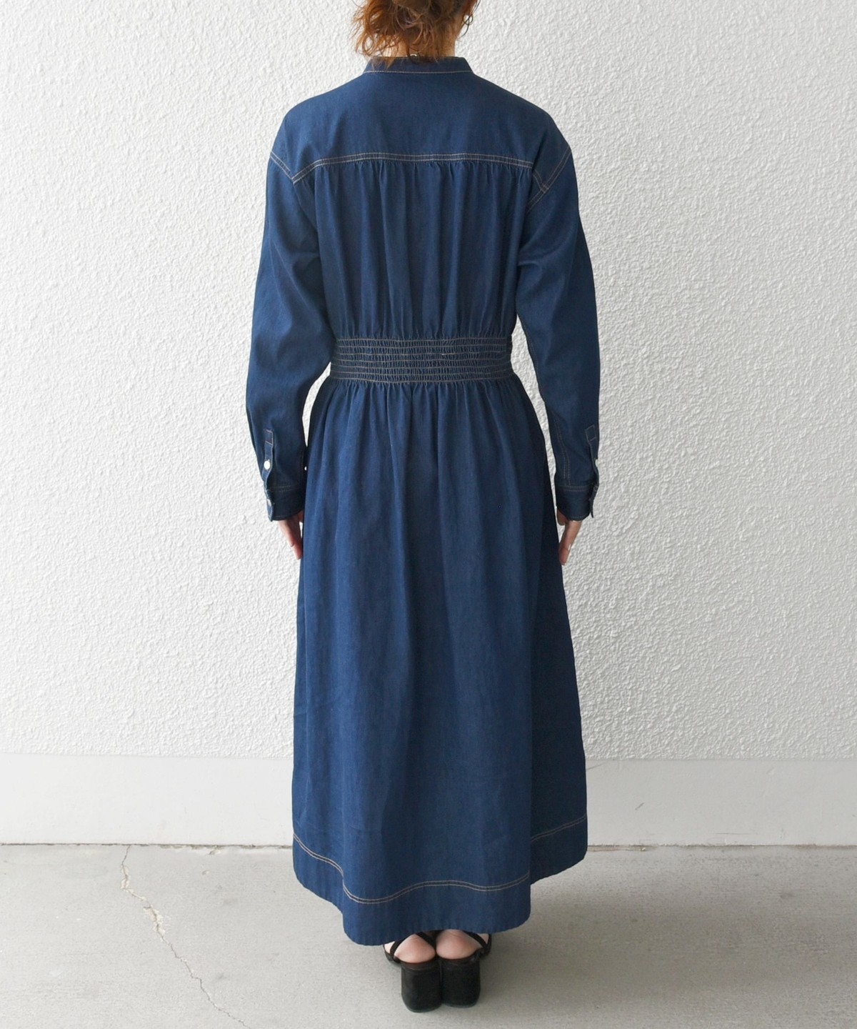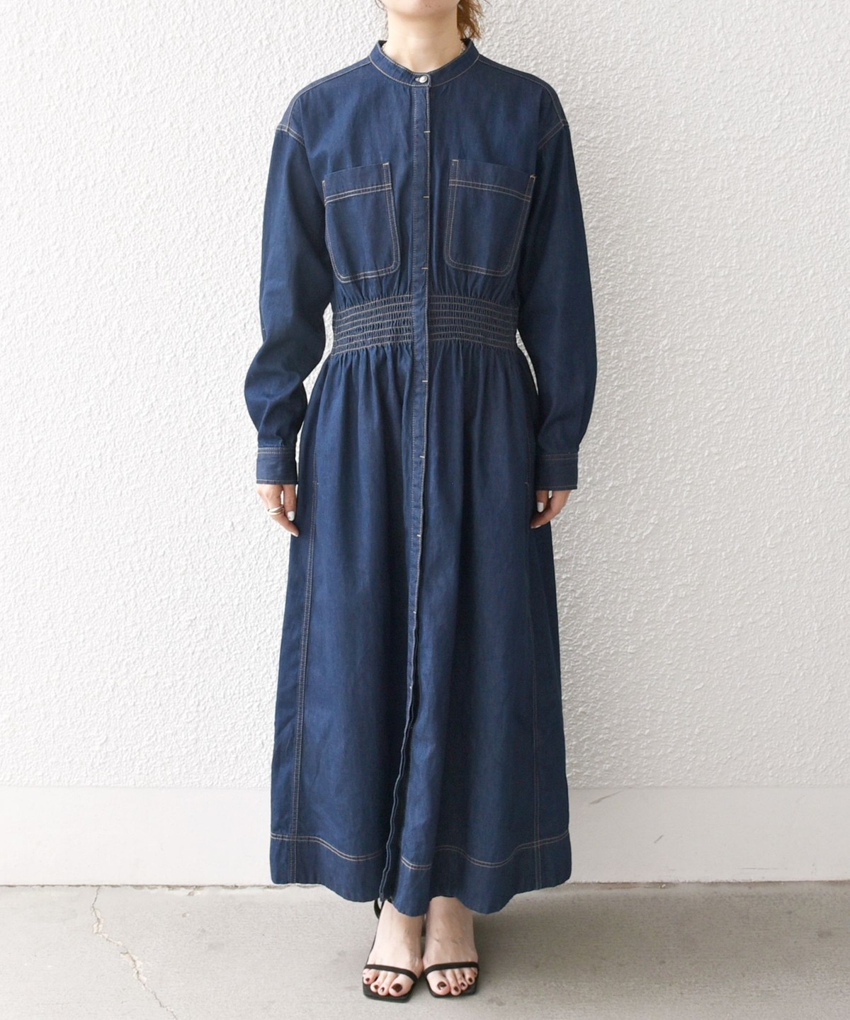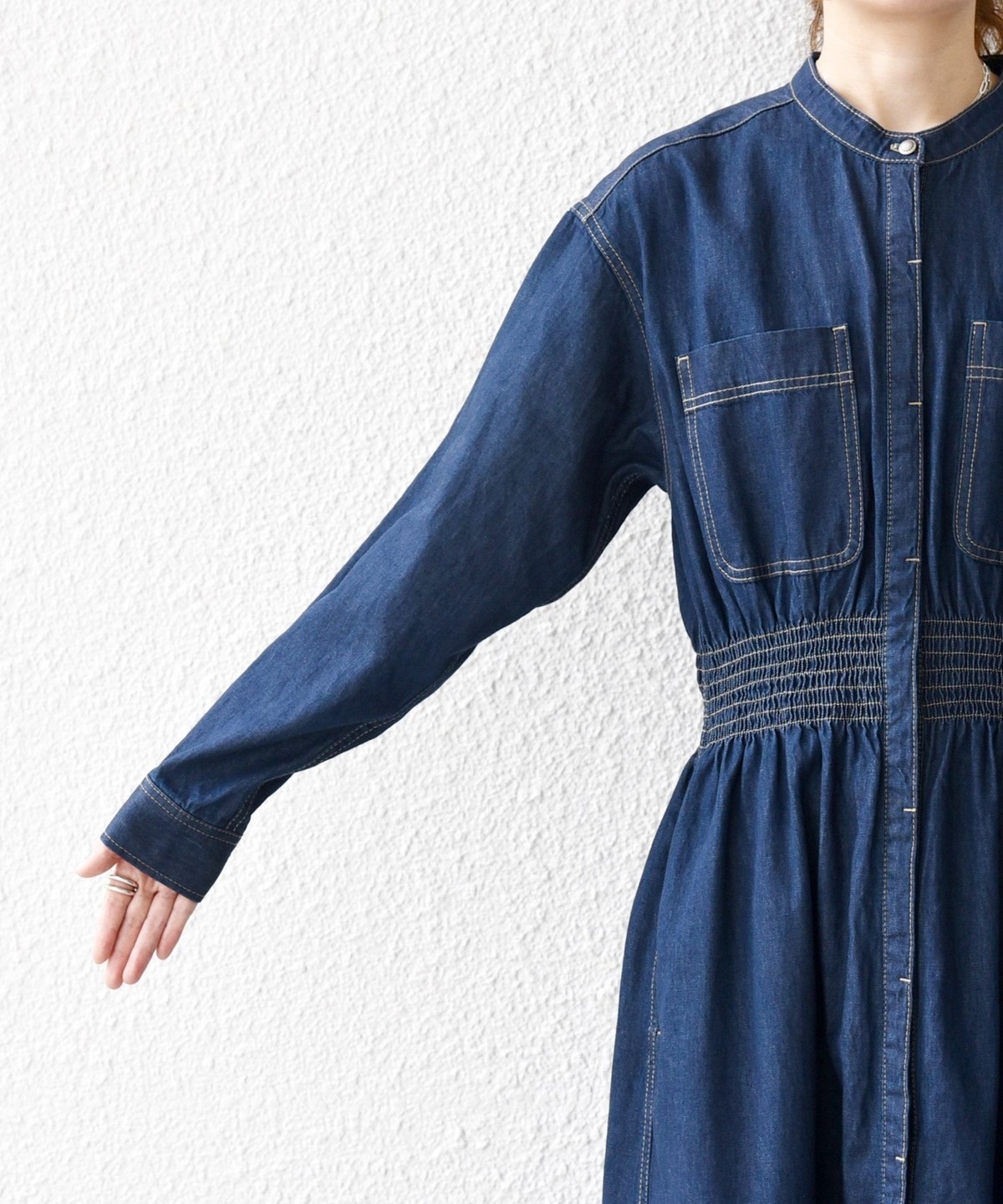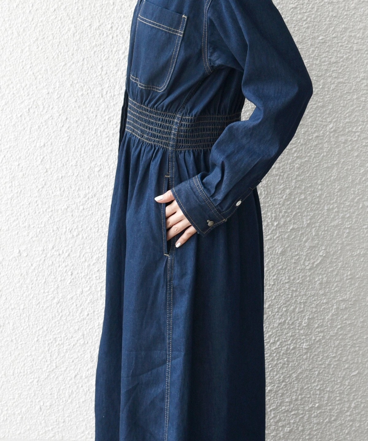 12. 《一部予約》SHIPS any: シャーリング デニム ポケット ワンピース [SHIPS any DENIM]