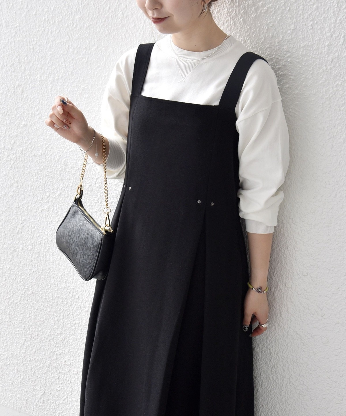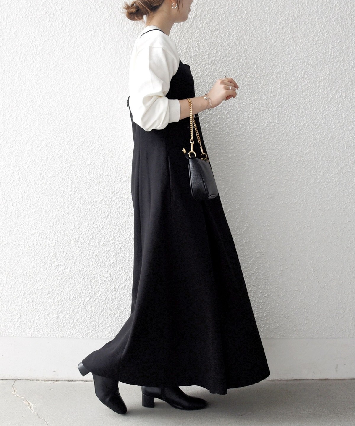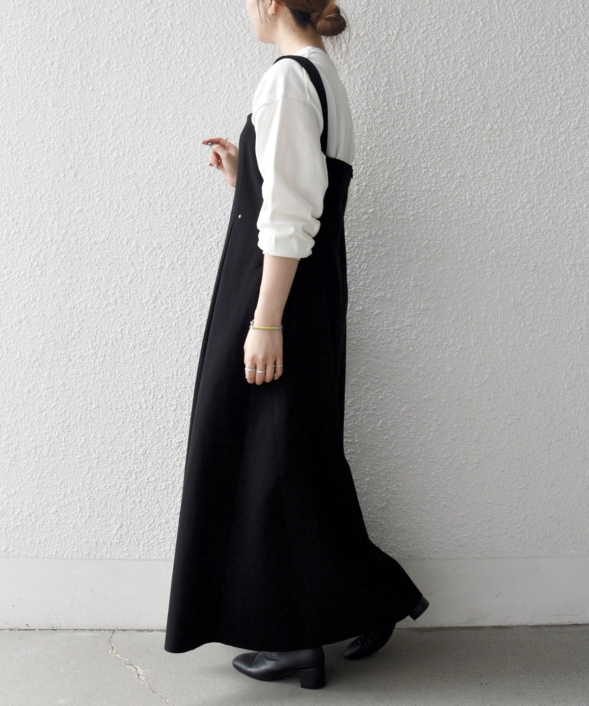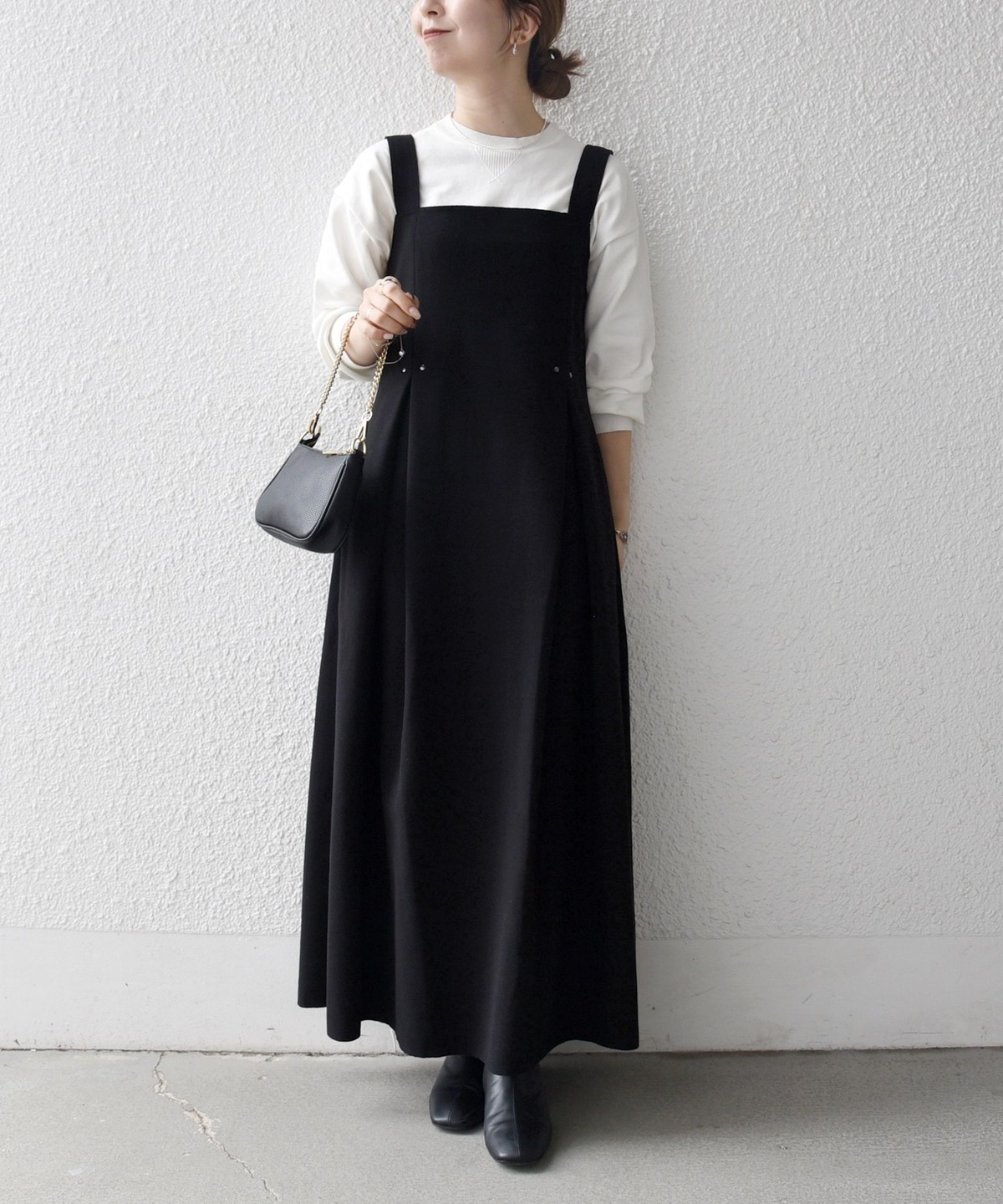 インナー次第でキレイ目にも大人カジュアルにも使えて、ロングシーズン活躍するワンピースです。