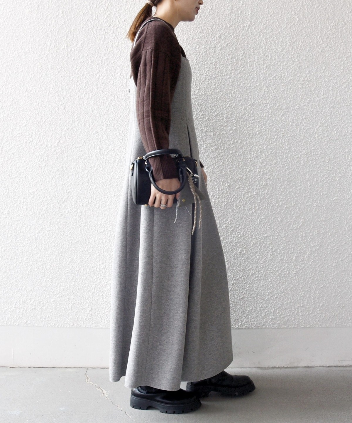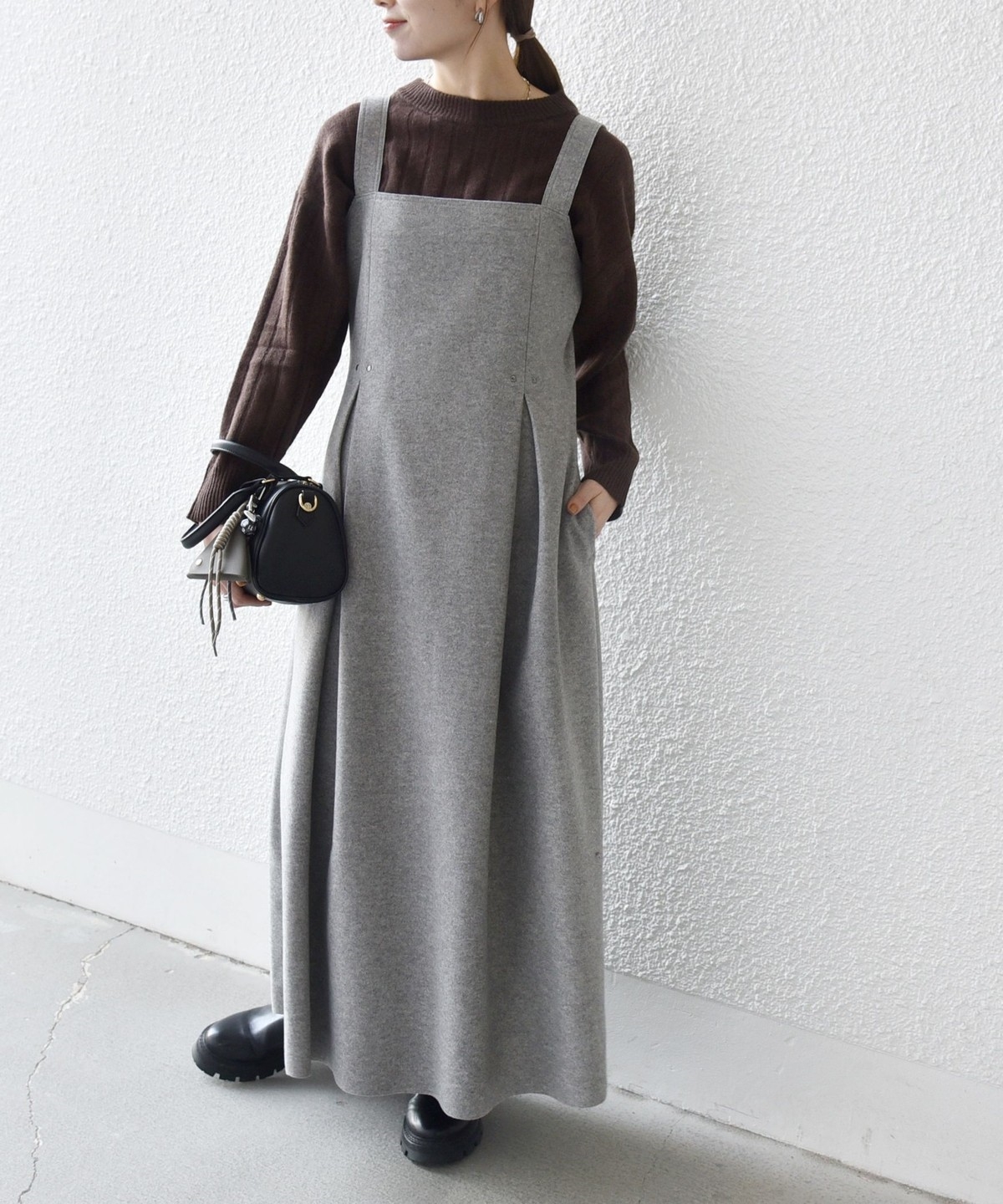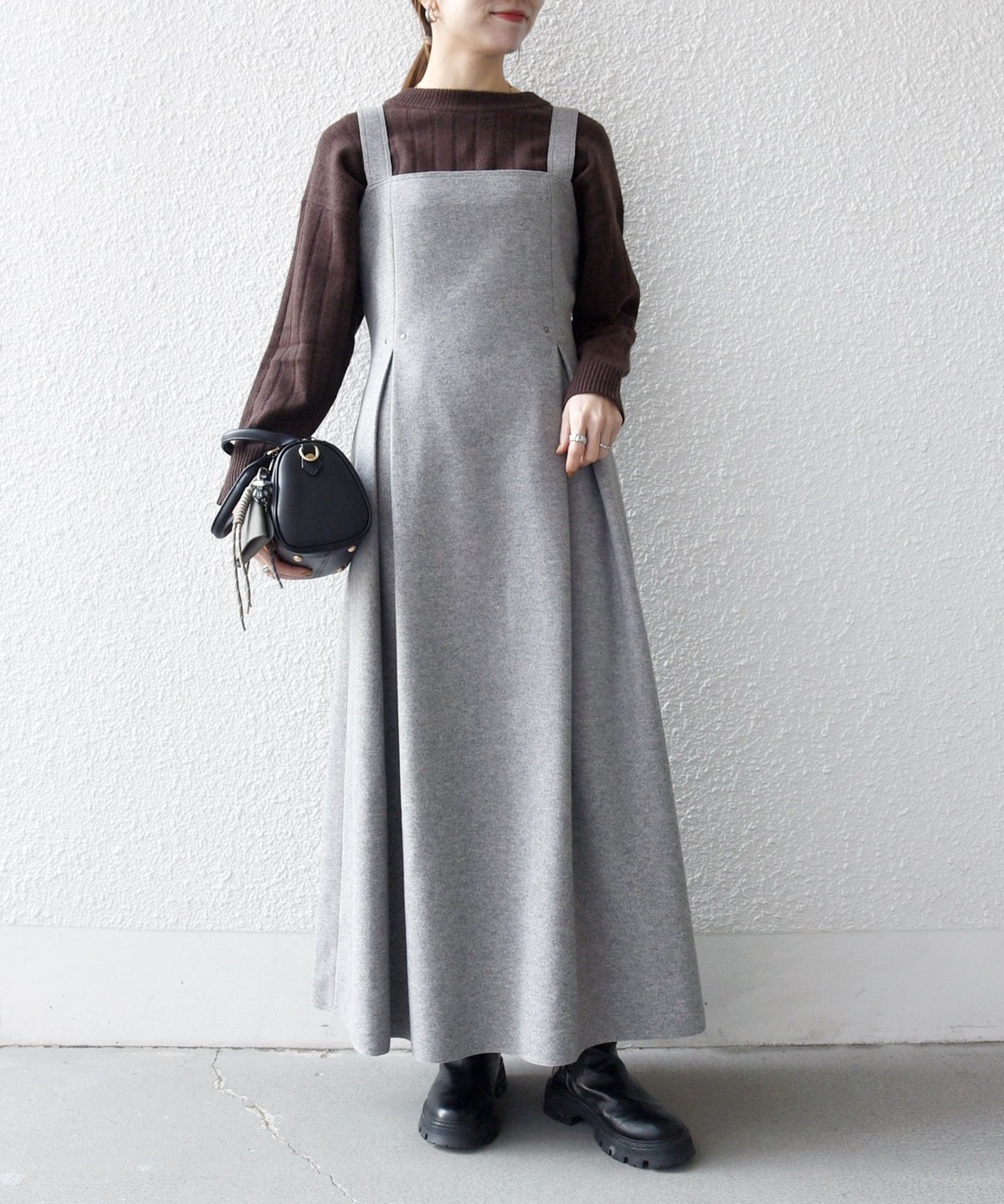 ウールライクな温かみのある素材がシーズンムードを高めてくれる、ジャンスカ。