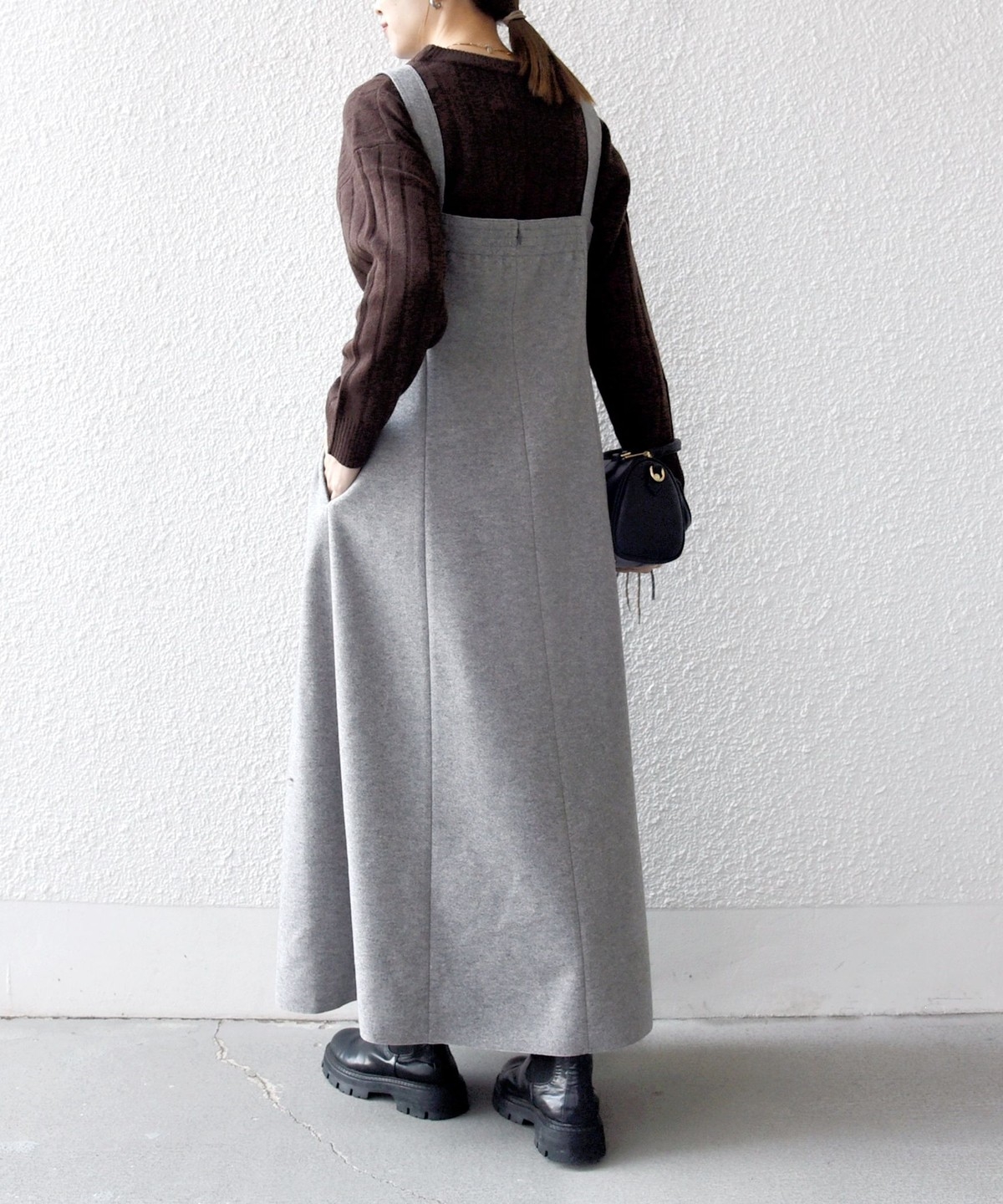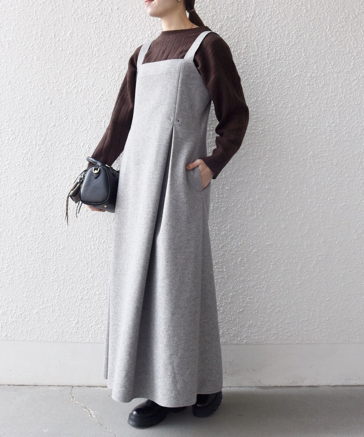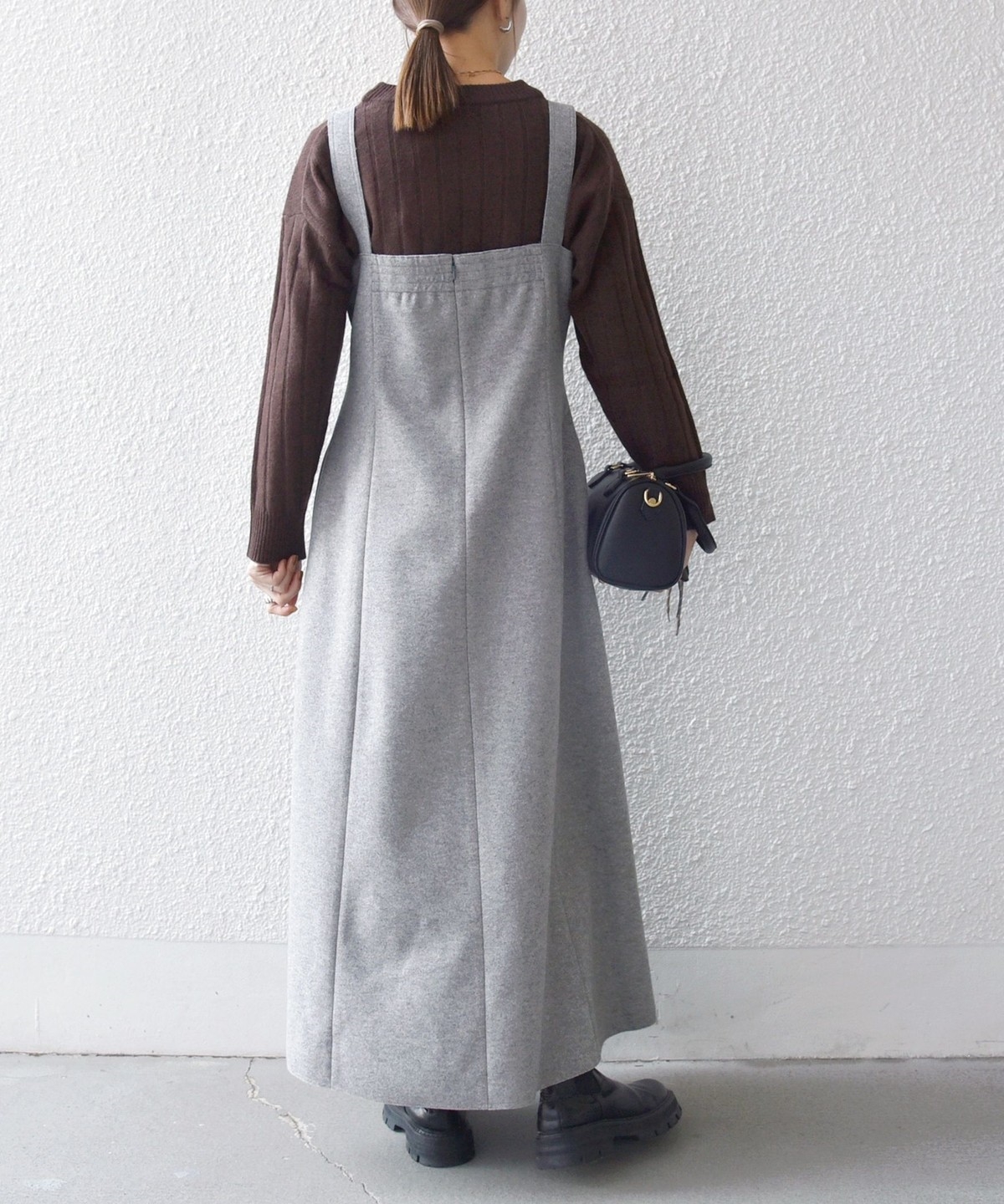 ウールライクな温かみのある素材がシーズンムードを高めてくれる、ジャンスカ。