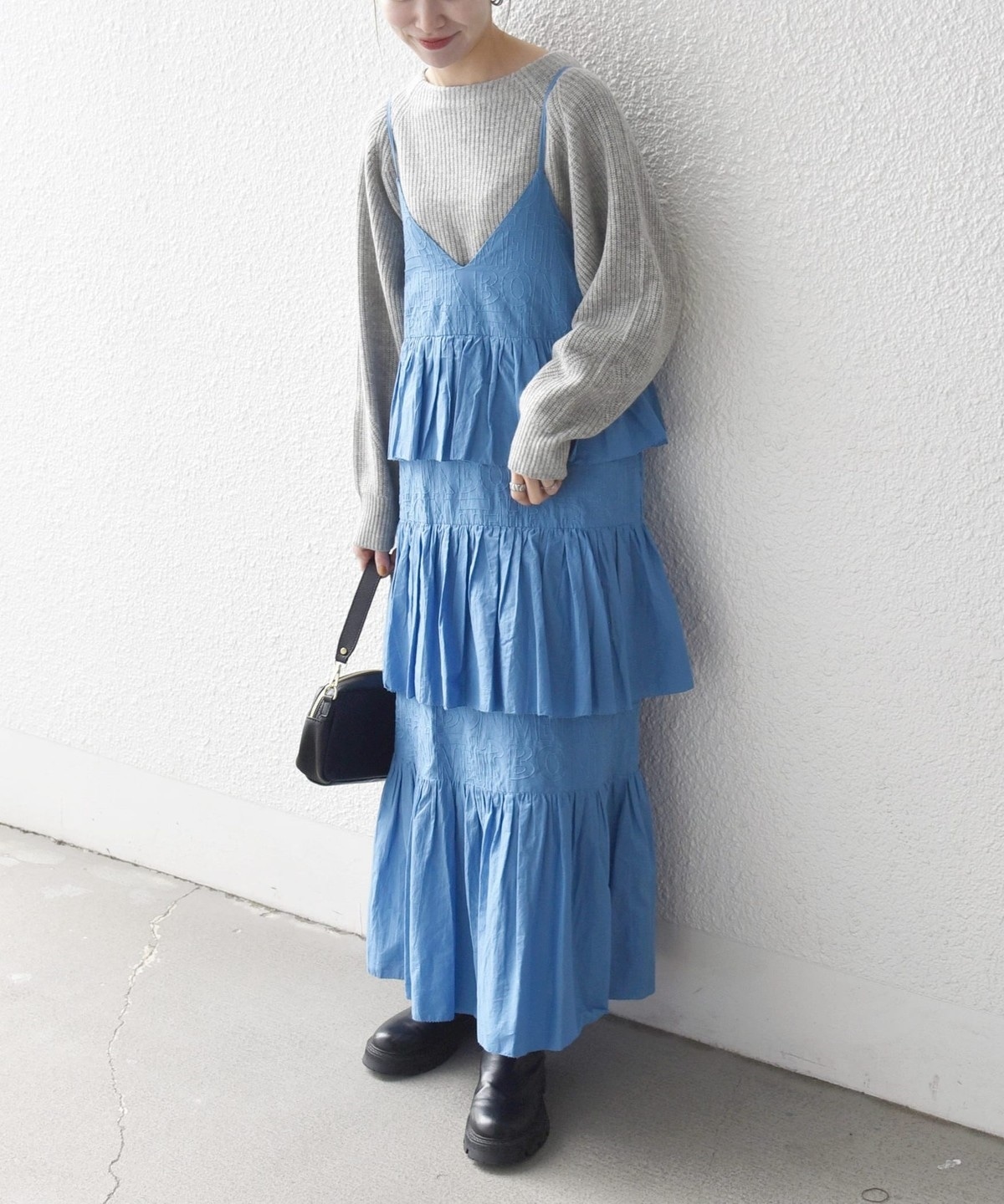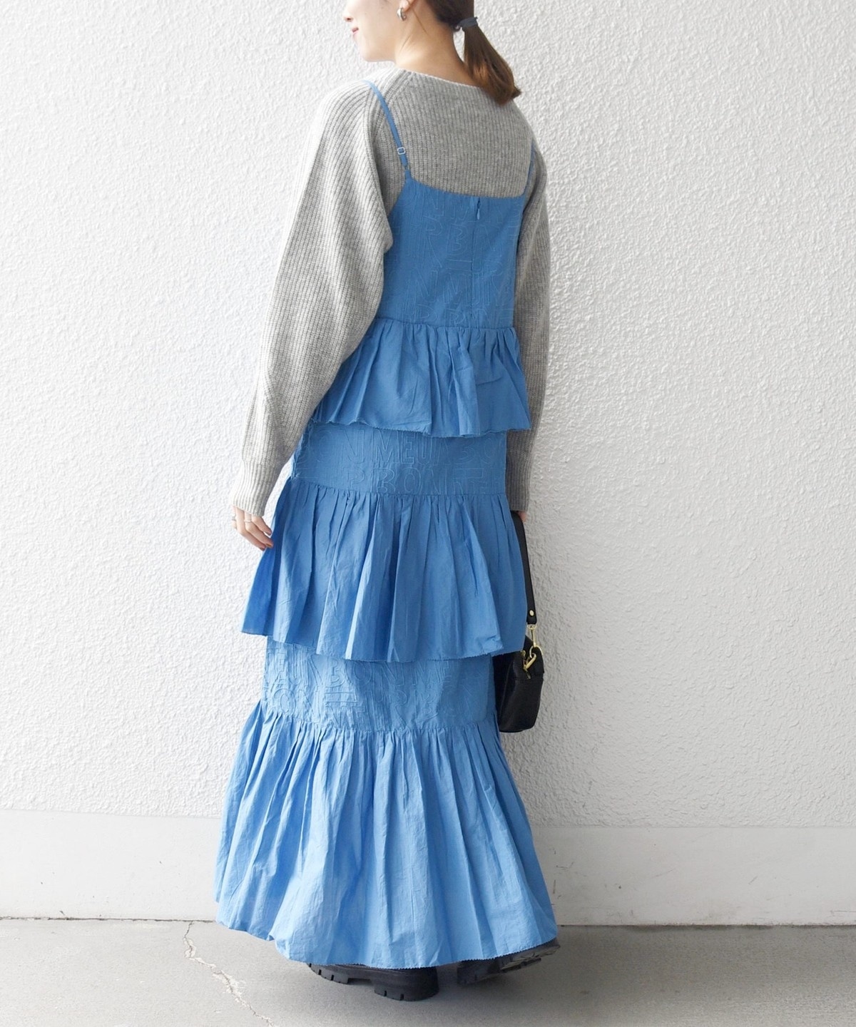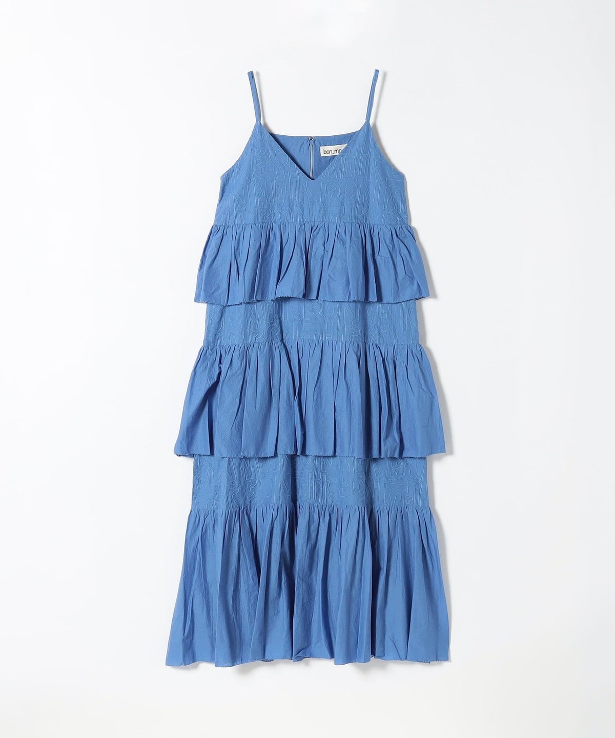 3. bon_meur:〈洗濯機可能〉ロゴ エンブロイダリー ティアード キャミ ワンピース ブルー