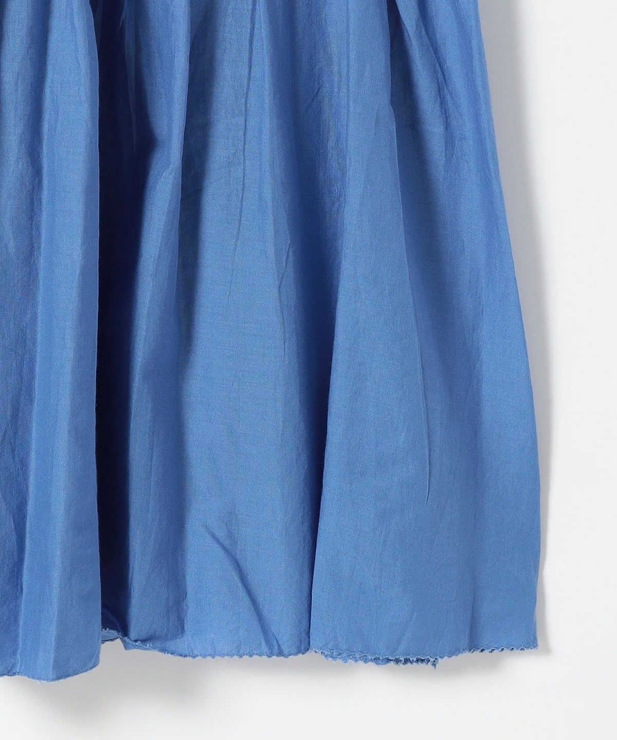 段ごとに入ったフリルの端にはピコ刺繍を施し、動くたびに軽やかに揺れるデザインです。