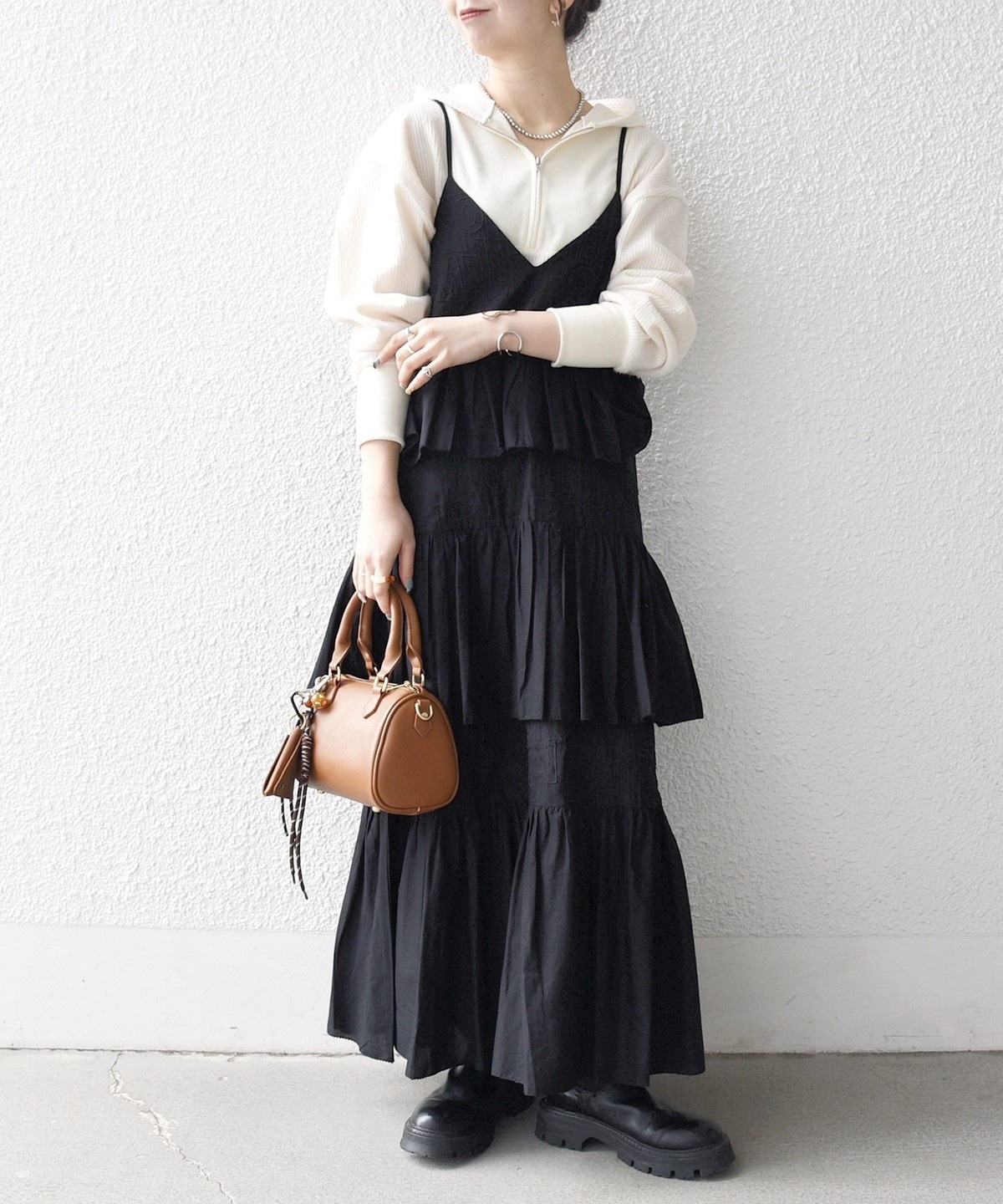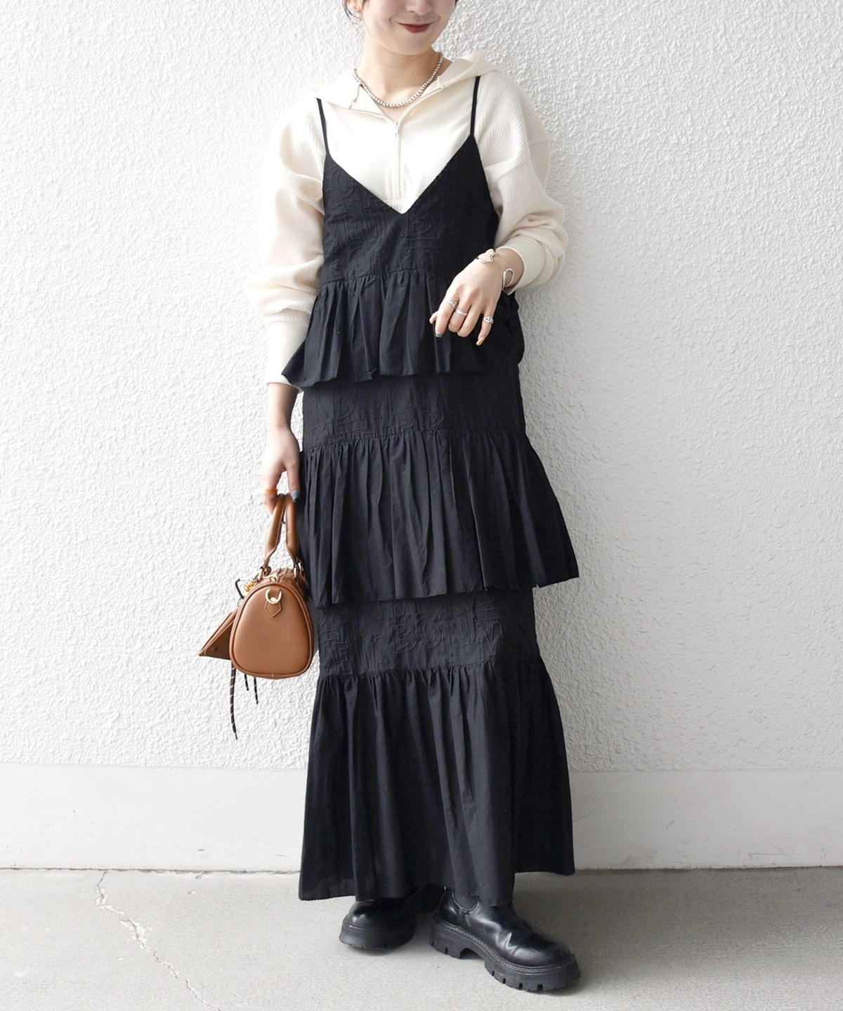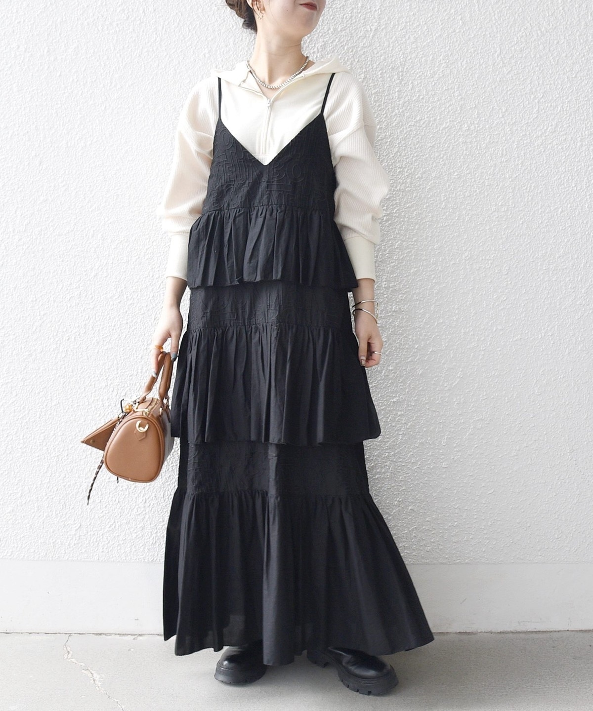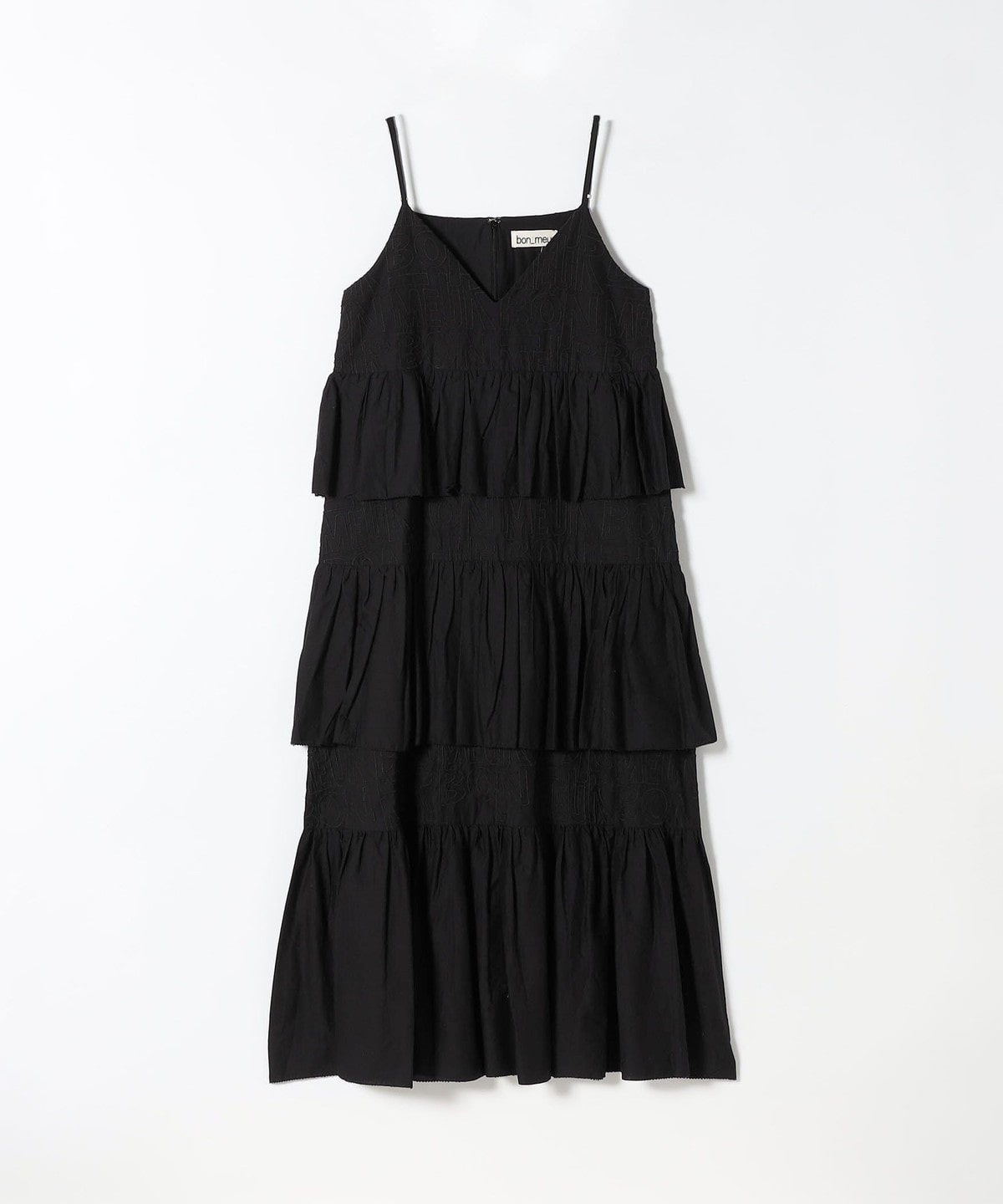 1. bon_meur:〈洗濯機可能〉ロゴ エンブロイダリー ティアード キャミ ワンピース ブラック