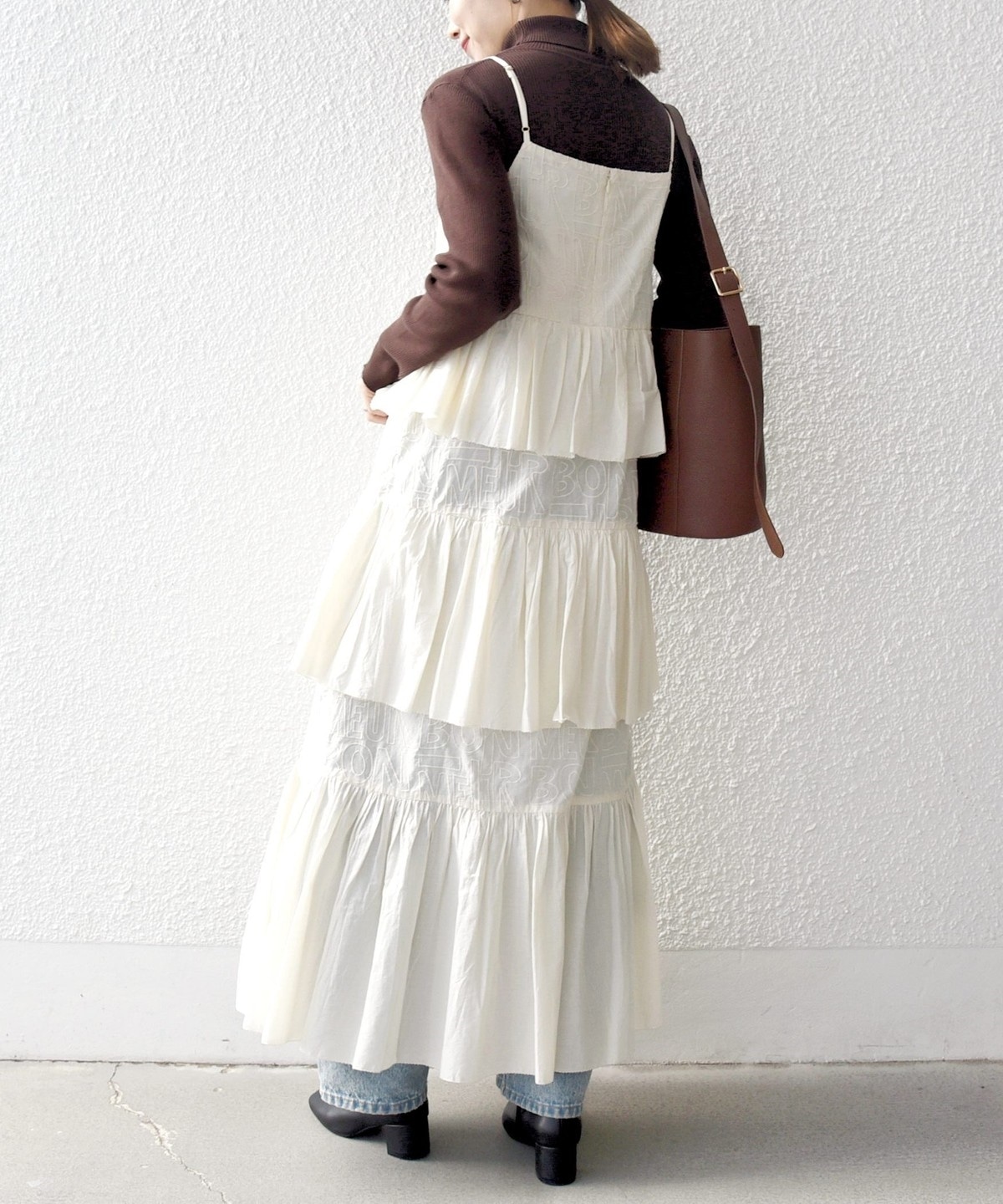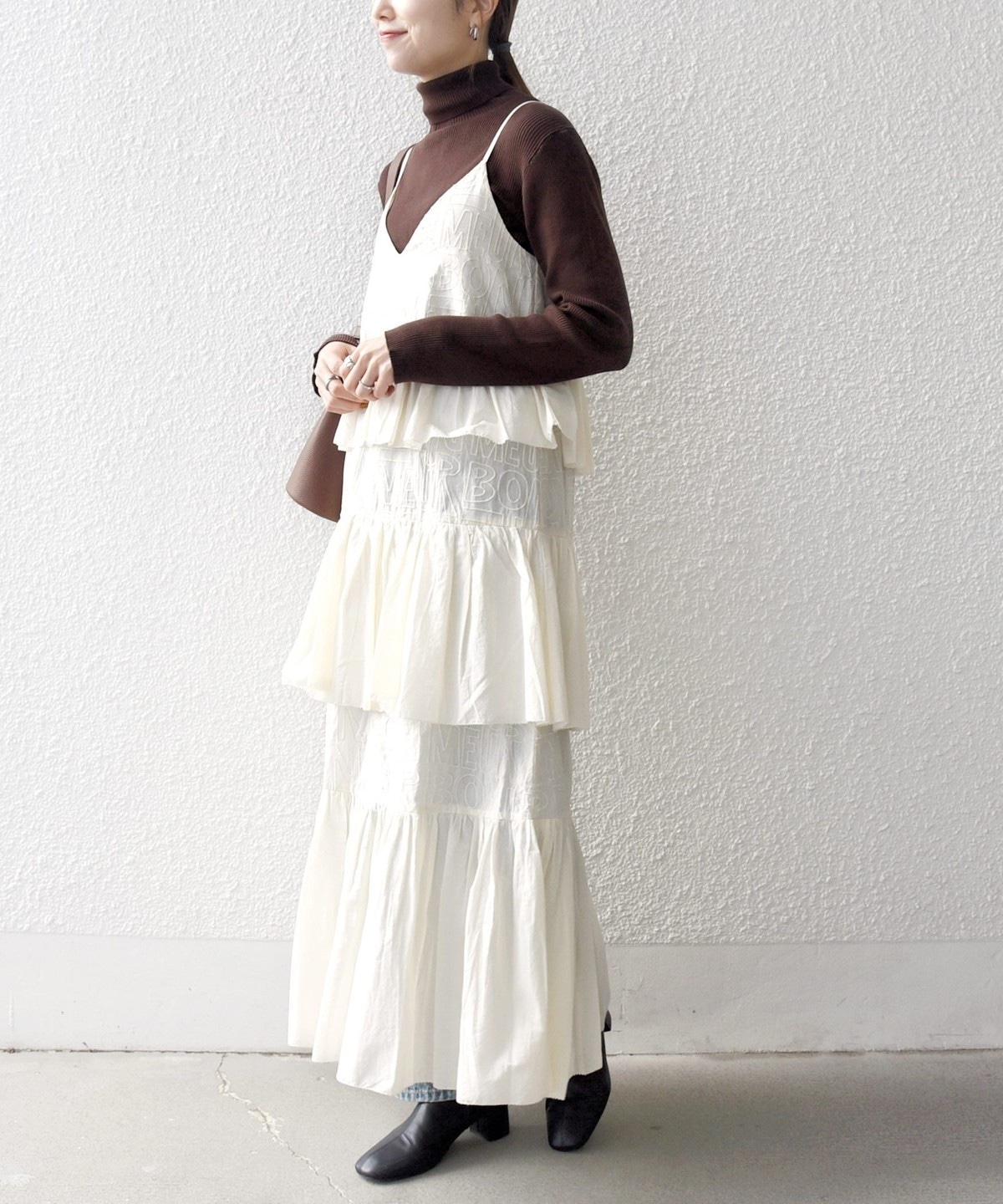 19. bon_meur:〈洗濯機可能〉ロゴ エンブロイダリー ティアード キャミ ワンピース