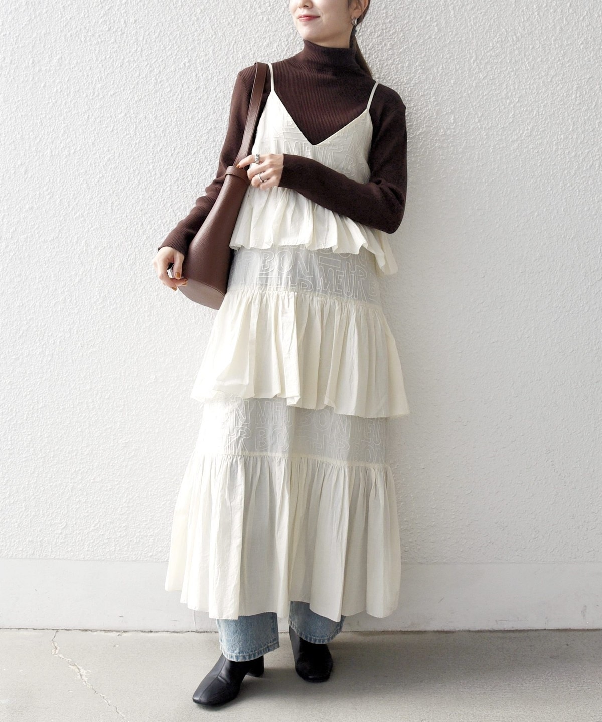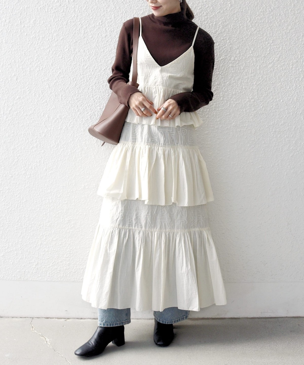 5. bon_meur:〈洗濯機可能〉ロゴ エンブロイダリー ティアード キャミ ワンピース