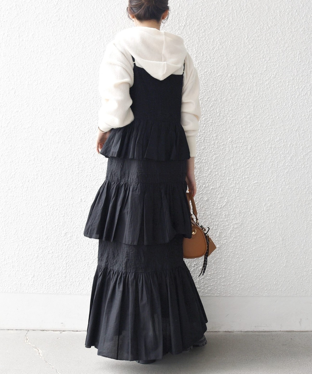 8. bon_meur:〈洗濯機可能〉ロゴ エンブロイダリー ティアード キャミ ワンピース