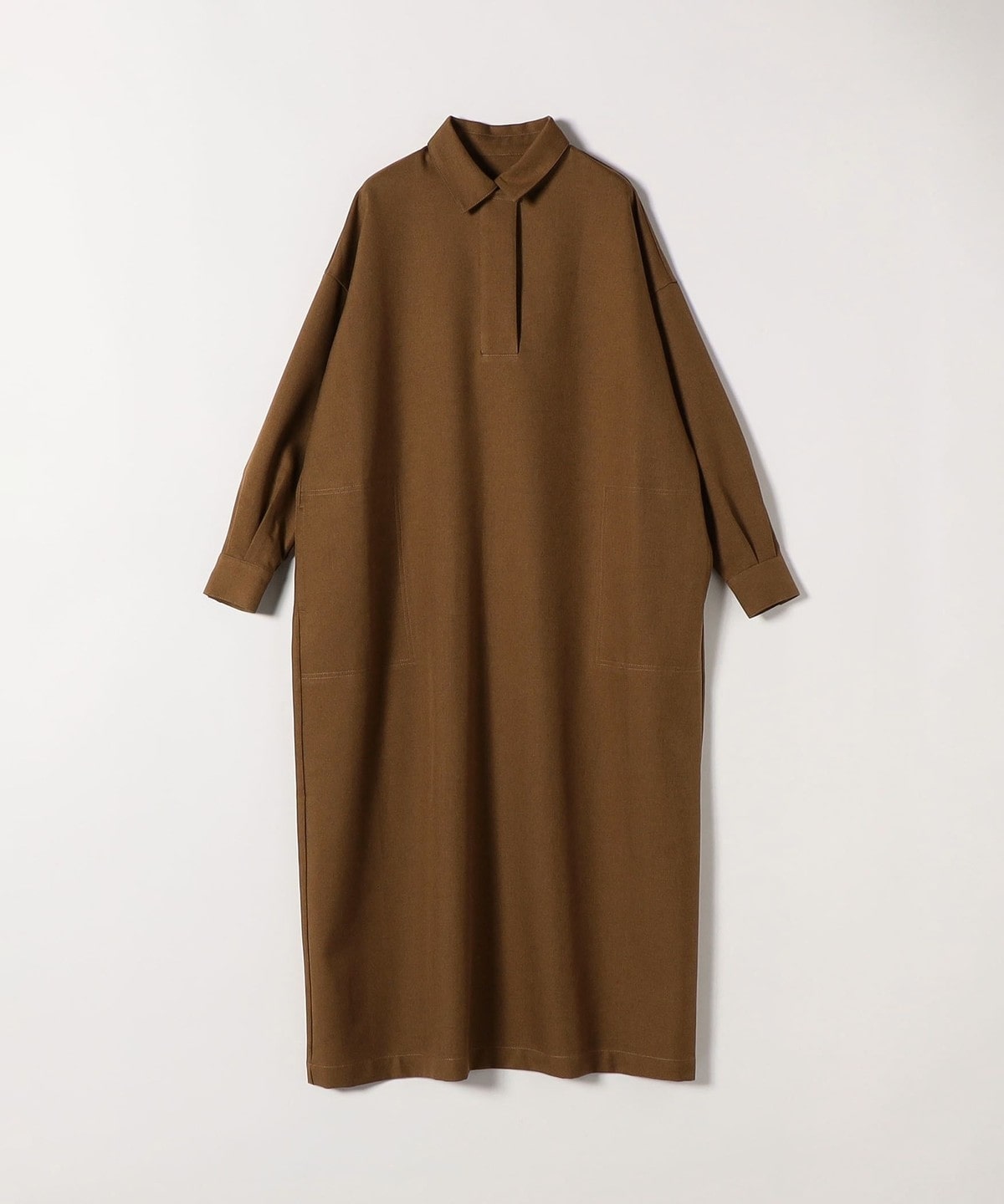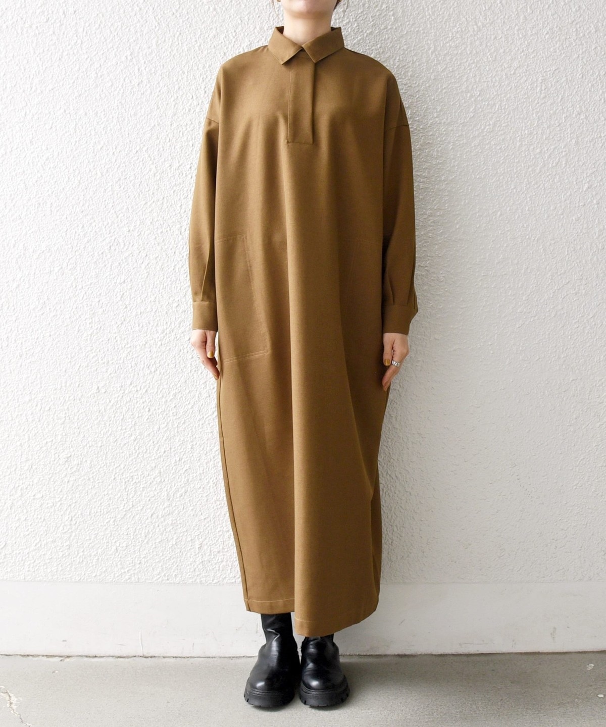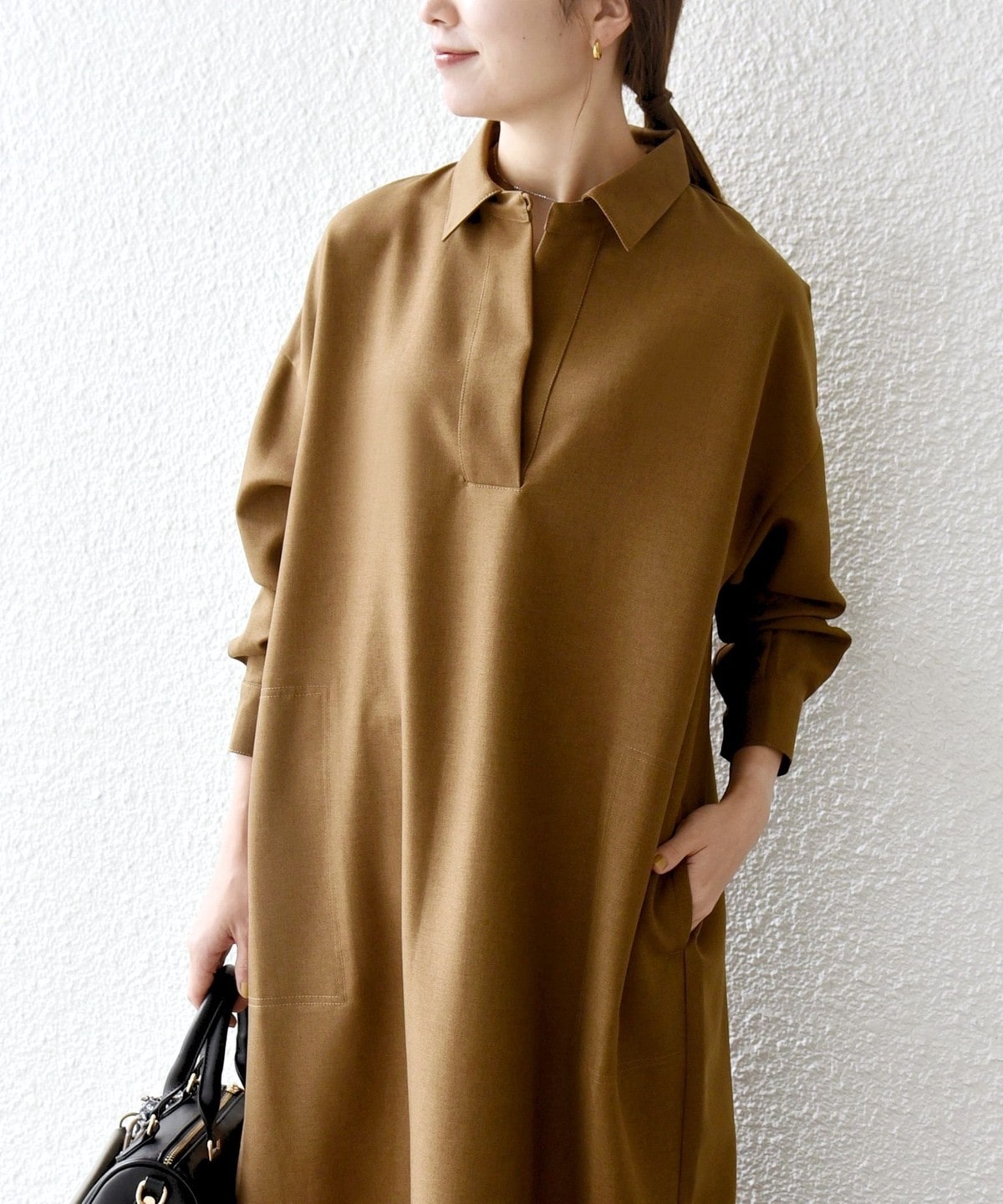 1. SHIPS any:〈洗濯機可能〉サージ スキッパー シャツ ワンピース キャメル
