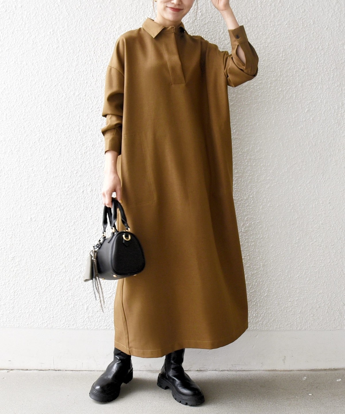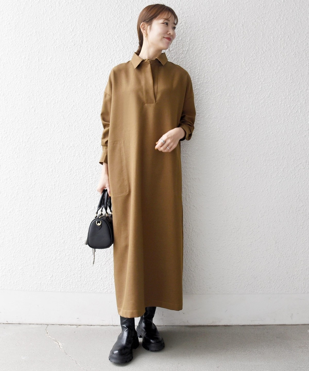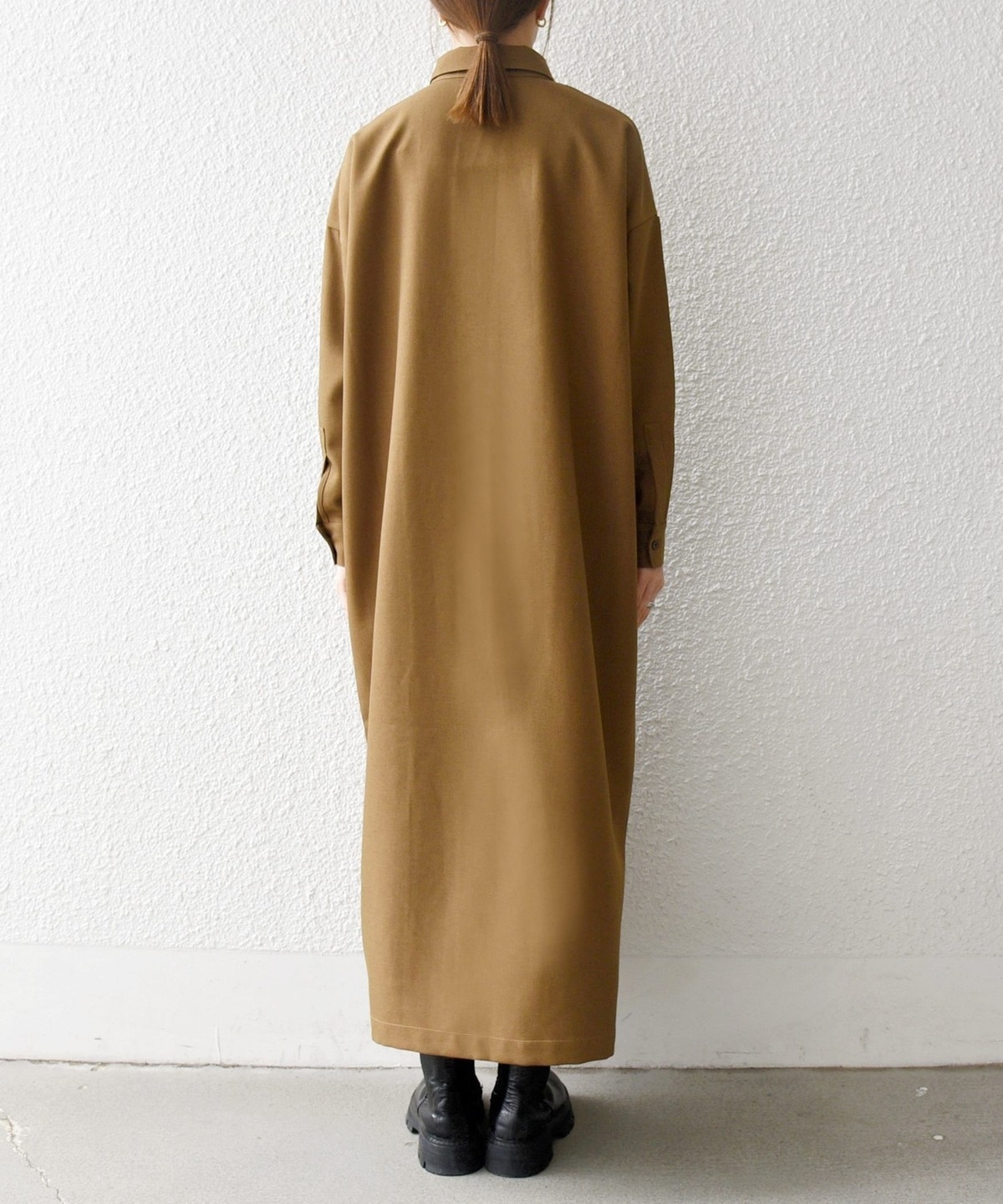 1. SHIPS any:〈洗濯機可能〉サージ スキッパー シャツ ワンピース キャメル