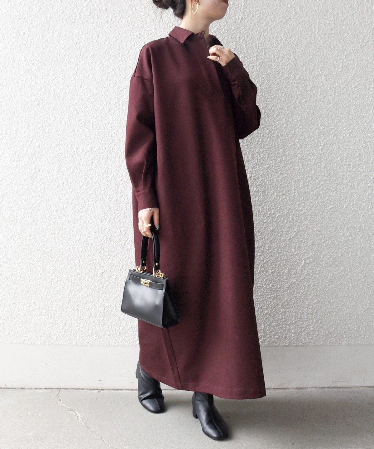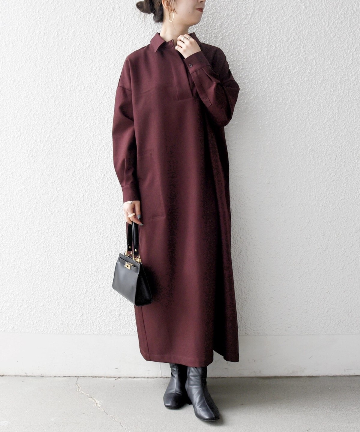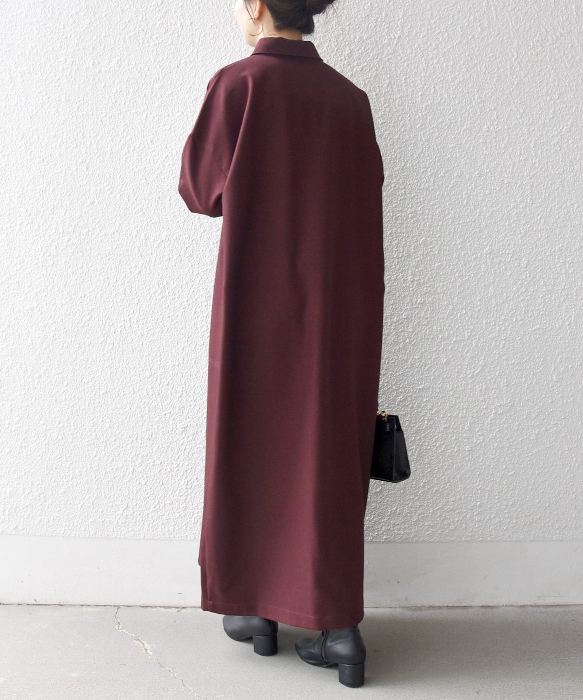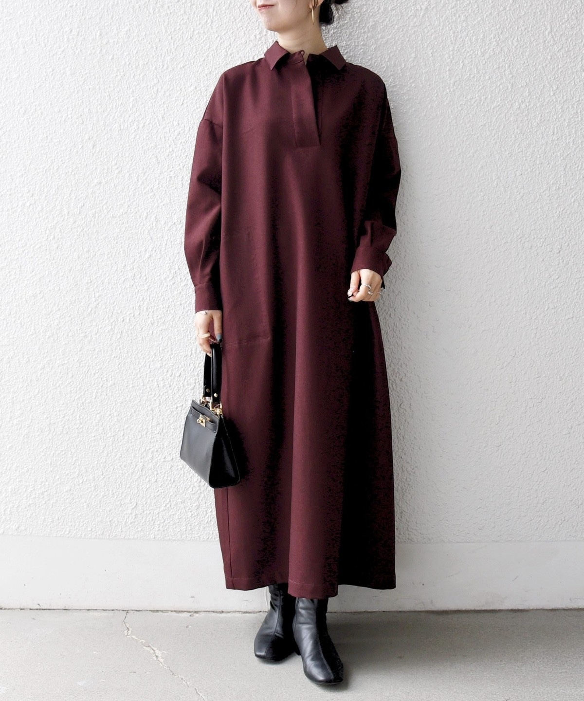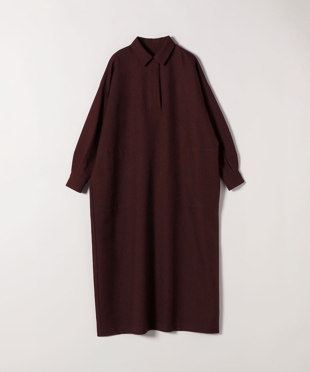 3. SHIPS any:〈洗濯機可能〉サージ スキッパー シャツ ワンピース ワイン