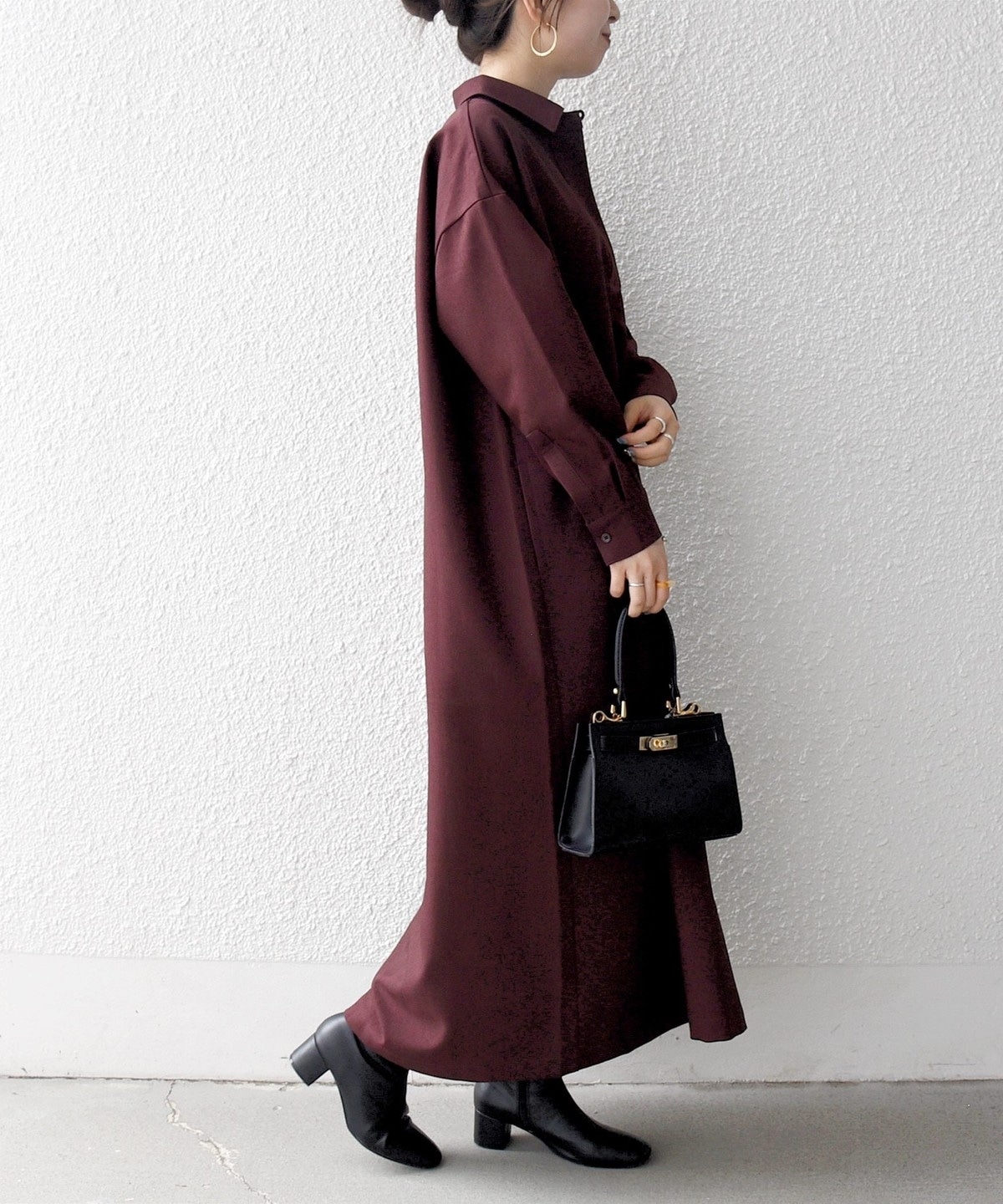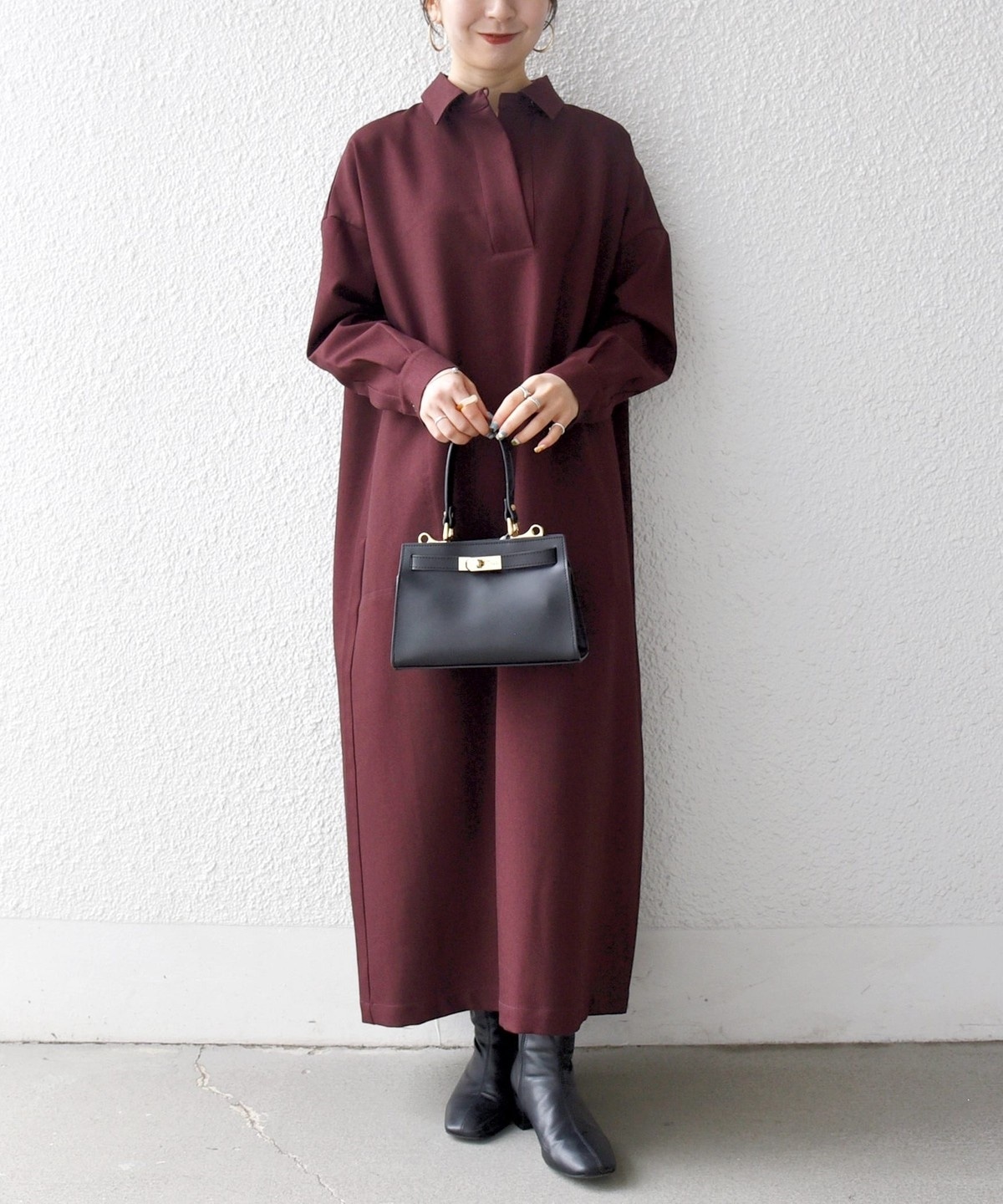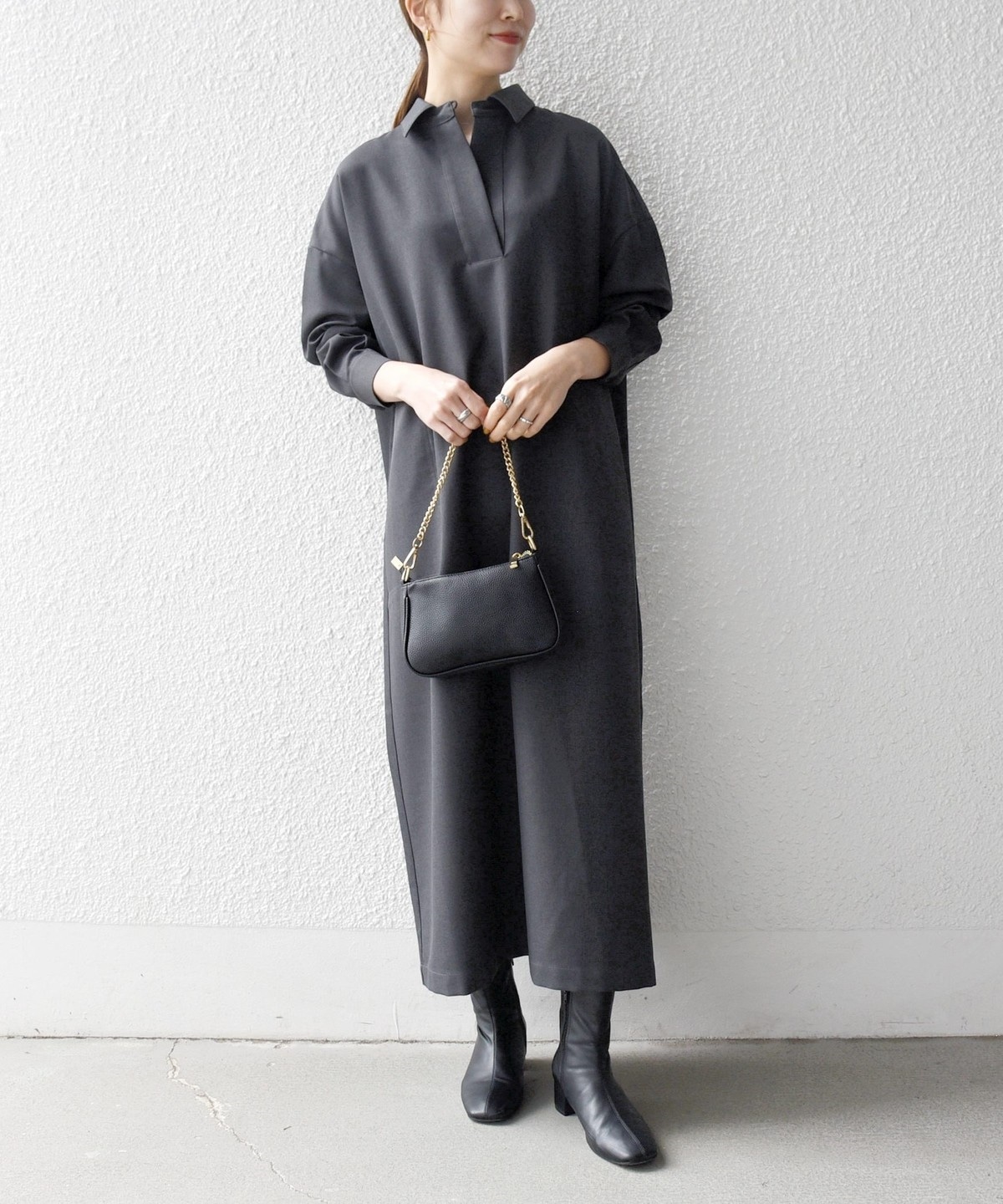 一枚で着る際は小物で秋冬の素材を取り入れると◎