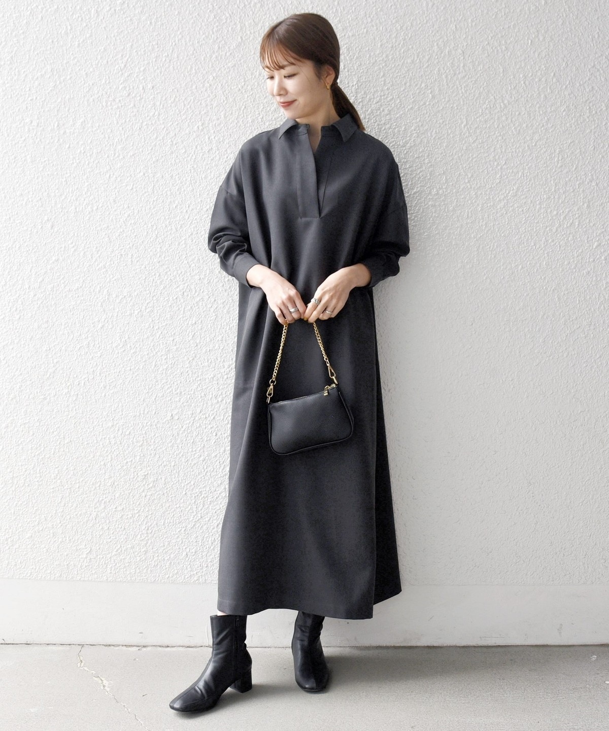 ゆったりとしたサイジングが魅力のシャツワンピース。