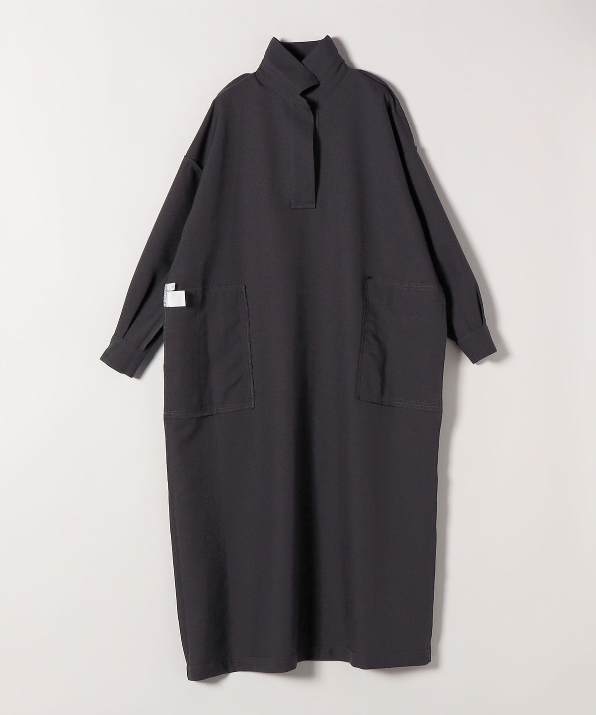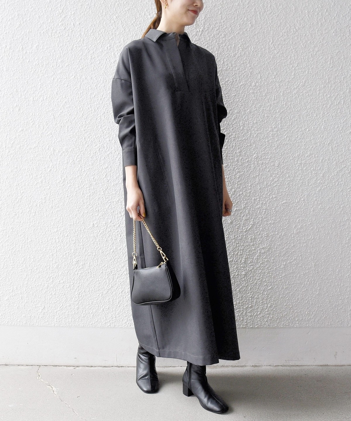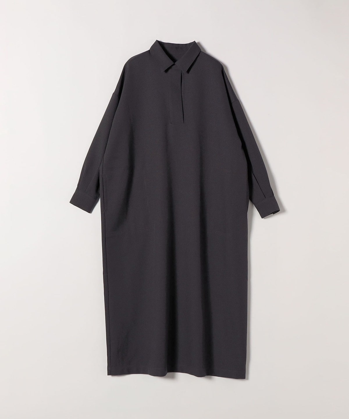 2. SHIPS any:〈洗濯機可能〉サージ スキッパー シャツ ワンピース チャコールグレー