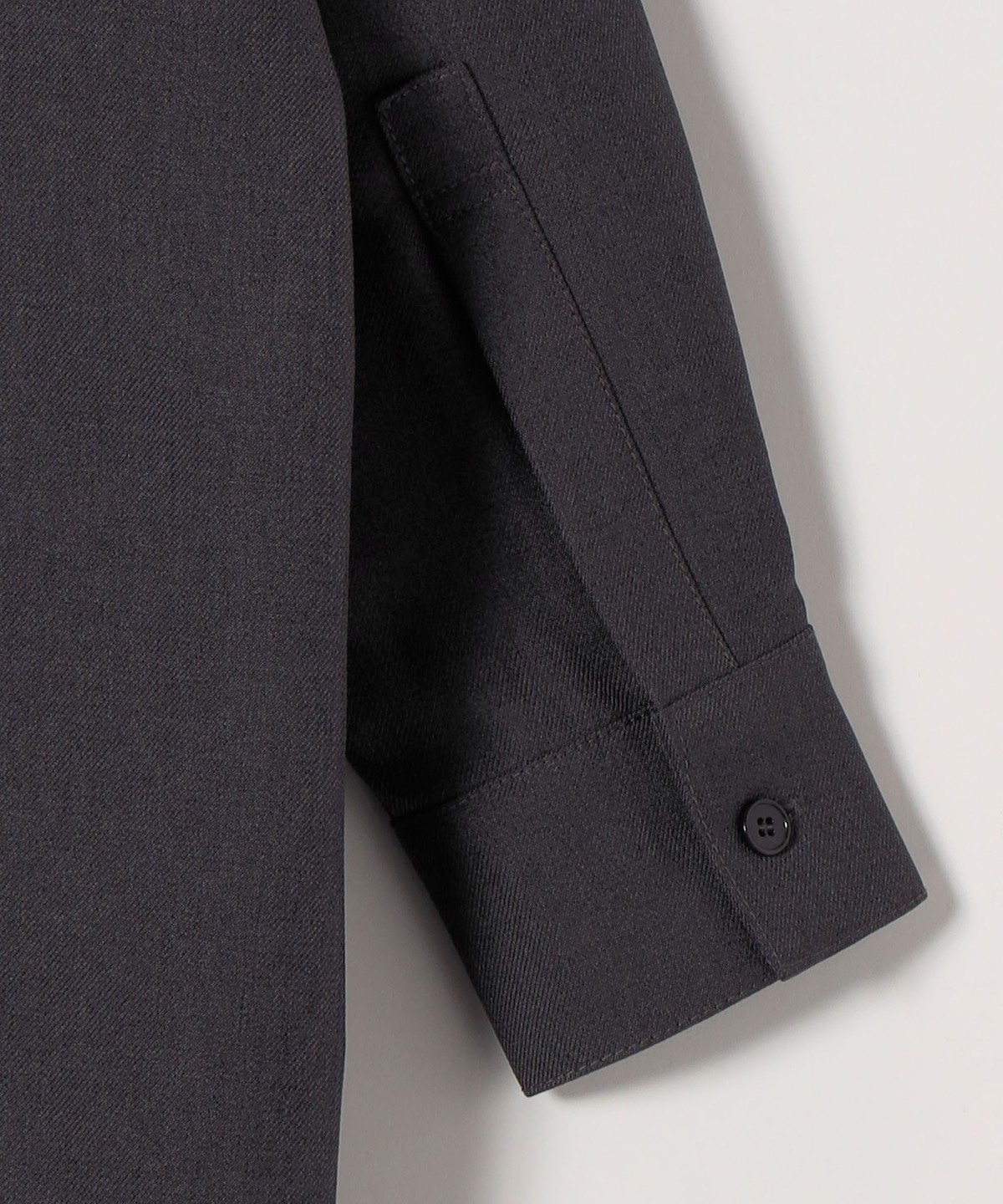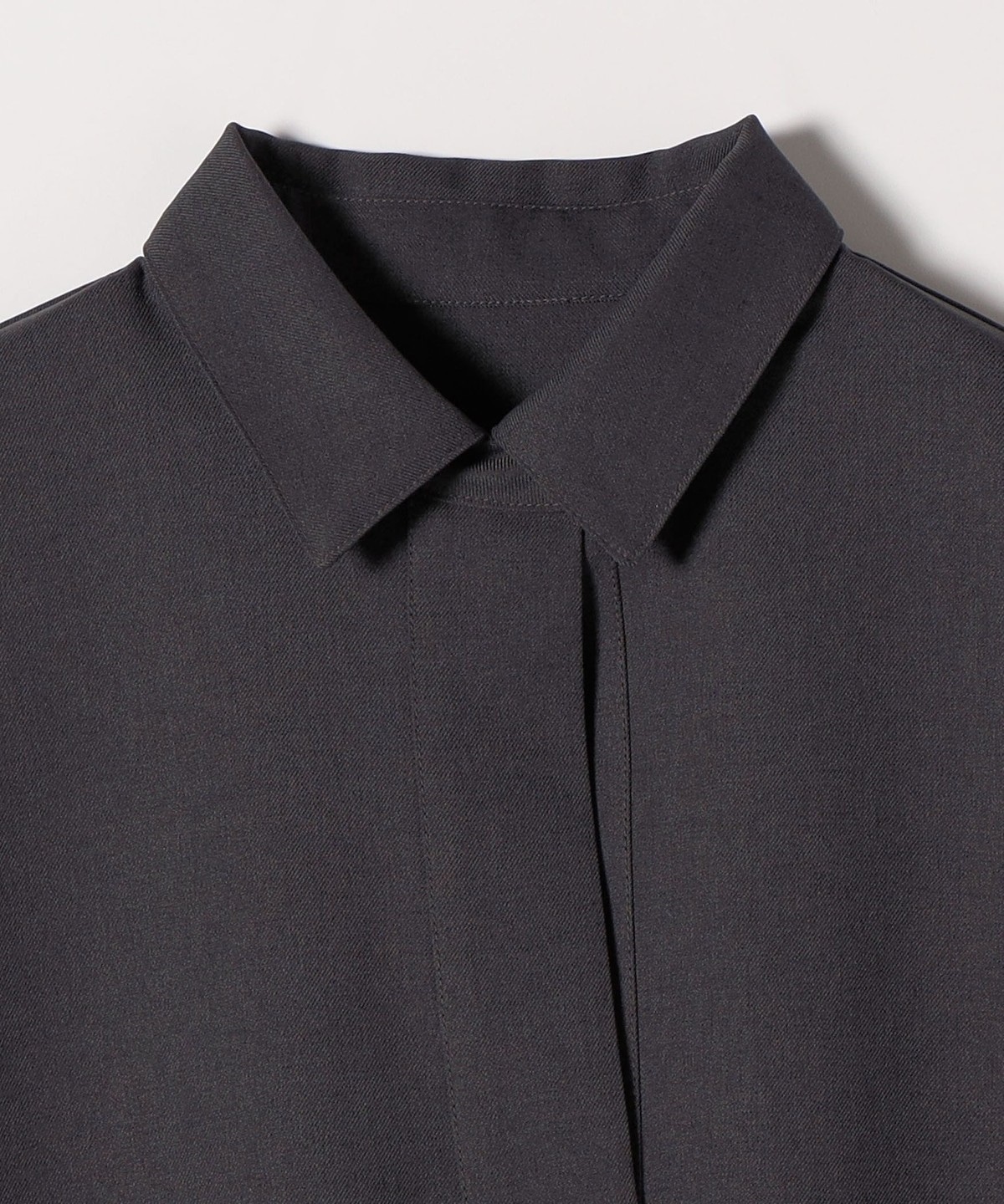 襟もとには小さなボタンを配しており、留めればすっきりと、開ければ抜け感のあるスタイルを楽しめます。